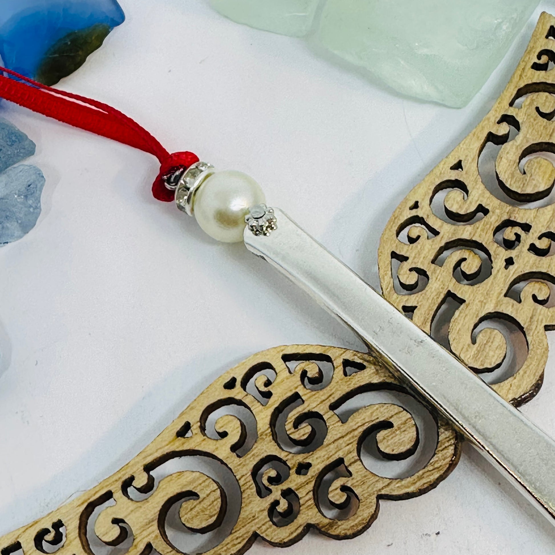 Transform your tree into a gallery of celestial charm with these one-of-a-kind Angel Ornaments, each lovingly handcrafted from genuine vintage silverware. Every ornament tells its own story through distinctive silverware patterns—from delicate florals to bold geometric designs—making each piece a miniature work of art. The whimsical wooden wings add rustic elegance and a touch of artisanal character that mass-produced ornaments simply can't match. Perfect for vintage lovers, sustainable shoppers, and anyone who appreciates the soul of repurposed treasures. These beauties deserve a gentle touch—their delicate wooden wings are crafted for admiration rather than rough handling, so treat them as the heirloom-quality keepsakes they are. Personalize your selection by choosing your favorite silverware pattern, and watch your tree become a conversation starter. A meaningful gift for collectors, or a special way to commemorate a cherished memory.
