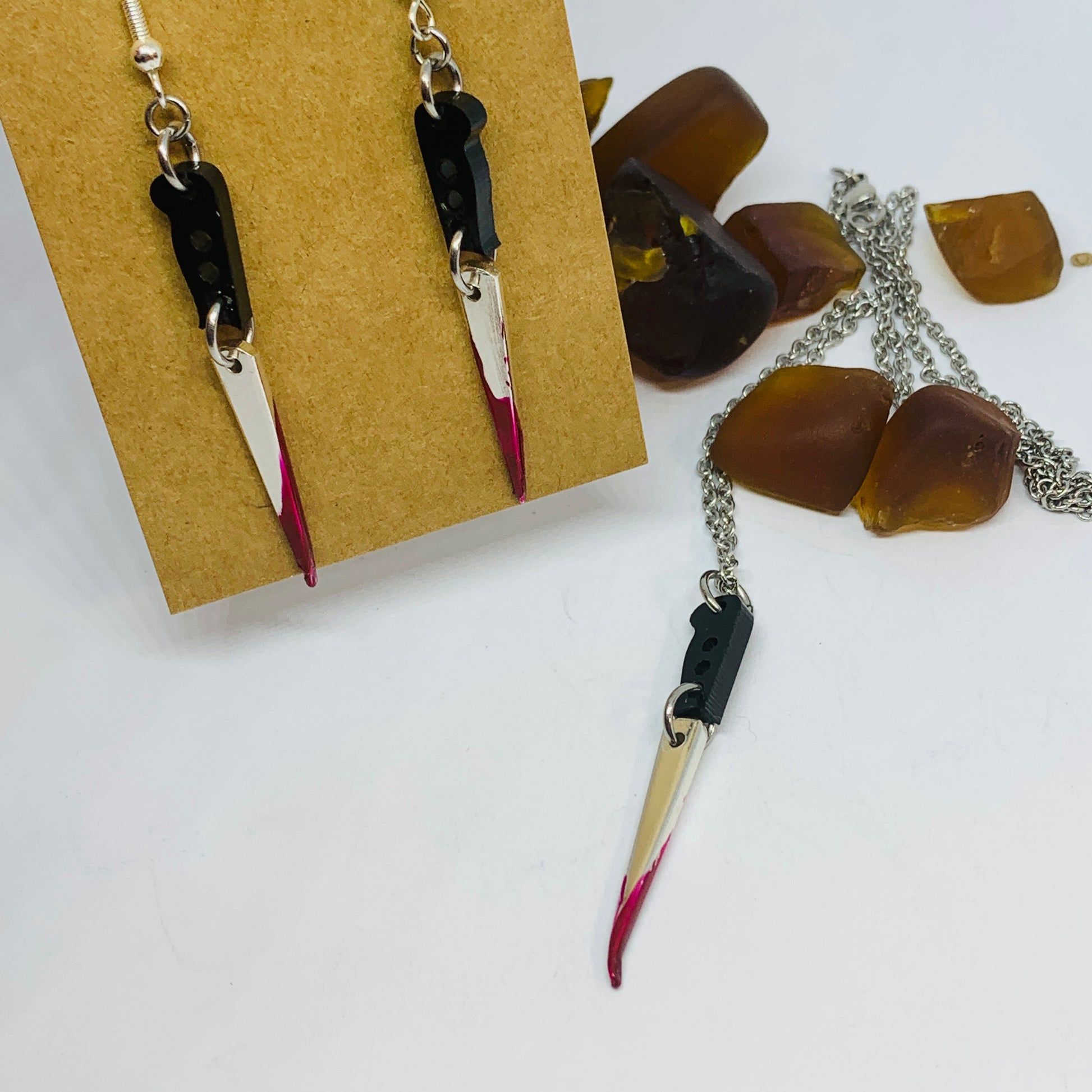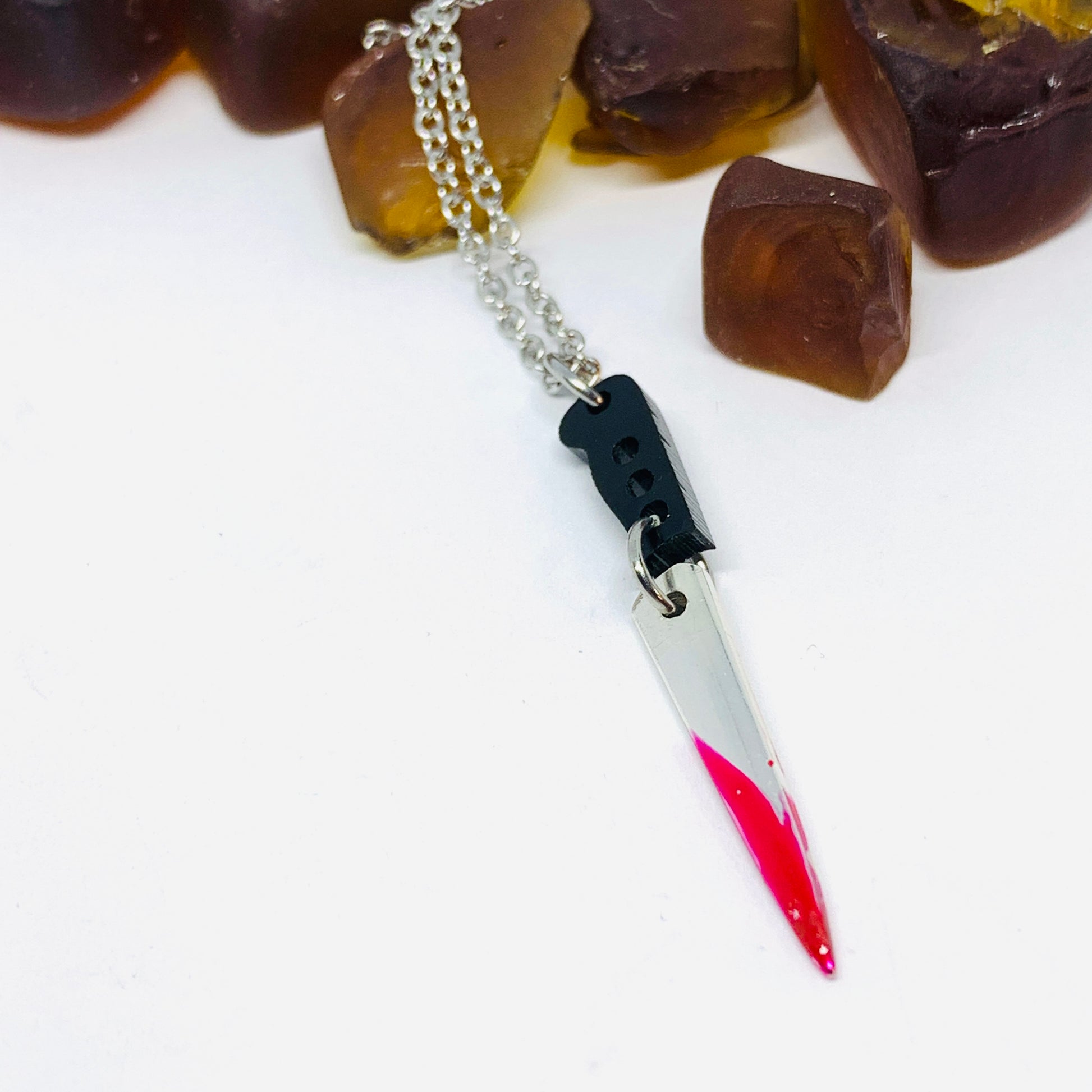 "Bloody Knife" Vintage Silverware Fork Tine Necklace | Halloween Jewelry | Knife Pendant | Fake Blood Knife Jewelry