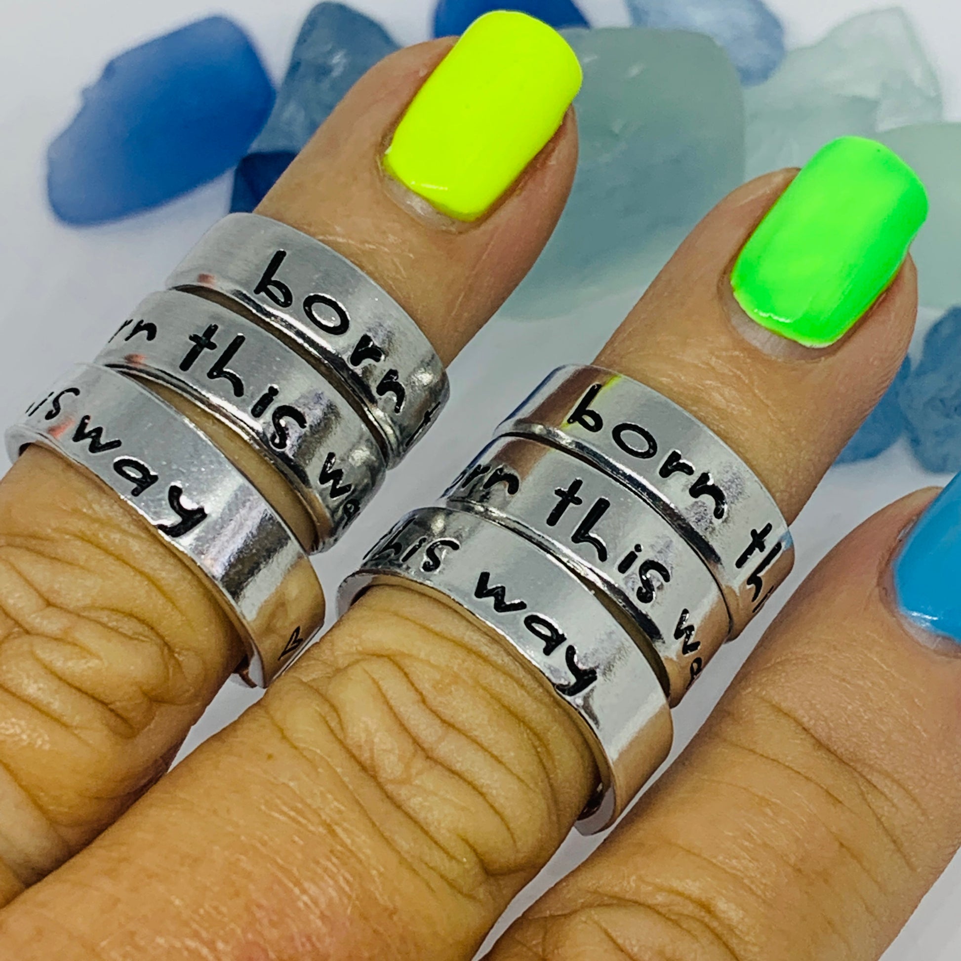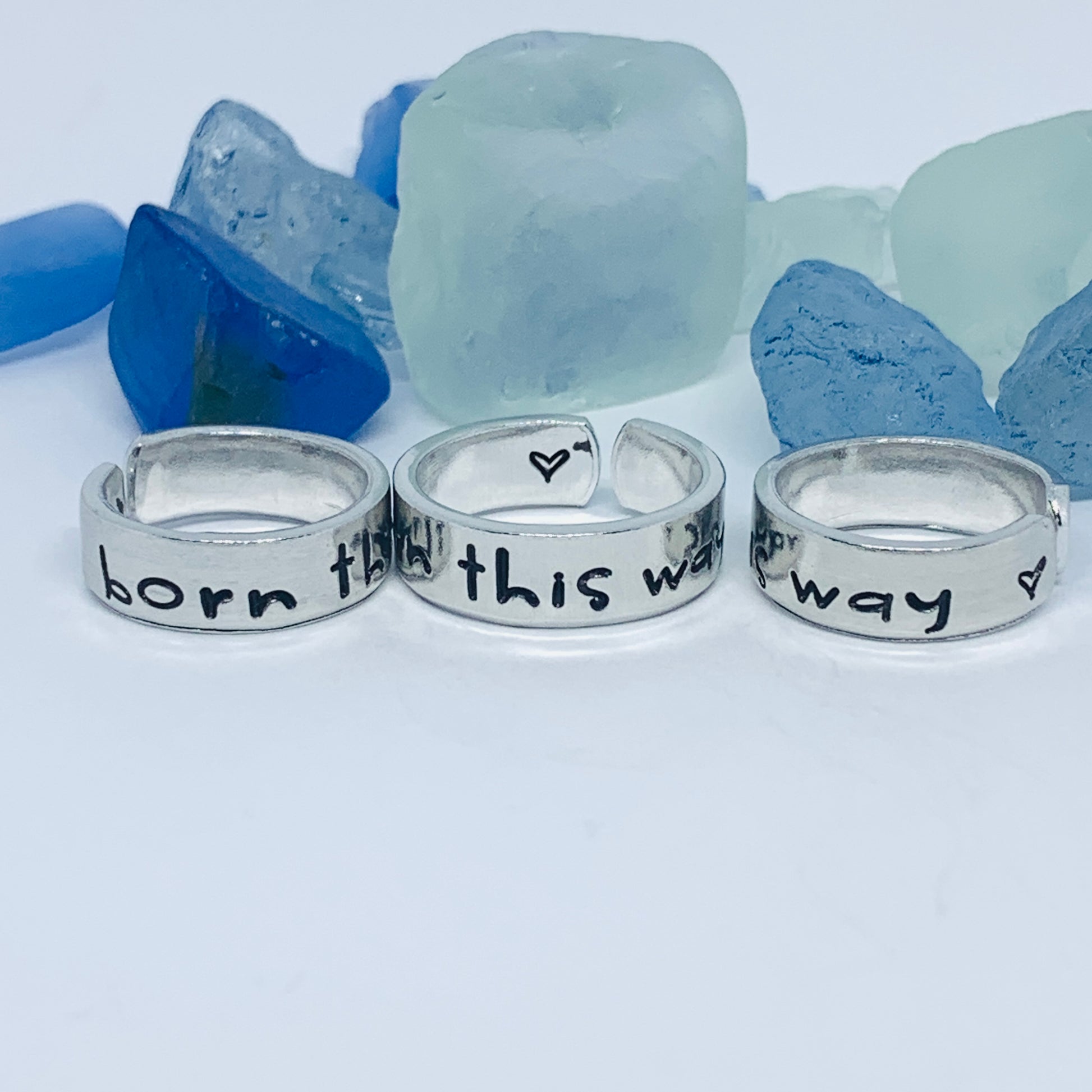 BORN THIS WAY Hand Stamped Ring | LGBTQ Ring | Stamped Metal Cuff Ring | Gift for Them | Acceptance Jewelry