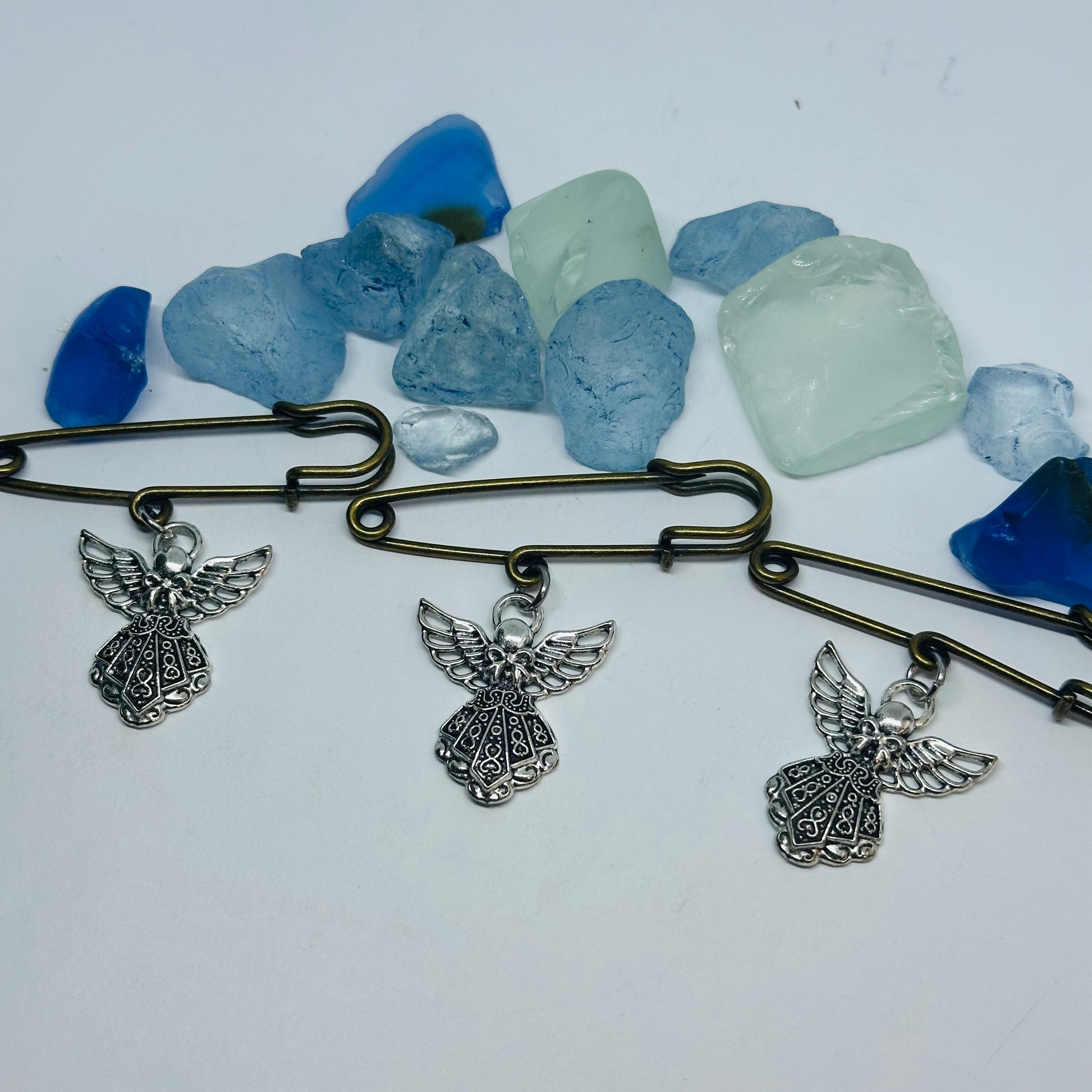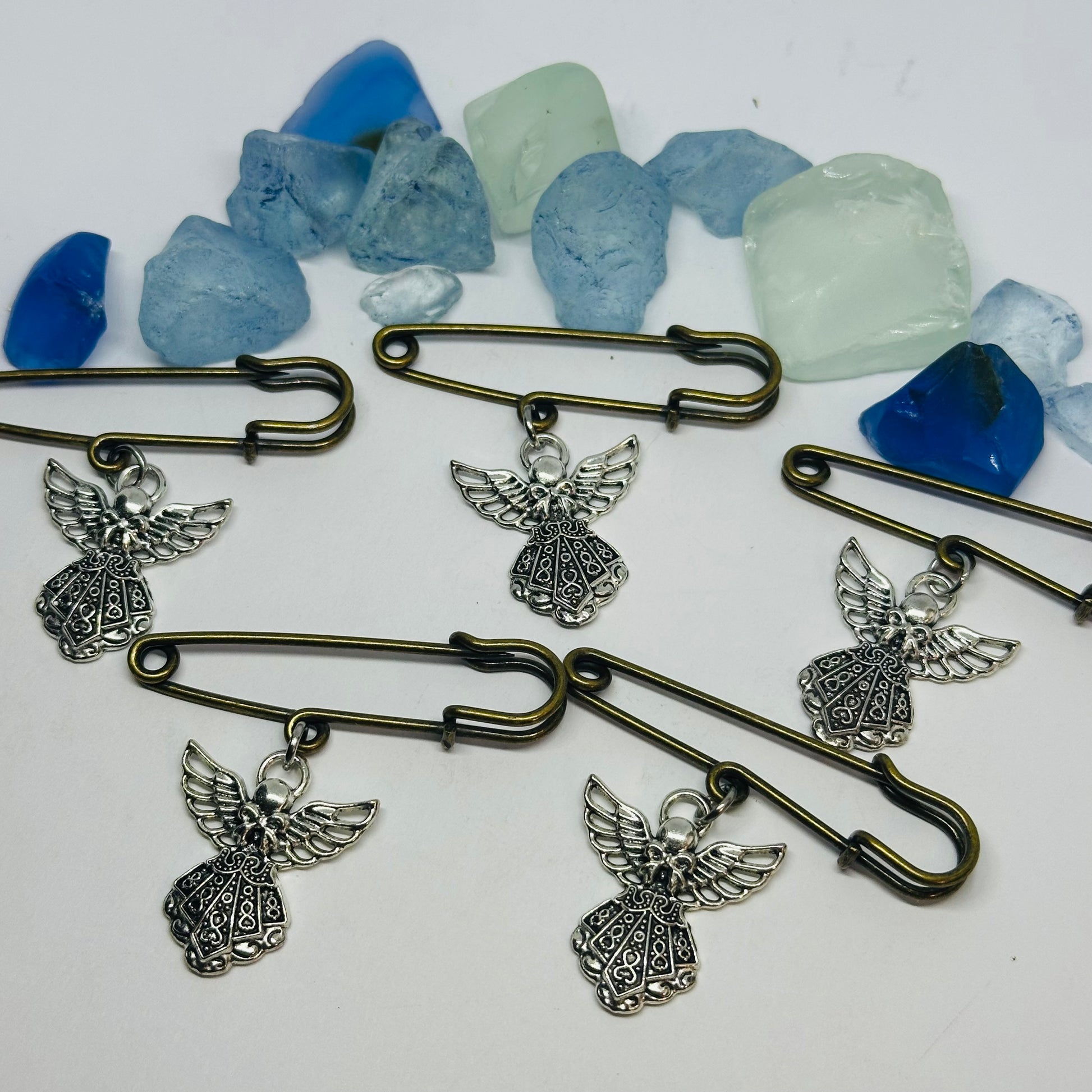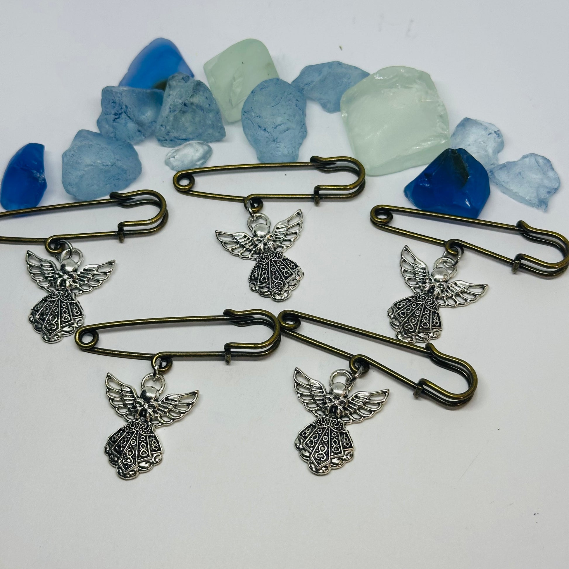 Add a little charm wherever you go—literally. These bronze pins feature a delicate silver-toned angel charm that adds a sweet, celestial touch to your favorite accessories. Whether you pin it on your denim jacket, cozy sweater, or everyday tote, this little guardian brings a bit of sparkle and meaning to your style.