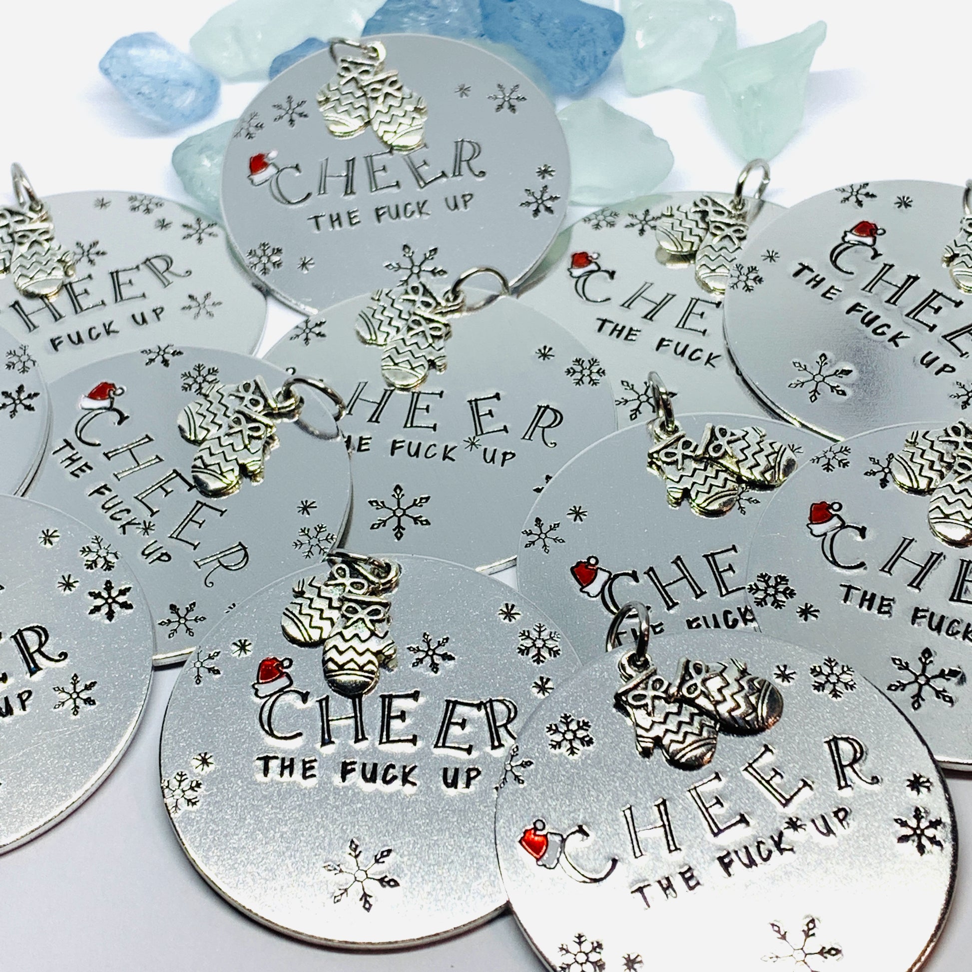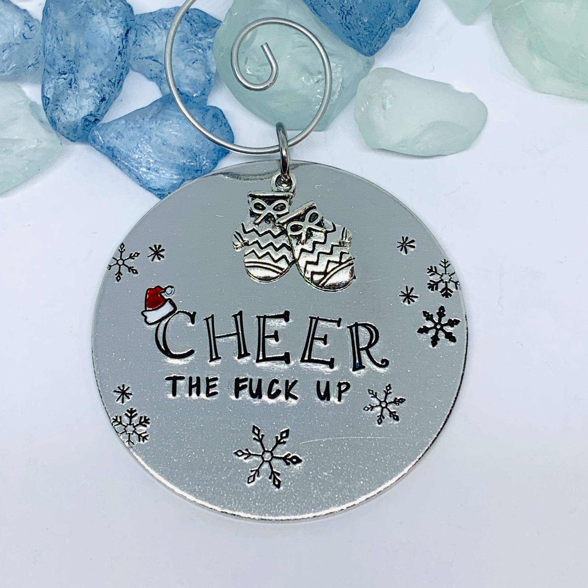 25 Cheer the Fuck Up Ornament | Snowflake Adult Christmas Tree | Mittens Charm | Hand Painted Hand Stamped Housewarming Gift | Santa Hat Design
