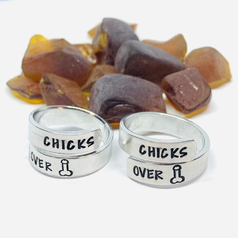 Chicks Over Dicks Hand Stamped Ring | Adult Themed Gift | Penis | Best Girlfriend | Sexy