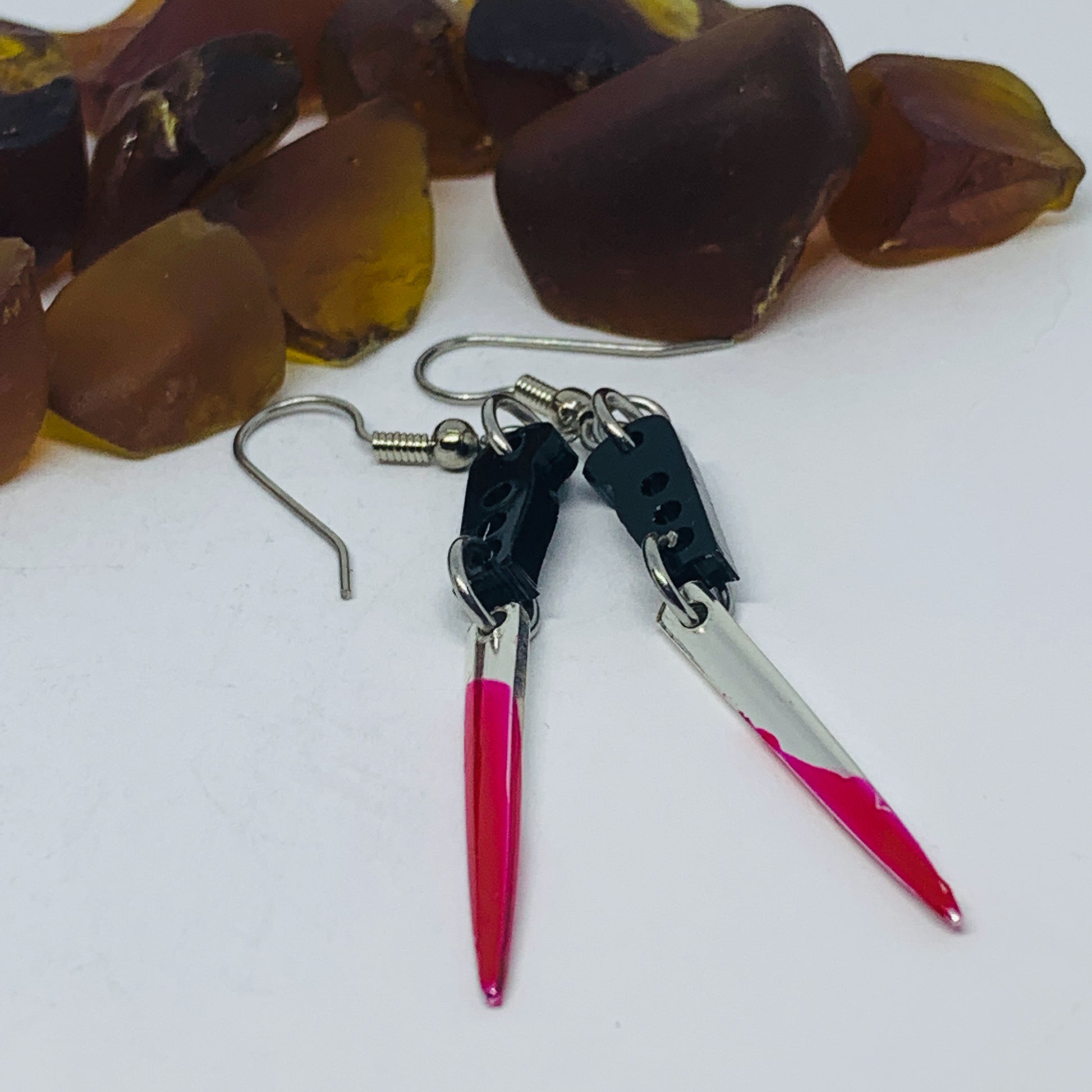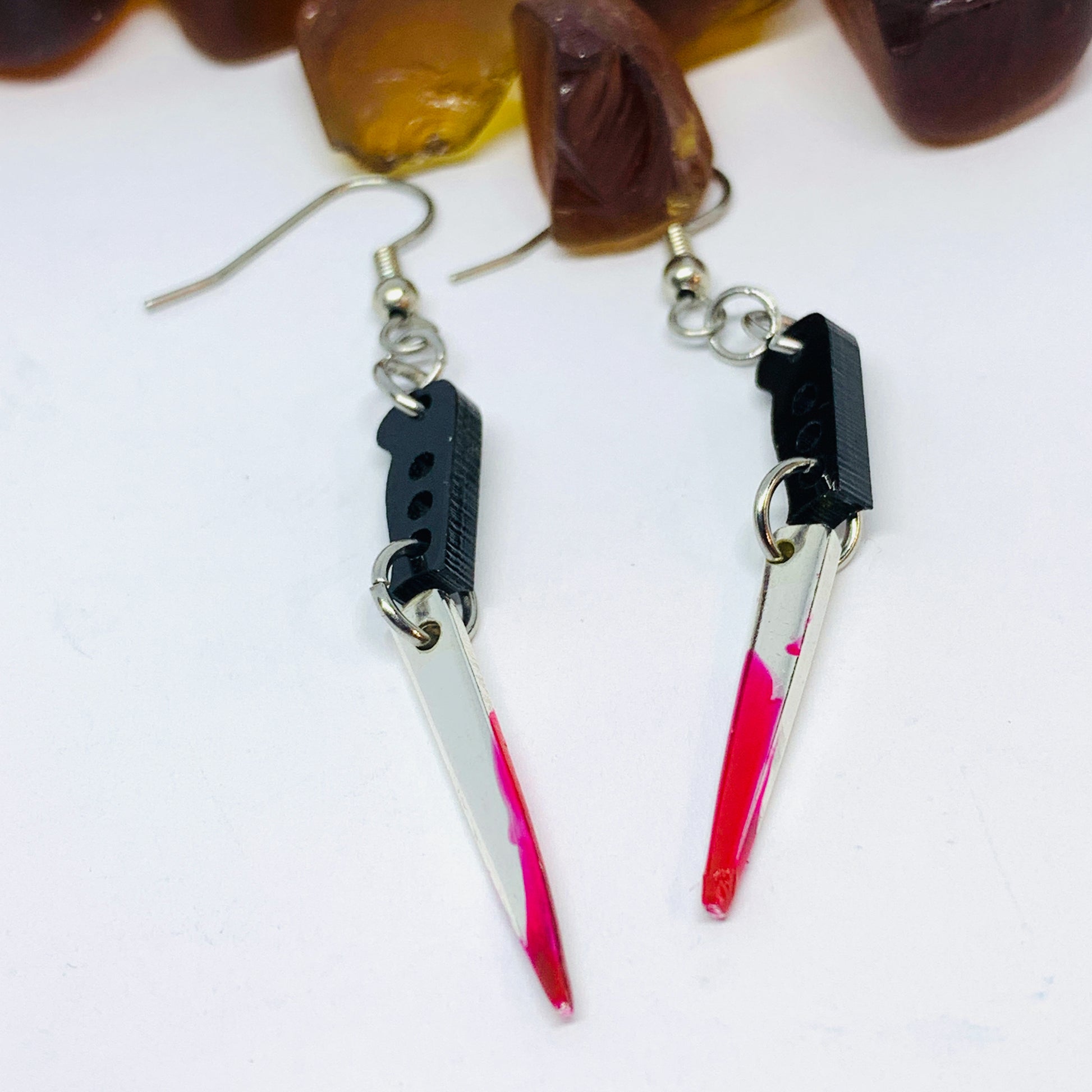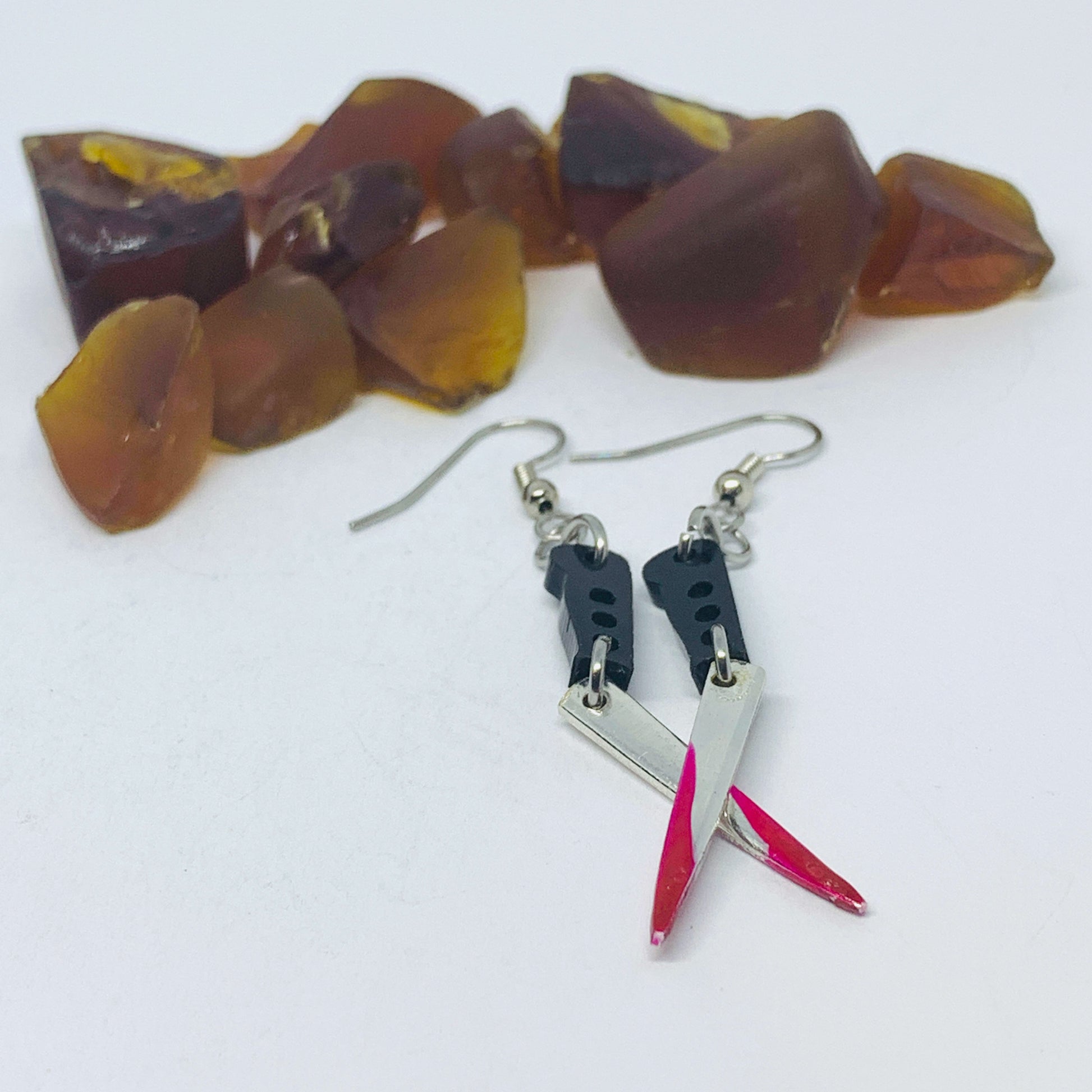 "Bloody Knife" Vintage Silverware Fork Tine Earrings w/ Silver Wires & Backs | Halloween Jewelry | Knife Earrings | Fake Blood Knife Jewelry