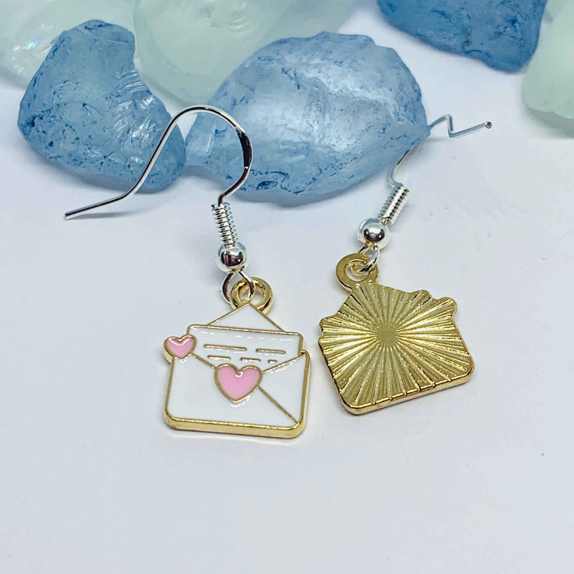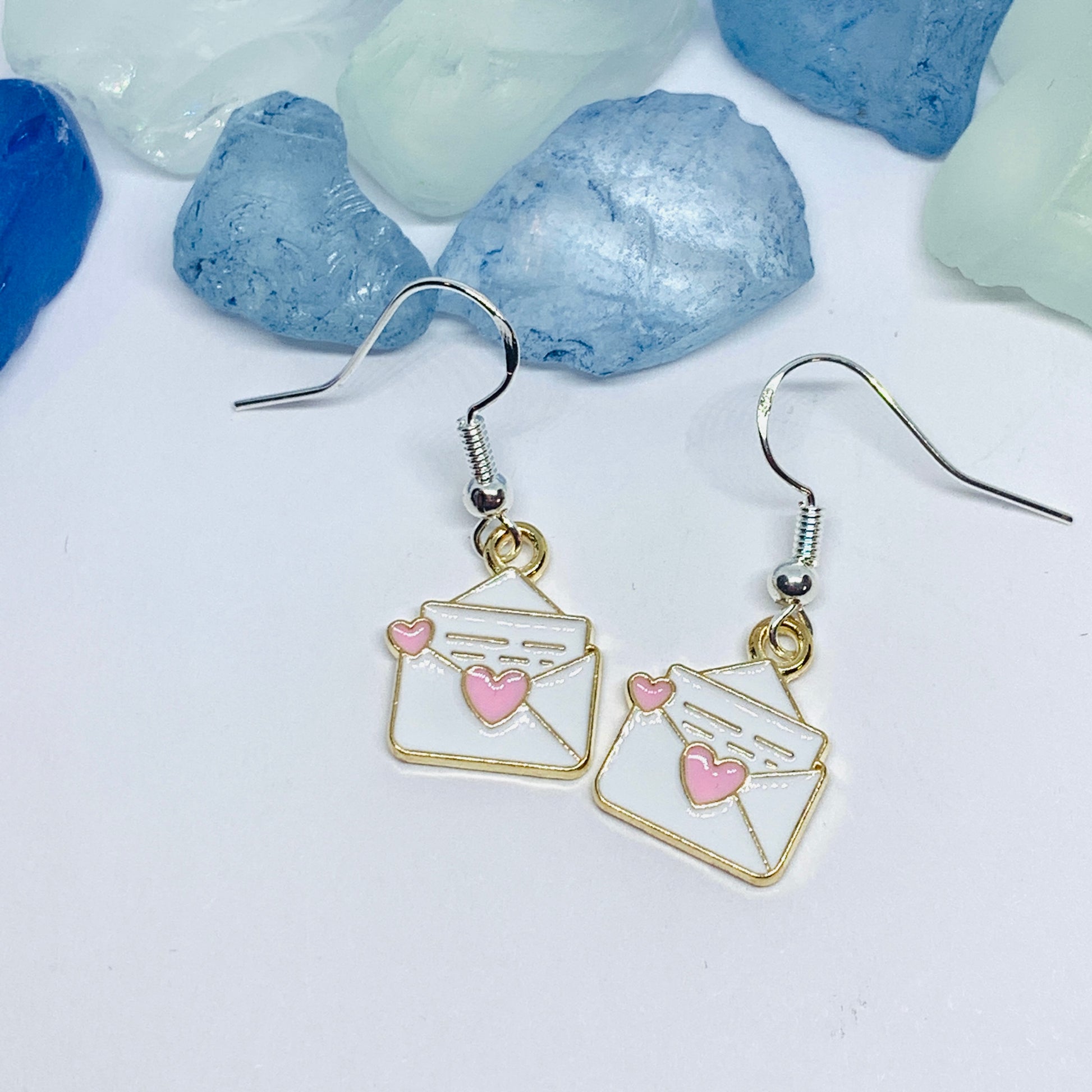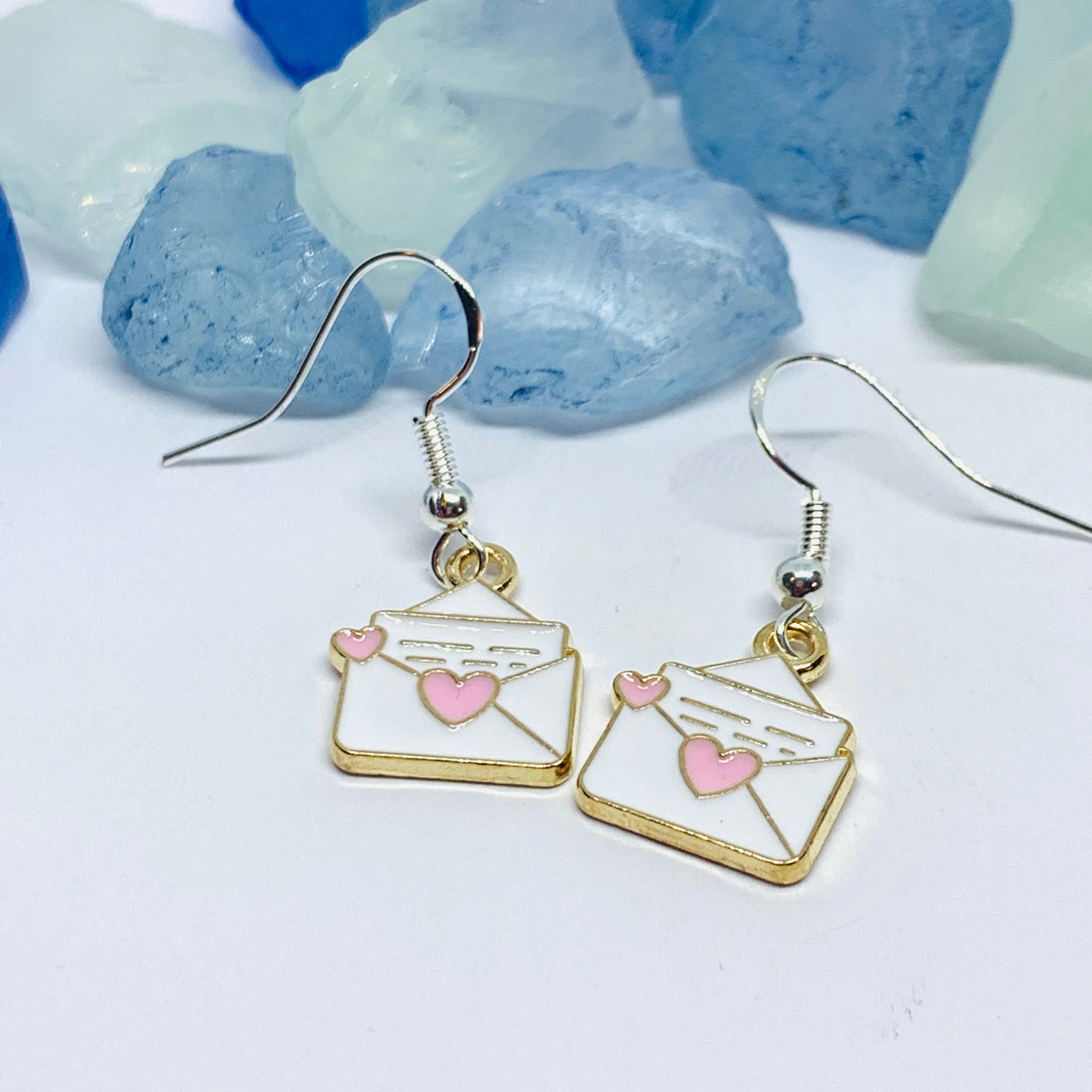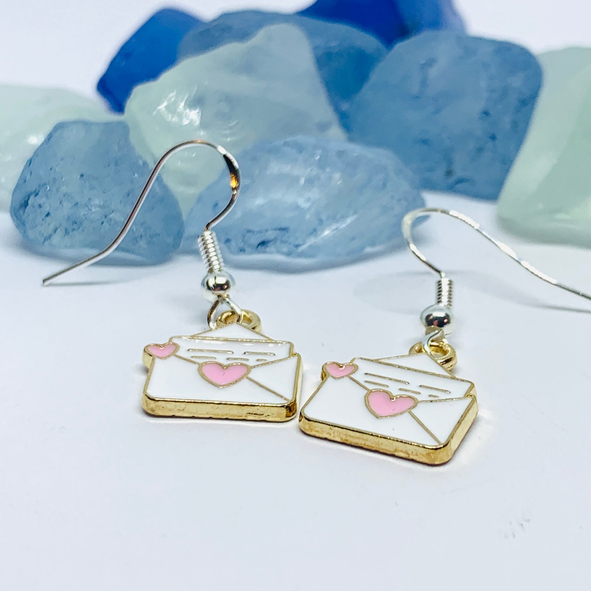 Love Letters Enamel Earrings with Silver Wires and Backs | You’ve Got Mail Earrings | Fun Envelope Earrings