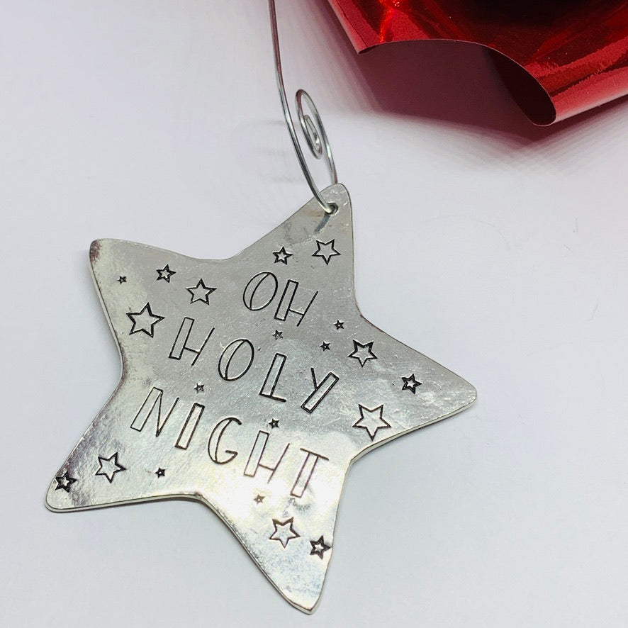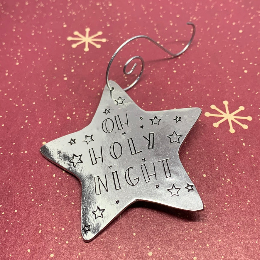 Oh Holy Night - Hand Stamped Ornament | Pewter Star Ornament | Christmas Ornament Religious | Hand Crafted Pewter Ornament | Holiday | Tree Decoration