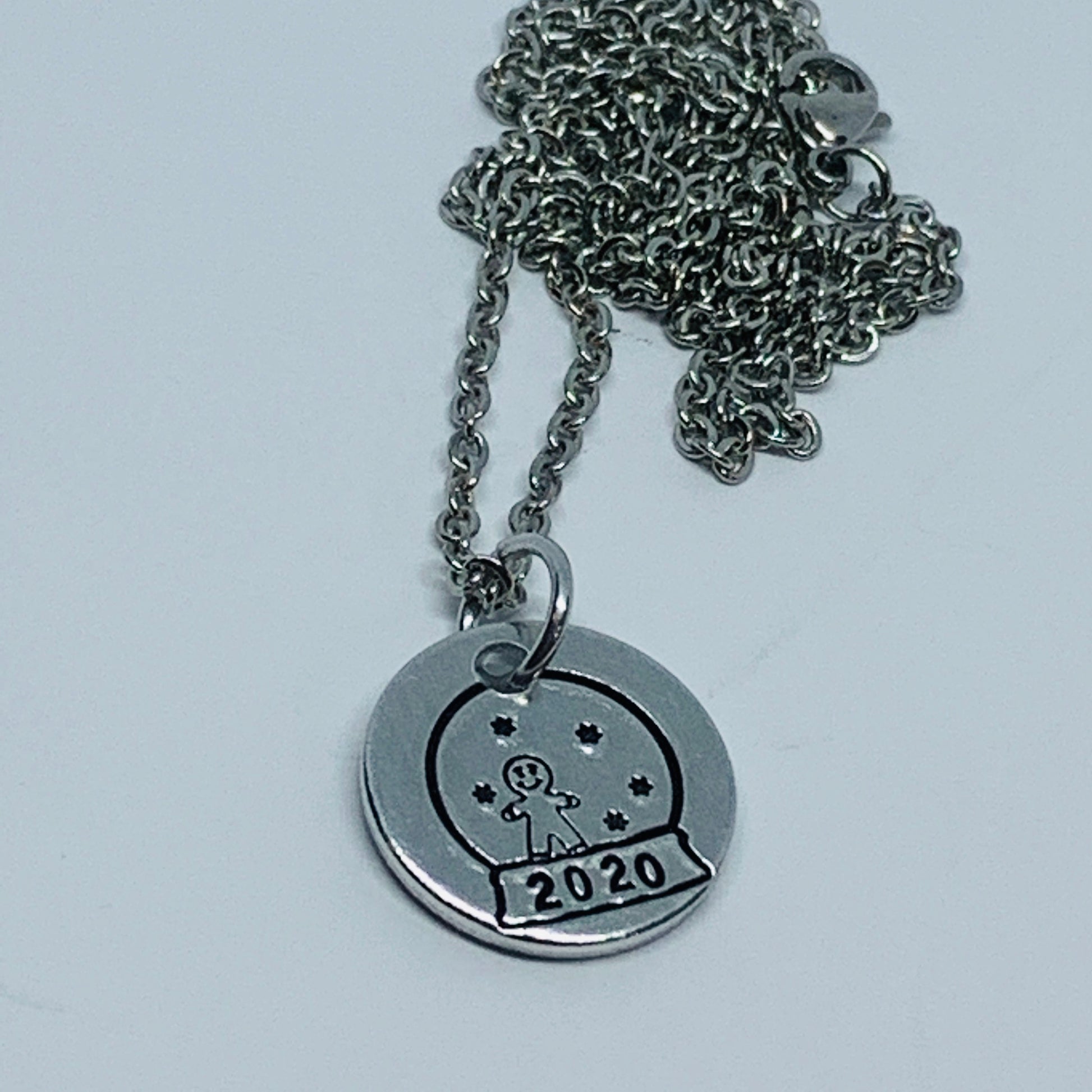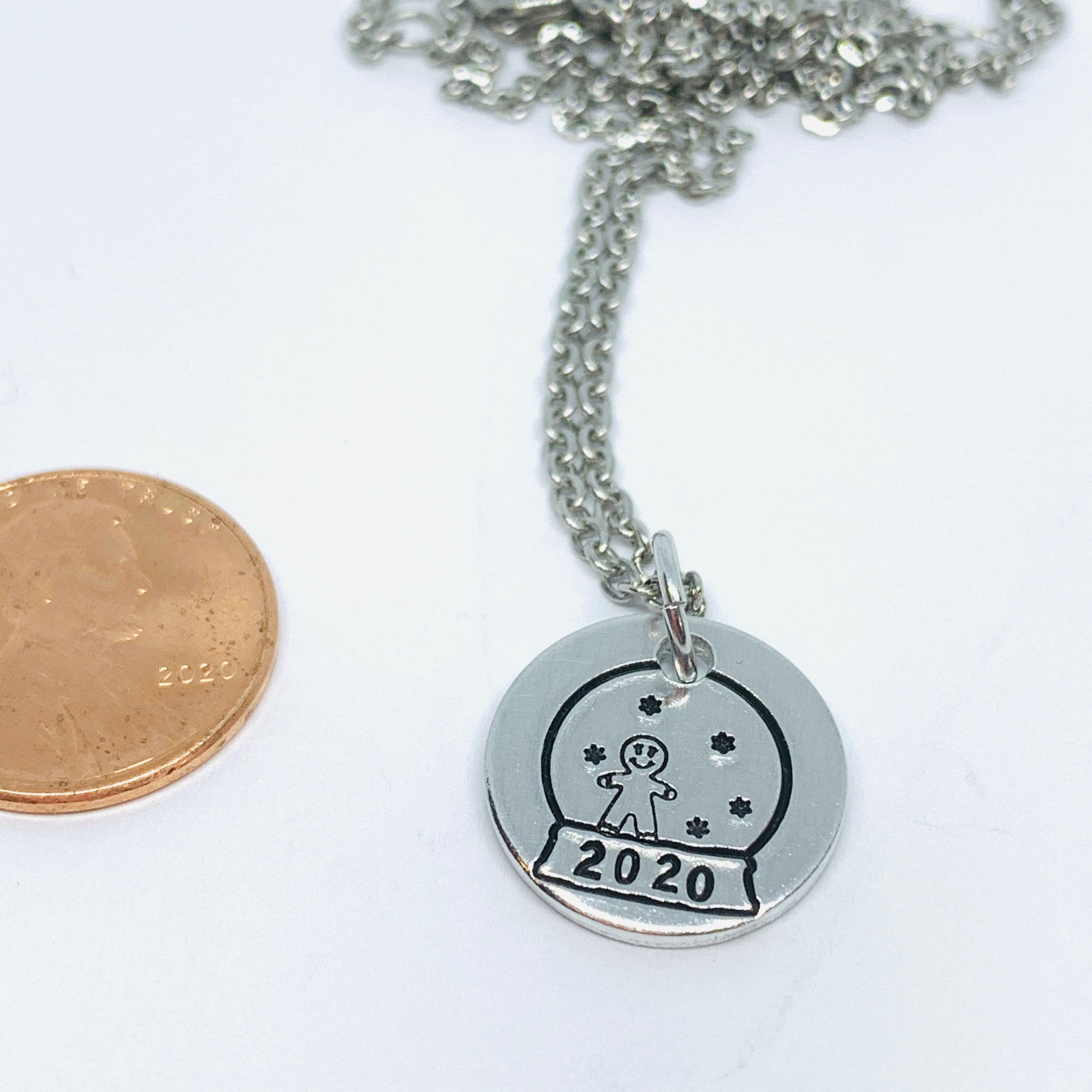 I personally hand stamp all of the lettering and designs in my NJ studio. Each character is hand aligned and punched into the metal, so the placement of the wording and designs will vary slightly from piece to piece. Each token will vary slightly from the other but will be very similar to what you see in the photos. After stamping, I darken the impressions so they stand out. To retain the contrast, it is highly recommended that the piece is not exposed to excessive moisture (bathing, swimming, exercise).