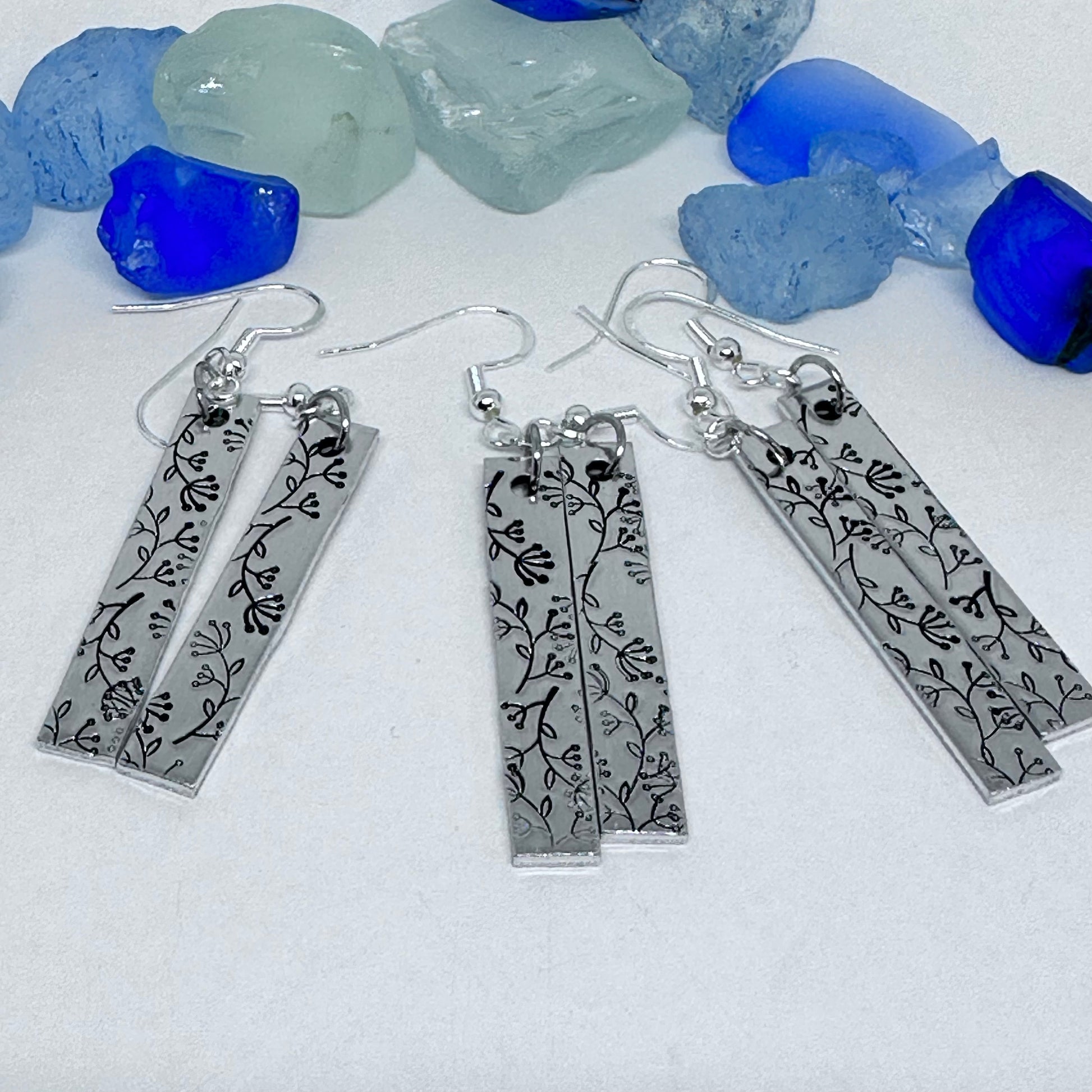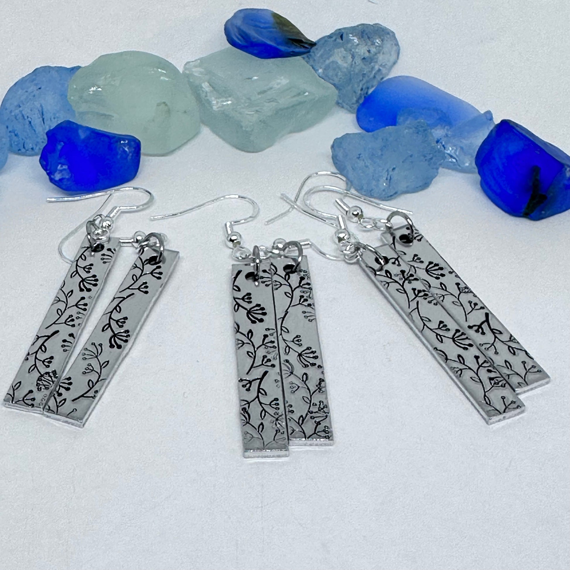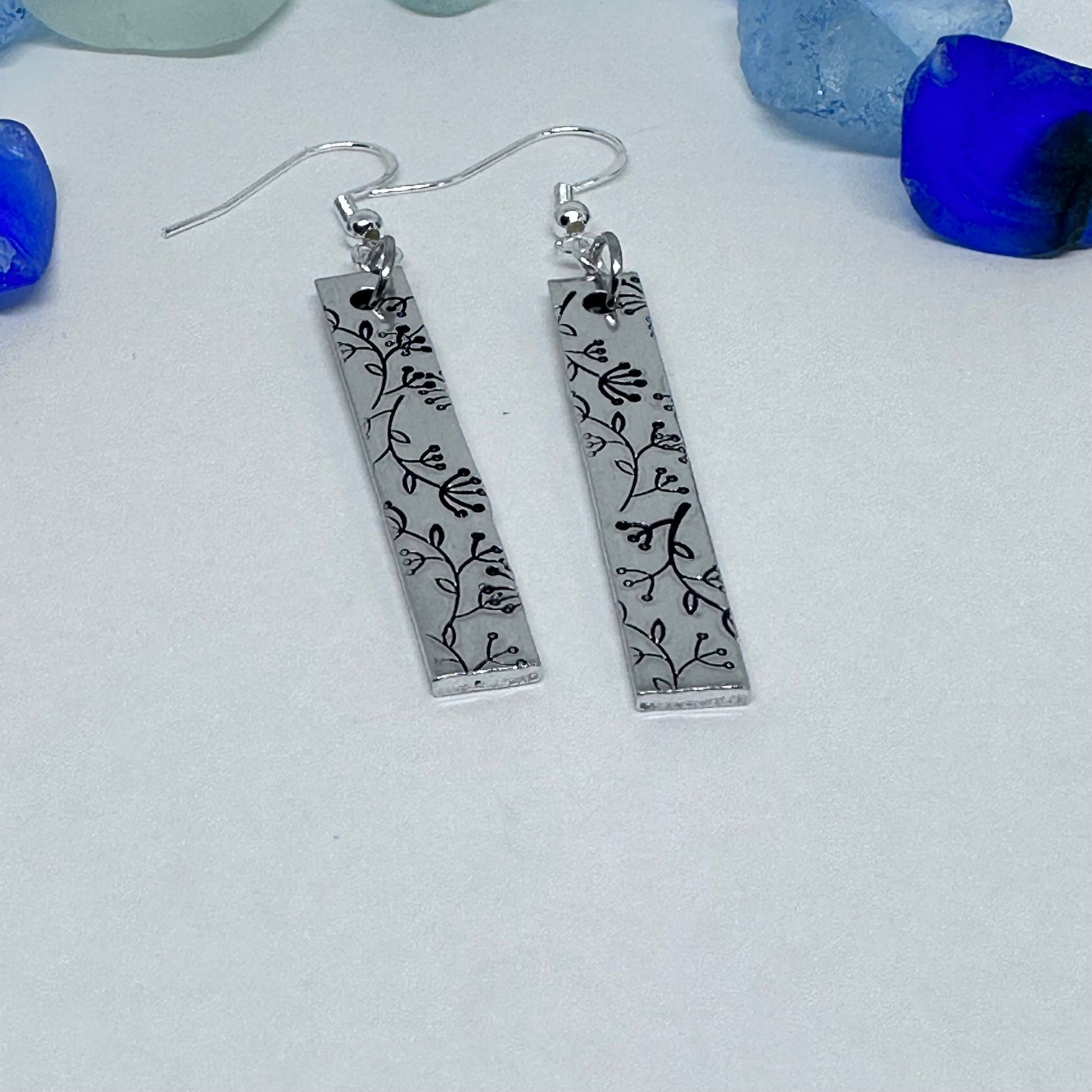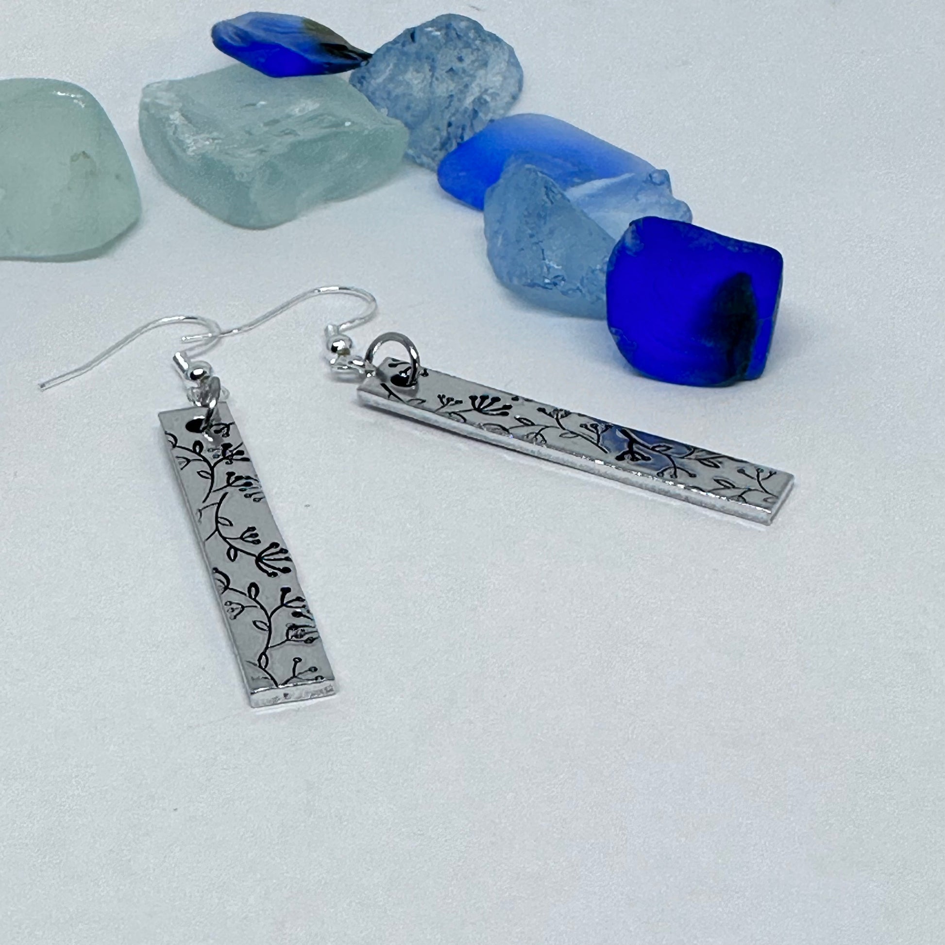These hand stamped earrings are attached to silver plated ear wires by a silver jump ring and a stainless steel jump ring. They come with clear earring backs to prevent loss!