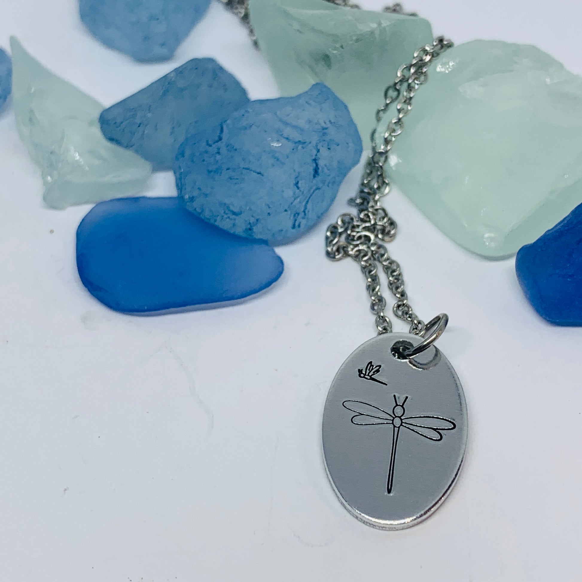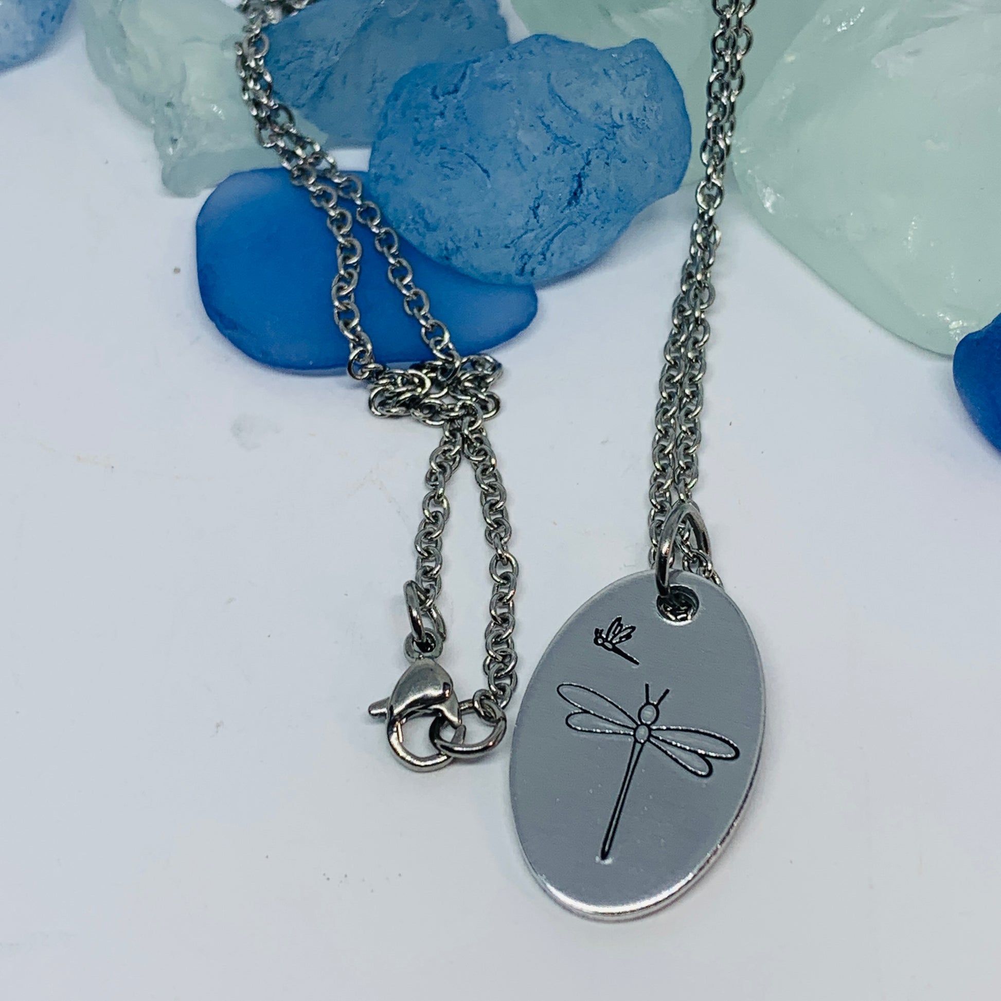 Dragonflies Hand Stamped Necklace | Dragonflies/Damselflies Oval Necklace | Gift for Her | Simple Gift | Odonata, Infraorder Anisoptera