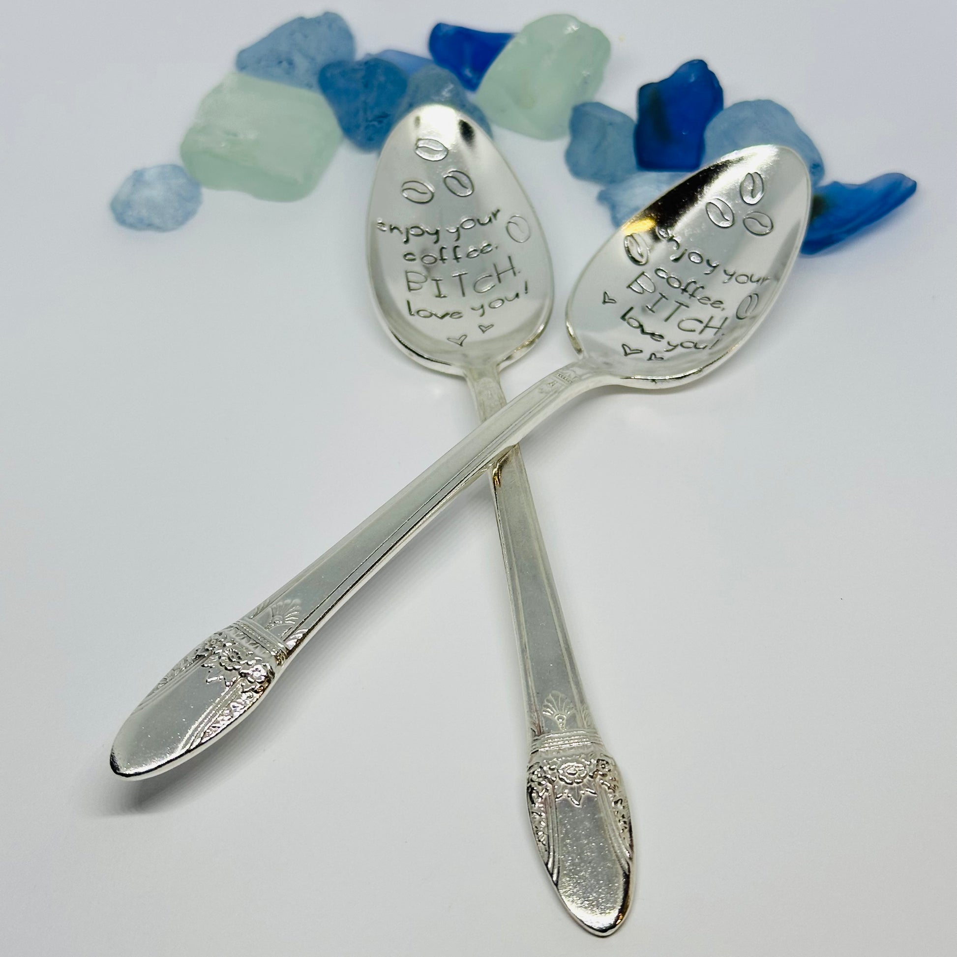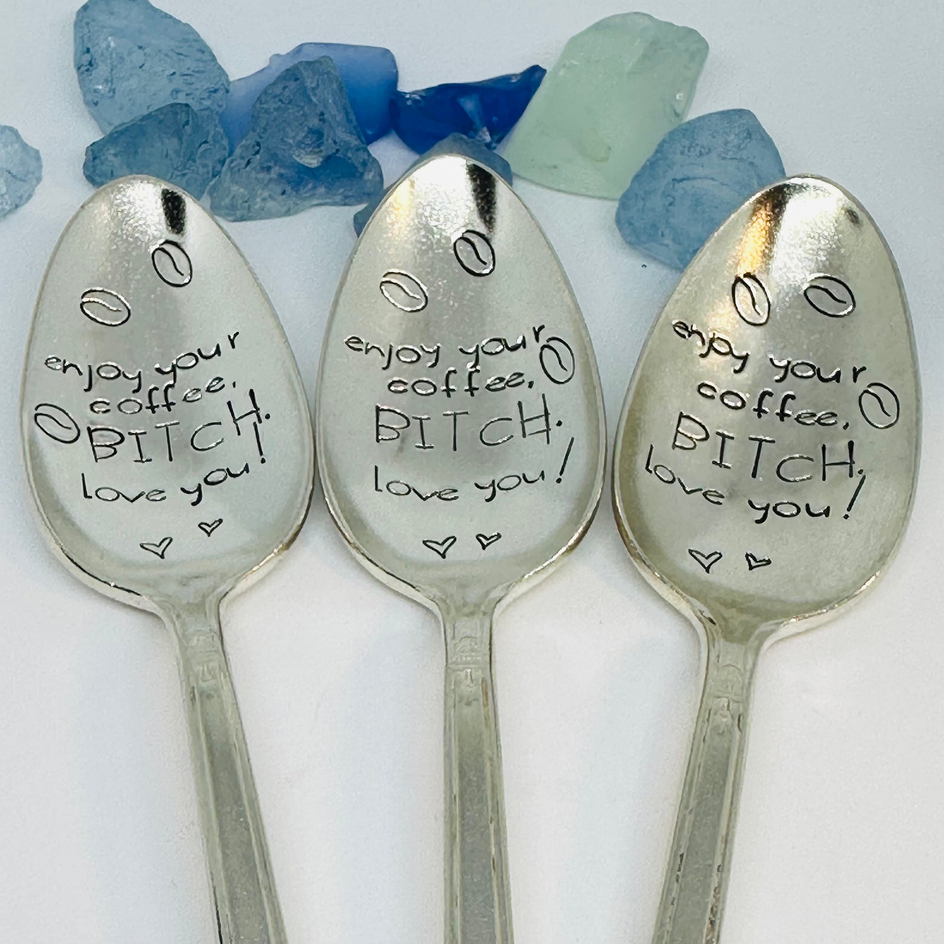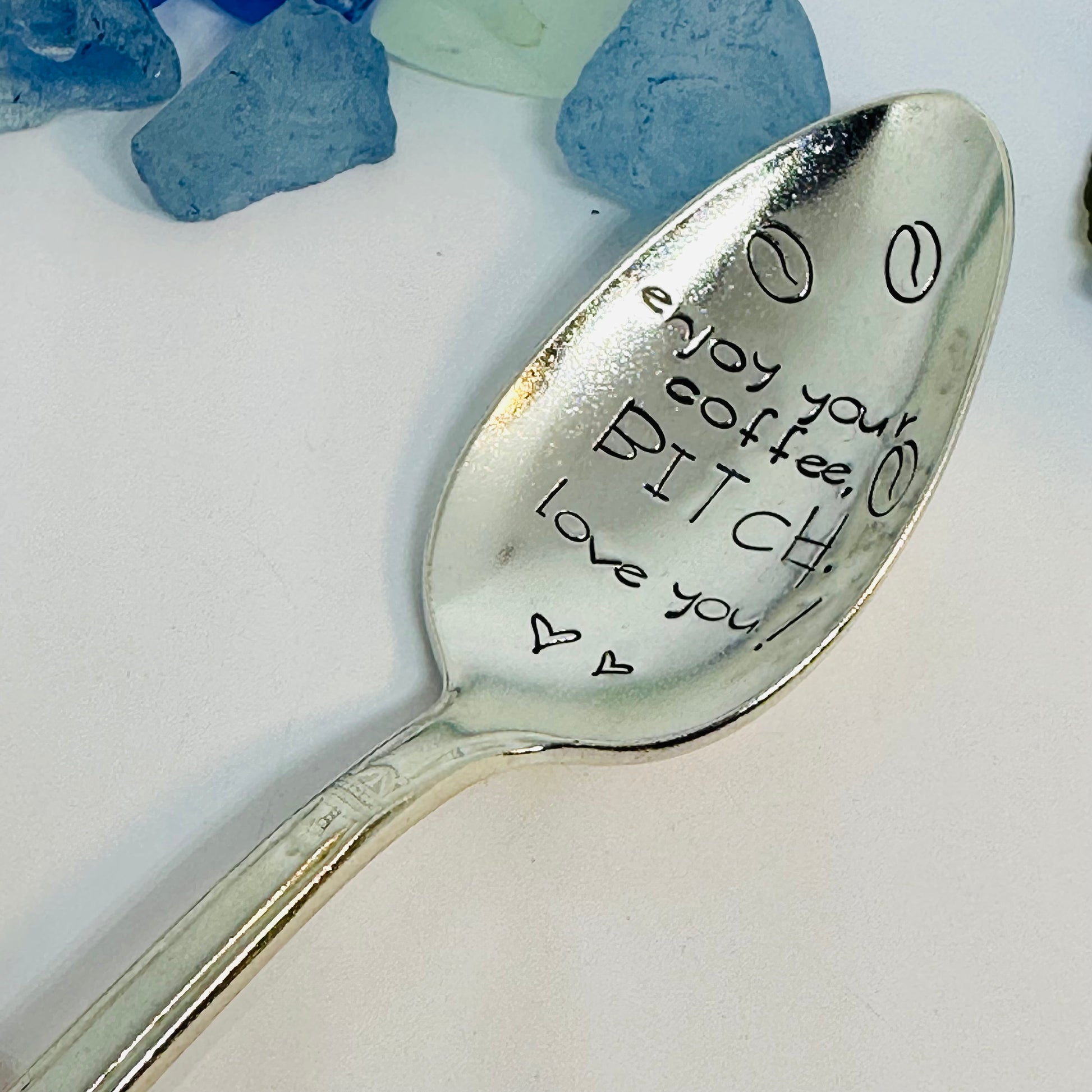 Enjoy Your Coffee/Tea, Bitch! Love you! Hand Stamped Vintage Novelty Spoon