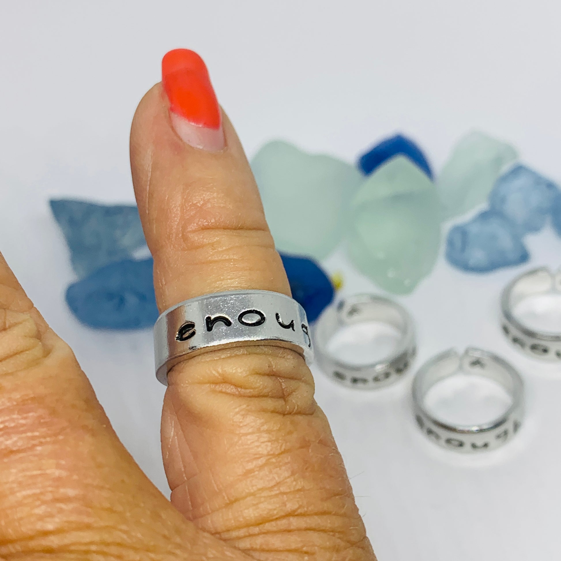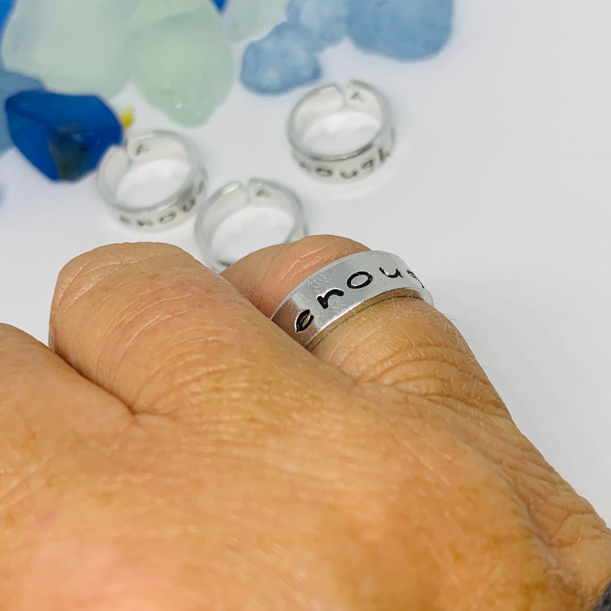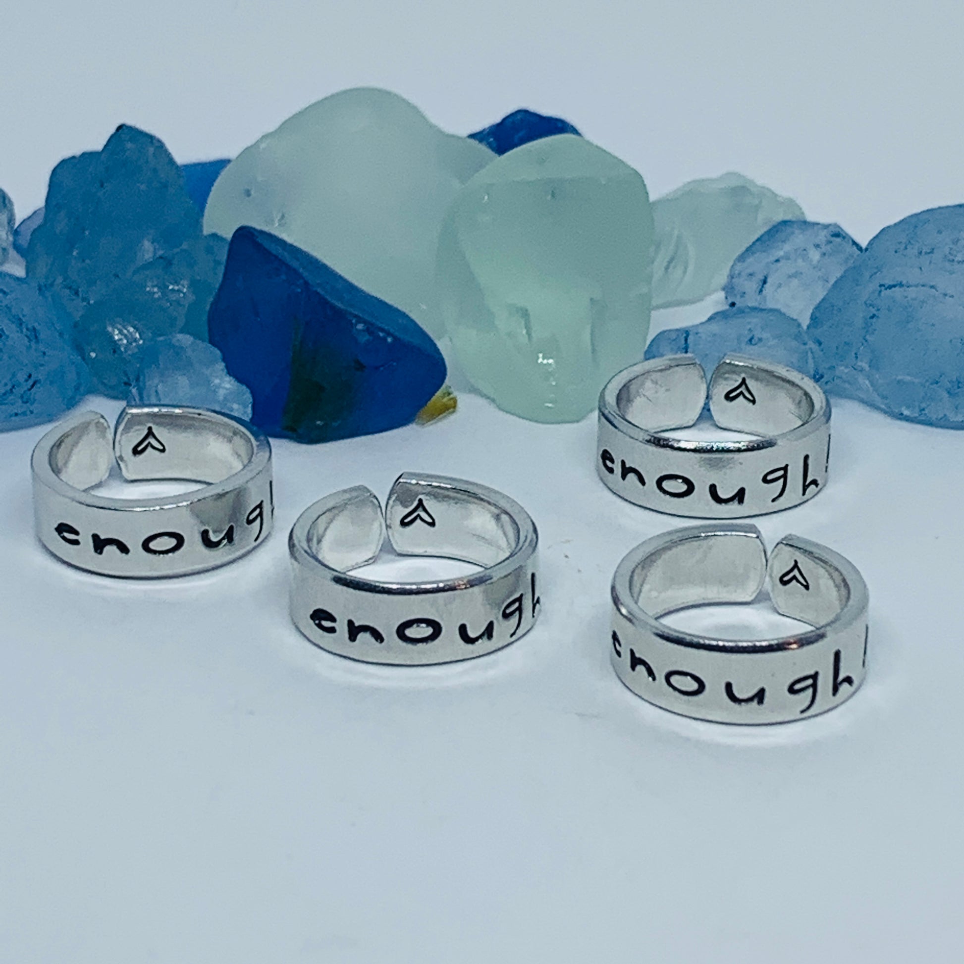 ENOUGH! Hand Stamped Ring | Pinky Promise | Self Worth Jewelry | Gun Safety | Stamped Metal Cuff Ring | No More | Fundraiser