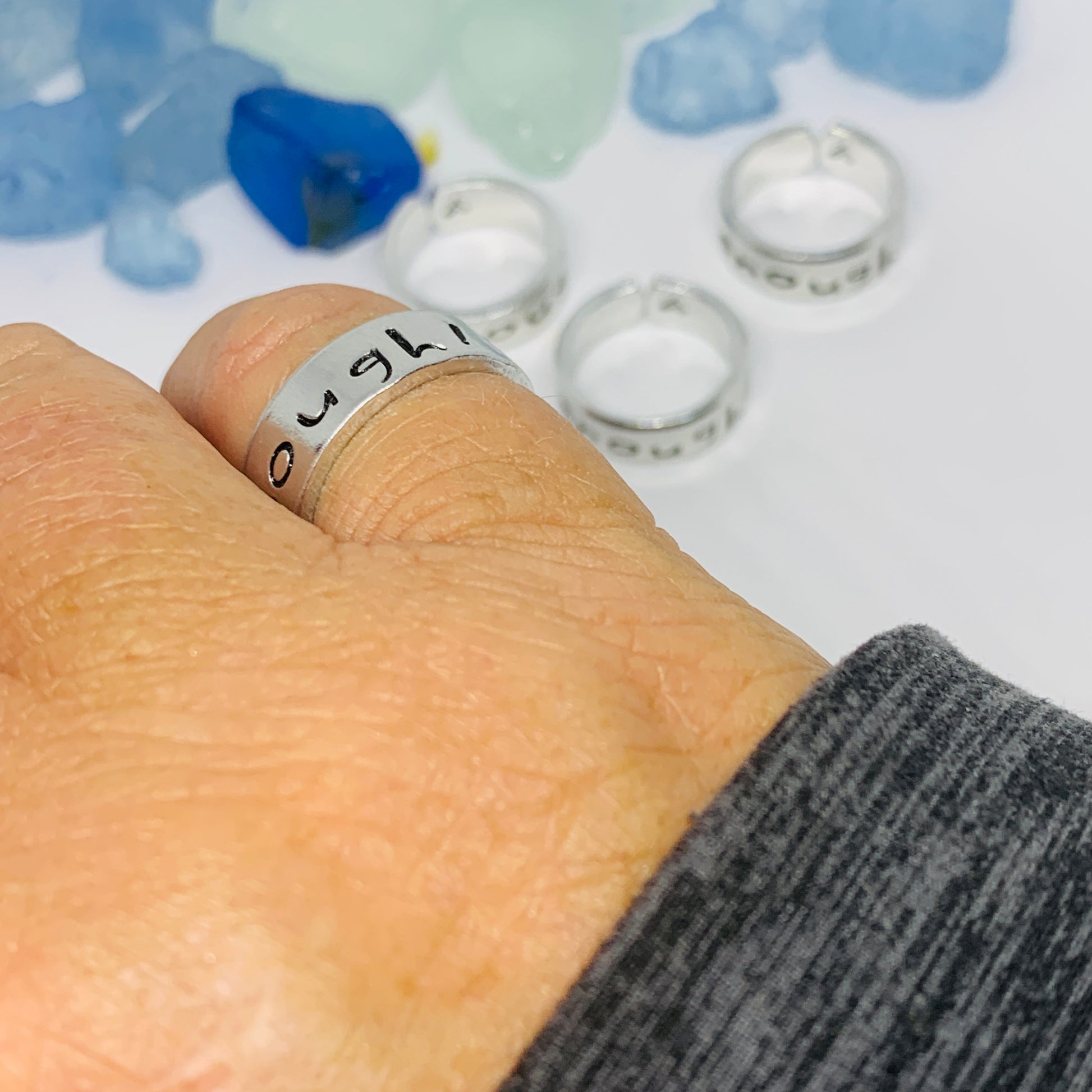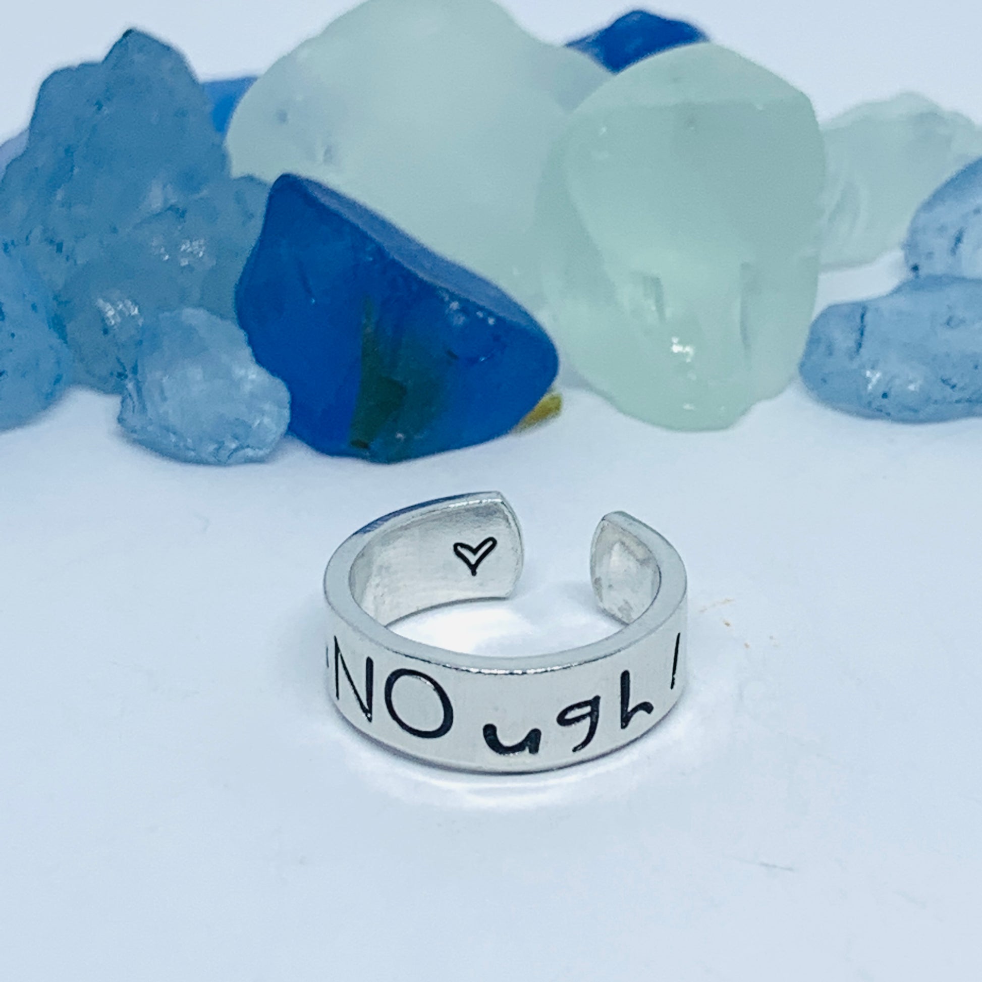 Is it happenstance that the word ENOUGH contains the word NO and the word UGH? eNOugh! If you’d like your ring stamped this way, please indicate so during check out