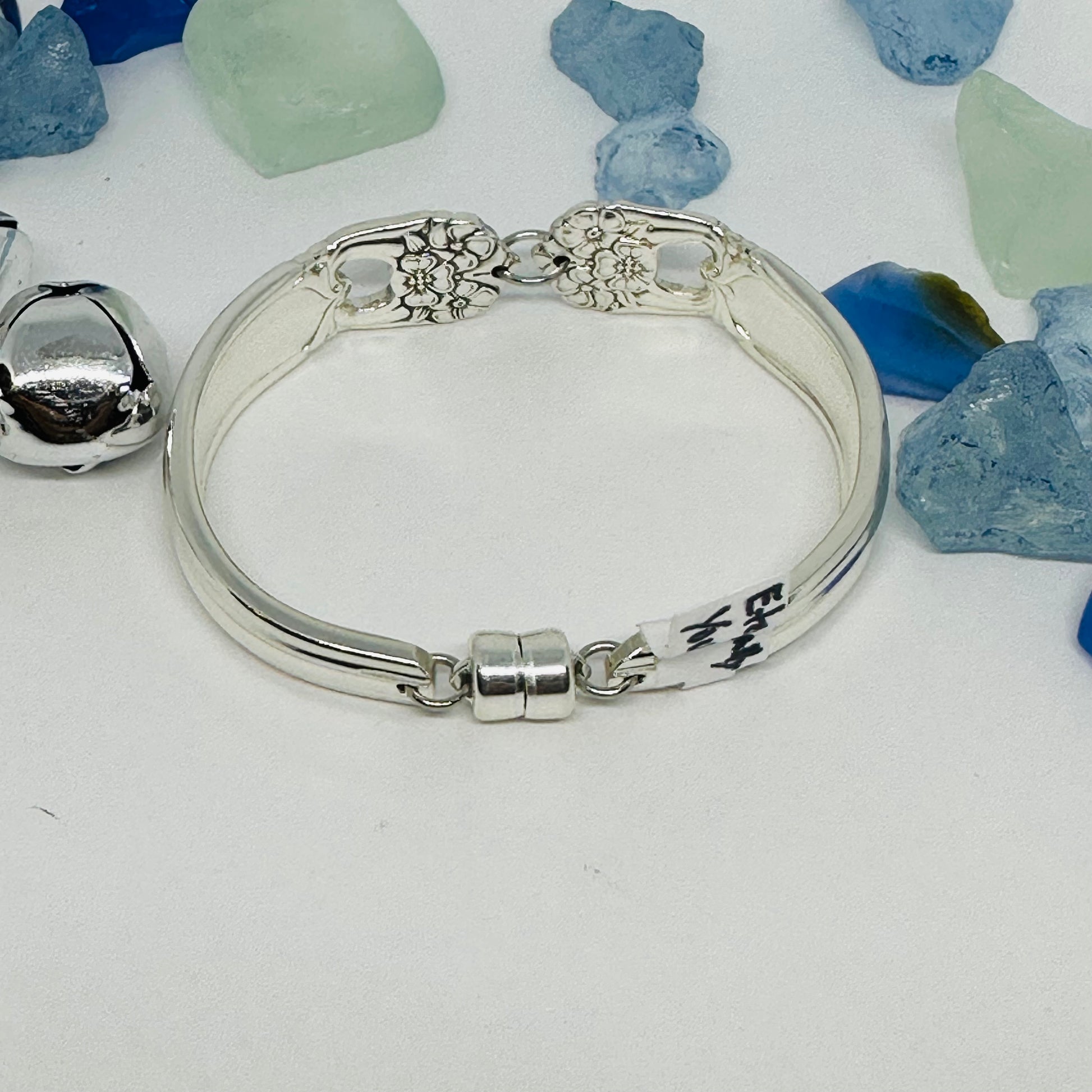 Bracelet created by hand by me from two vintage silver plated spoons known as “Eternally Yours” introduced in 1941 by International Silver.