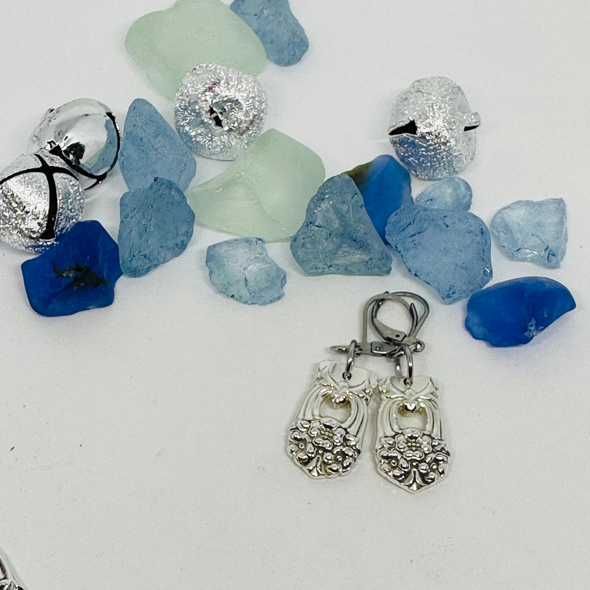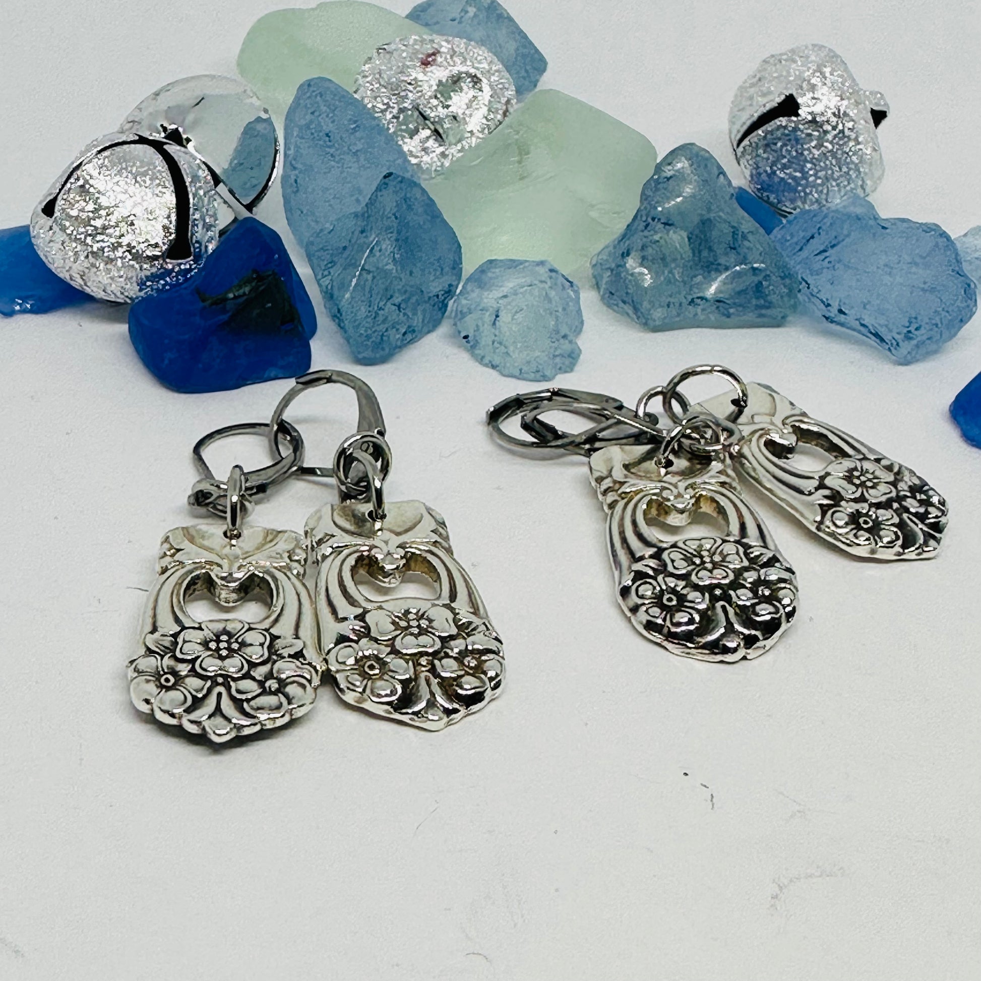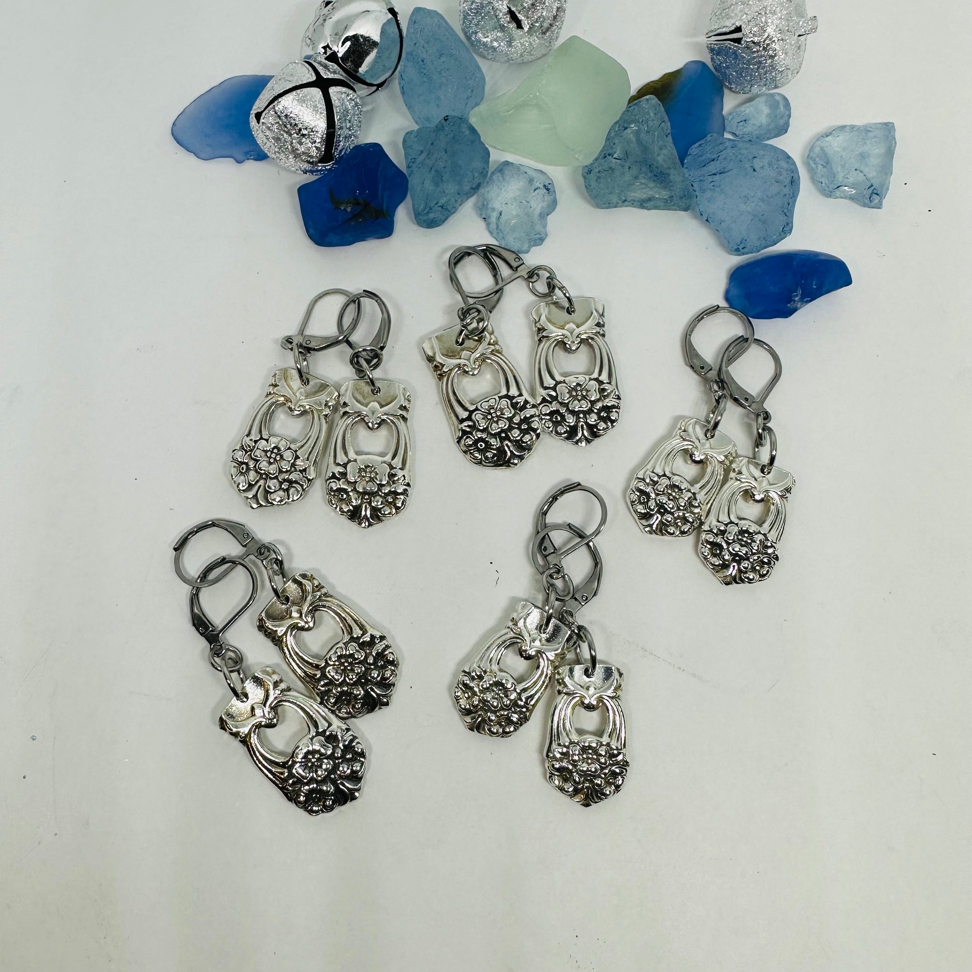 Earrings created by hand by me from two vintage silver plated spoons (with hypoallergenic lever backs) known as “Eternally Yours” introduced in 1941 by International Silver.