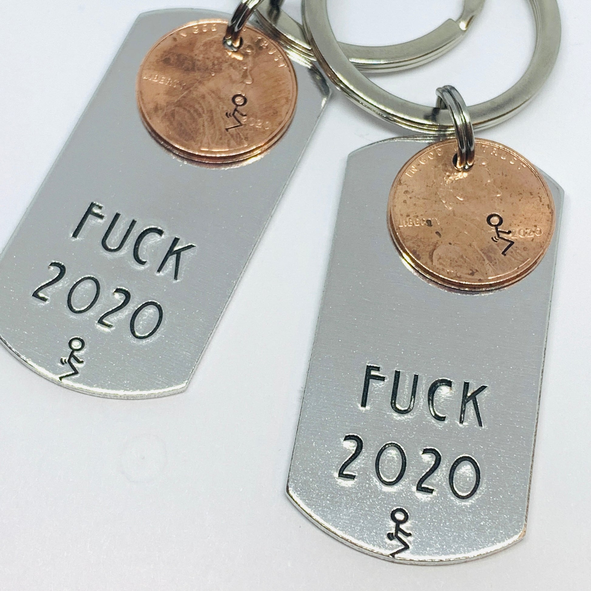 F*ck 2020 with Penny - Hand Stamped Metal Key Ring | Dog Tag 2020 Penny | Humping 2020 Key Chain | Adult Mature