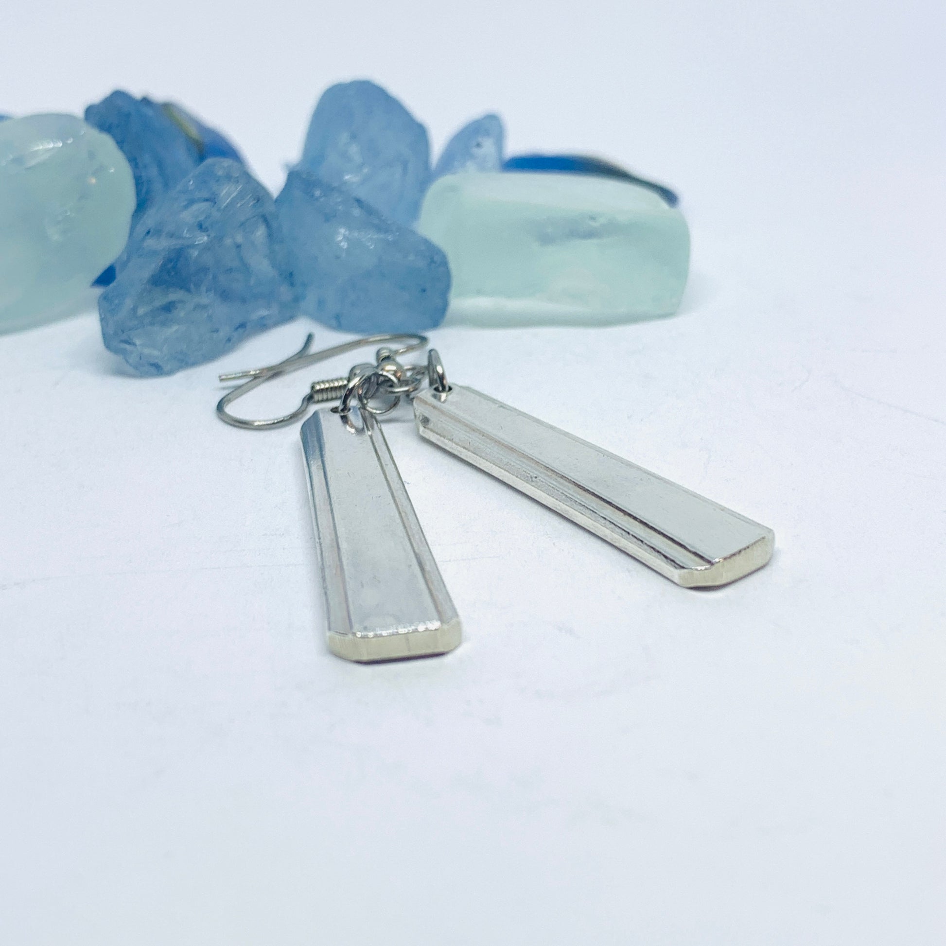 These decorative earrings were made from a vintage silver plated silverware spoon handle.
