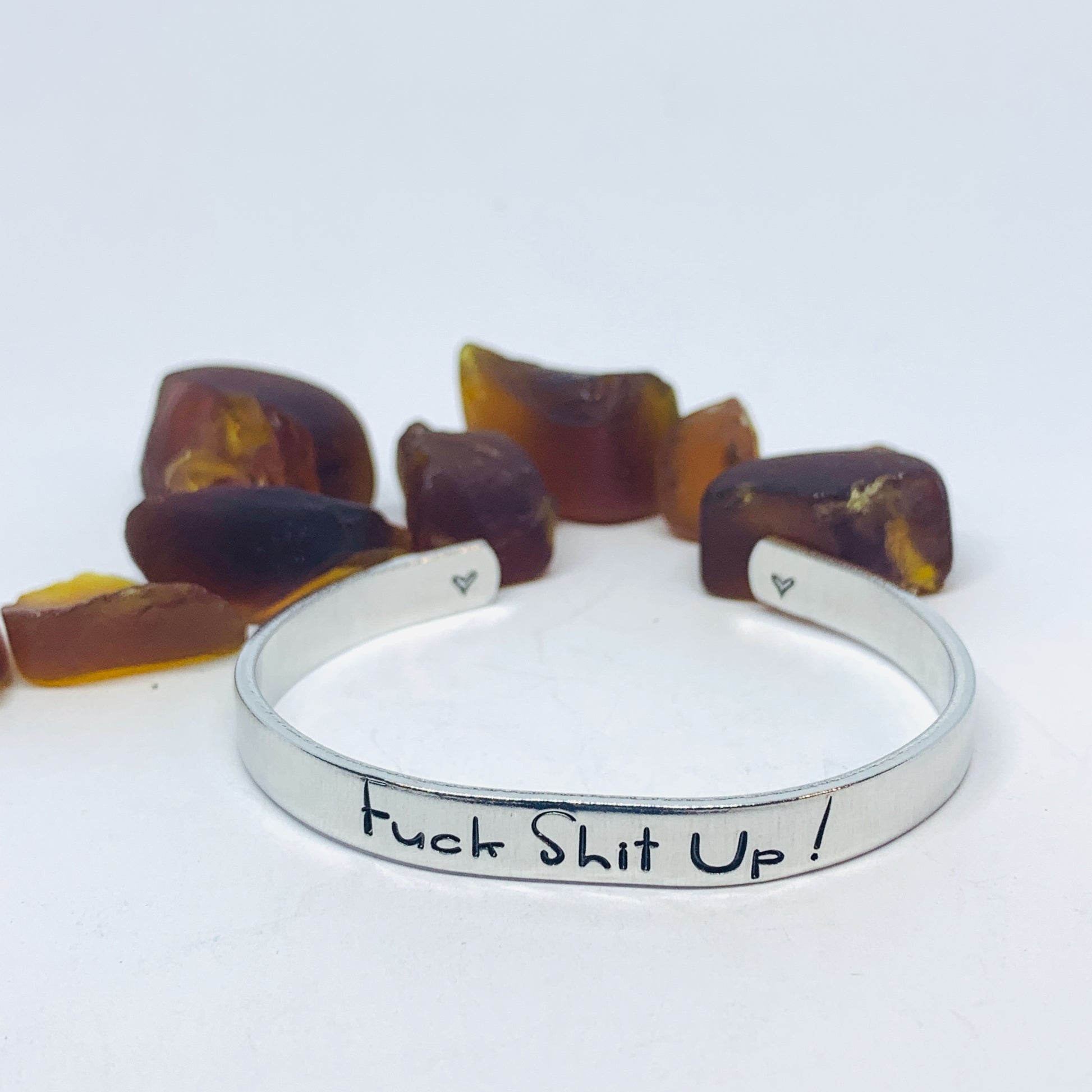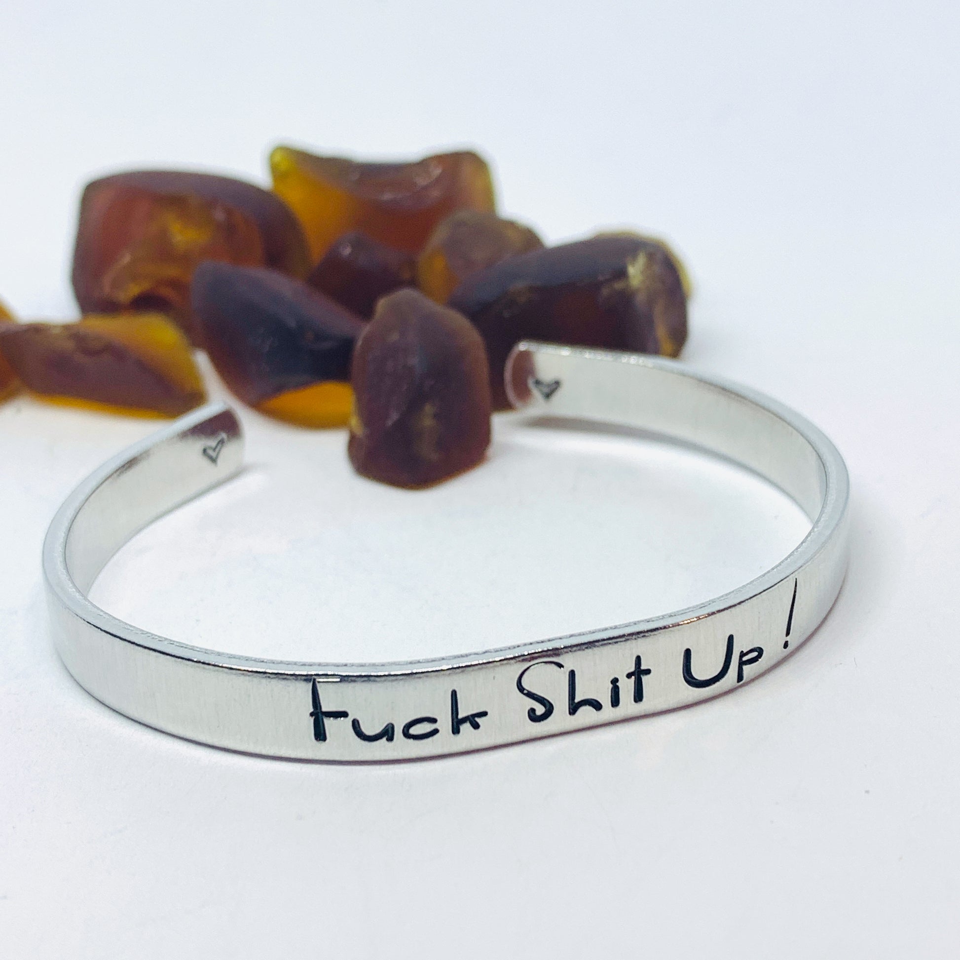 Fuck Shit Up! Hand Stamped Cuff Bracelet | Adult Themed Gift | Boo Crew | Britney Spears | Cody Rigsby | Peloton | Motivational Jewelry