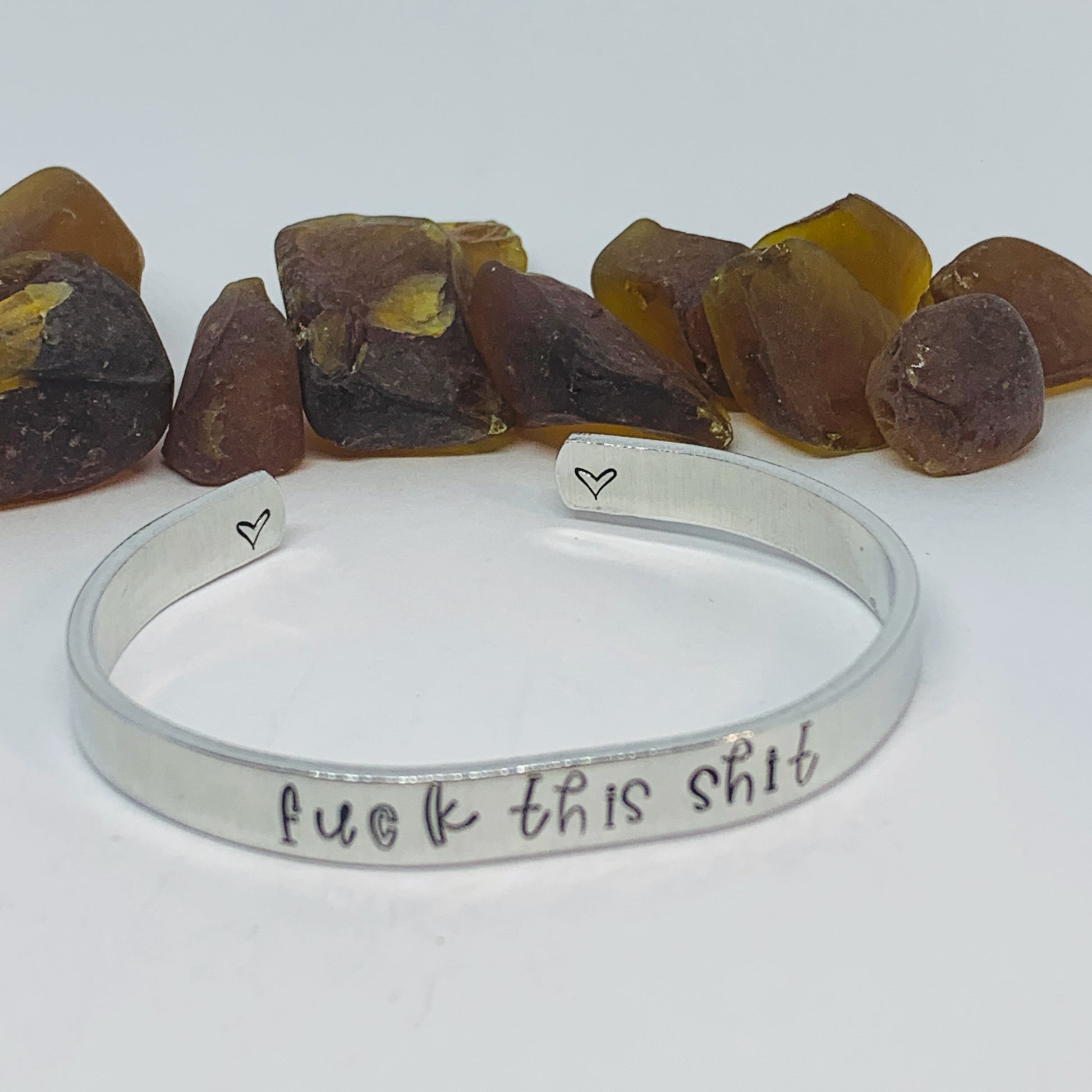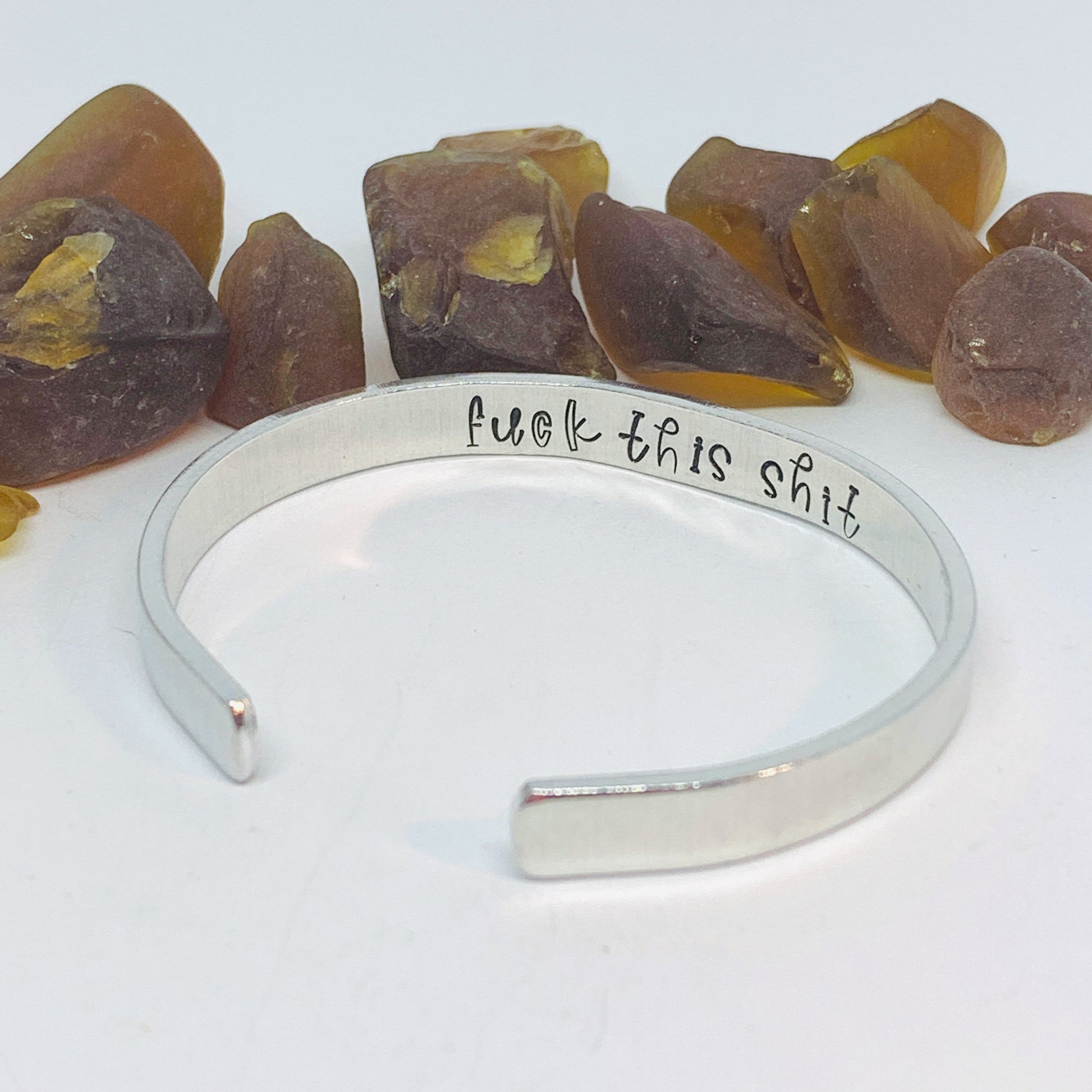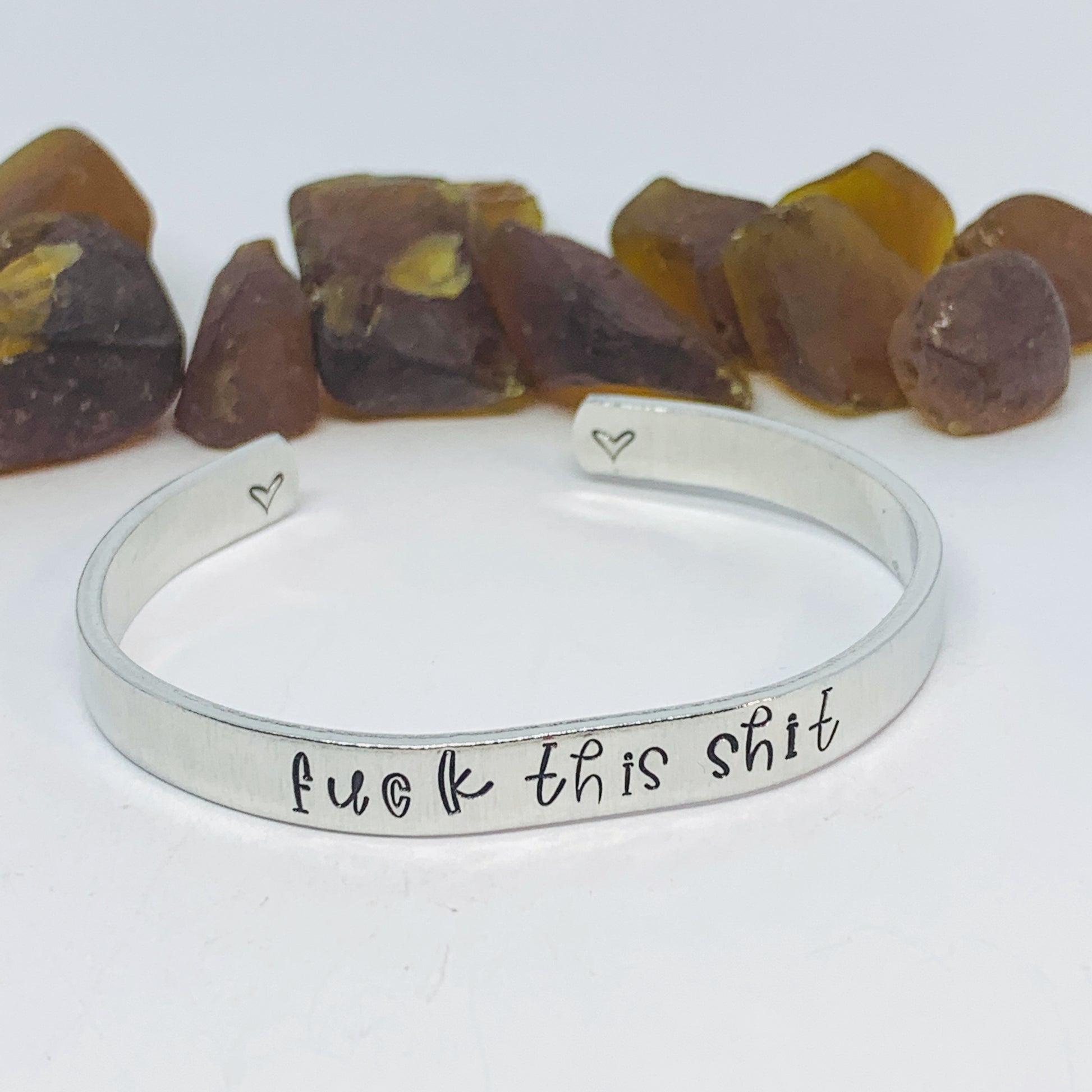 Fuck This Shit Hand Stamped Cuff Bracelet | Hidden Message Bracelet | Gift for Teachers | Gift for Nurses | Adult Themed Gift | Scroll Design