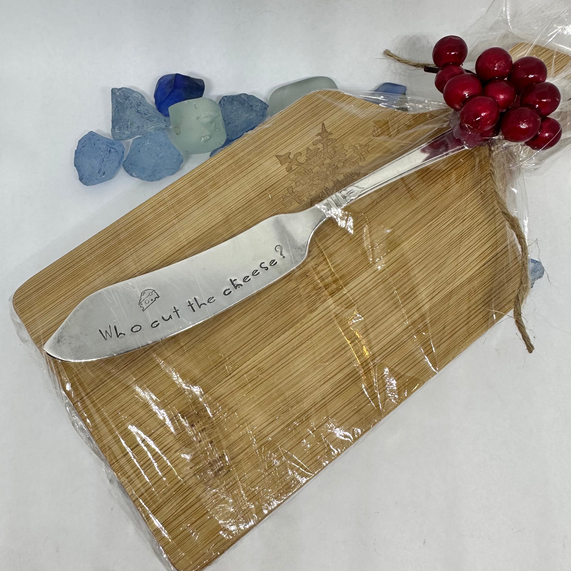 Gift Set - Vintage Silver Plated Hand Stamped Butter Knife & Cutting Board | Cheese Knife | Charcuterie
