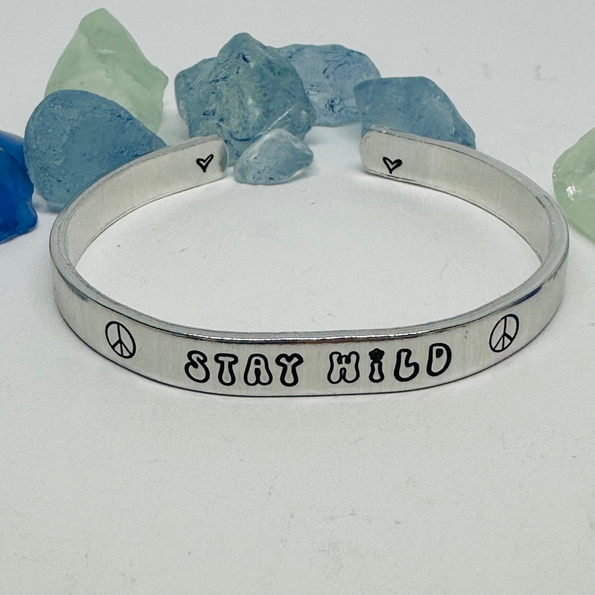 Materials: This is made using the highest quality 12 gauge aluminum. A great alternative to silver but won’t tarnish or turn your skin green! And it’s lightweight, affordable and made in the USA!
