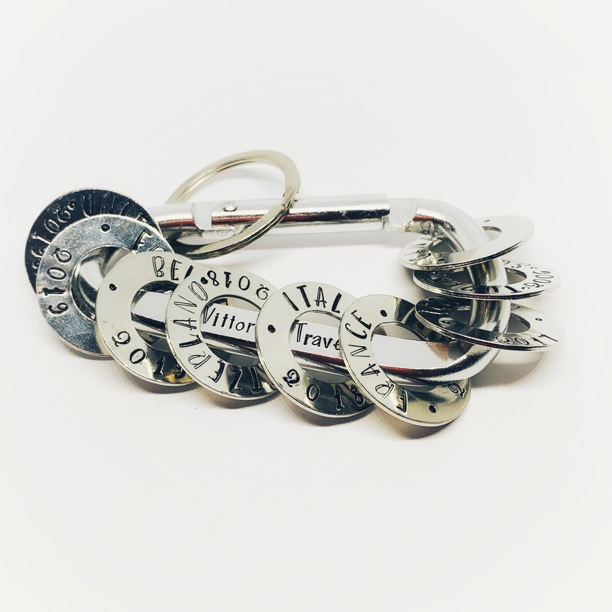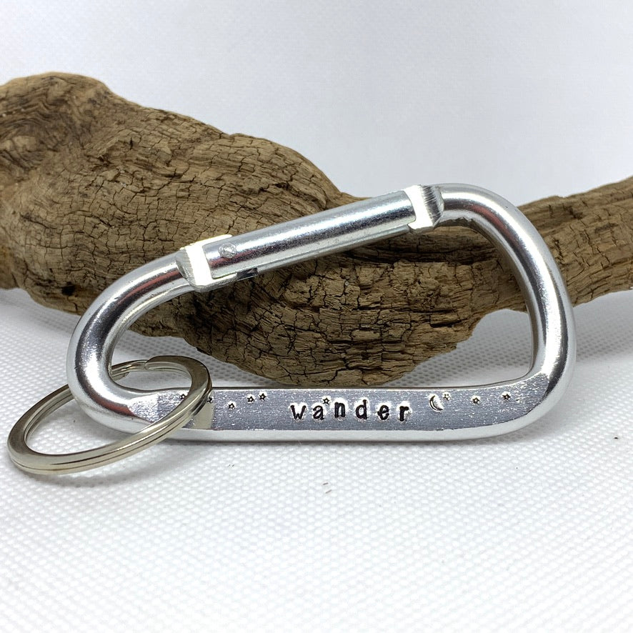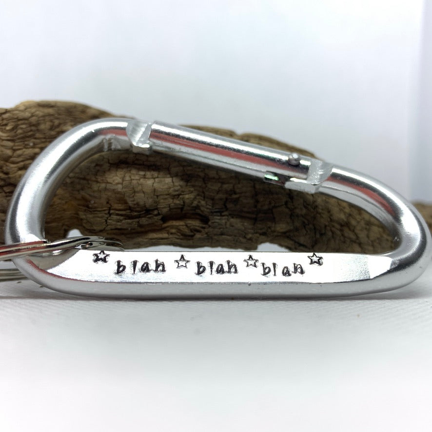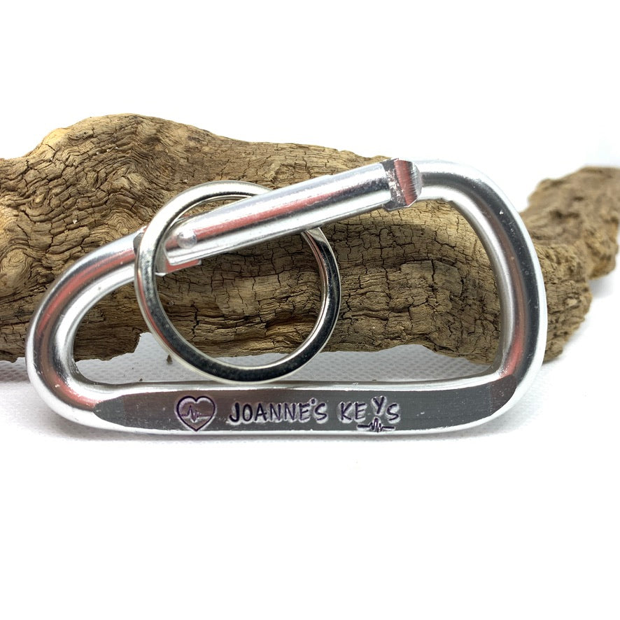 This is a hand stamped thick aluminum carabiner key chain. This would be a perfect personalized gift! Images are examples of other personalized carabiners I've created.