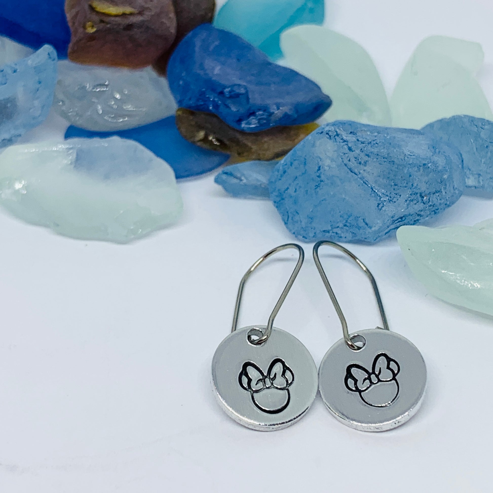 Hand Stamped Disney-Inspired Mouse Ears Earrings | Hand Stamped Metal Minnie & Mickey Earrings | Gifts for Her | Character Earrings