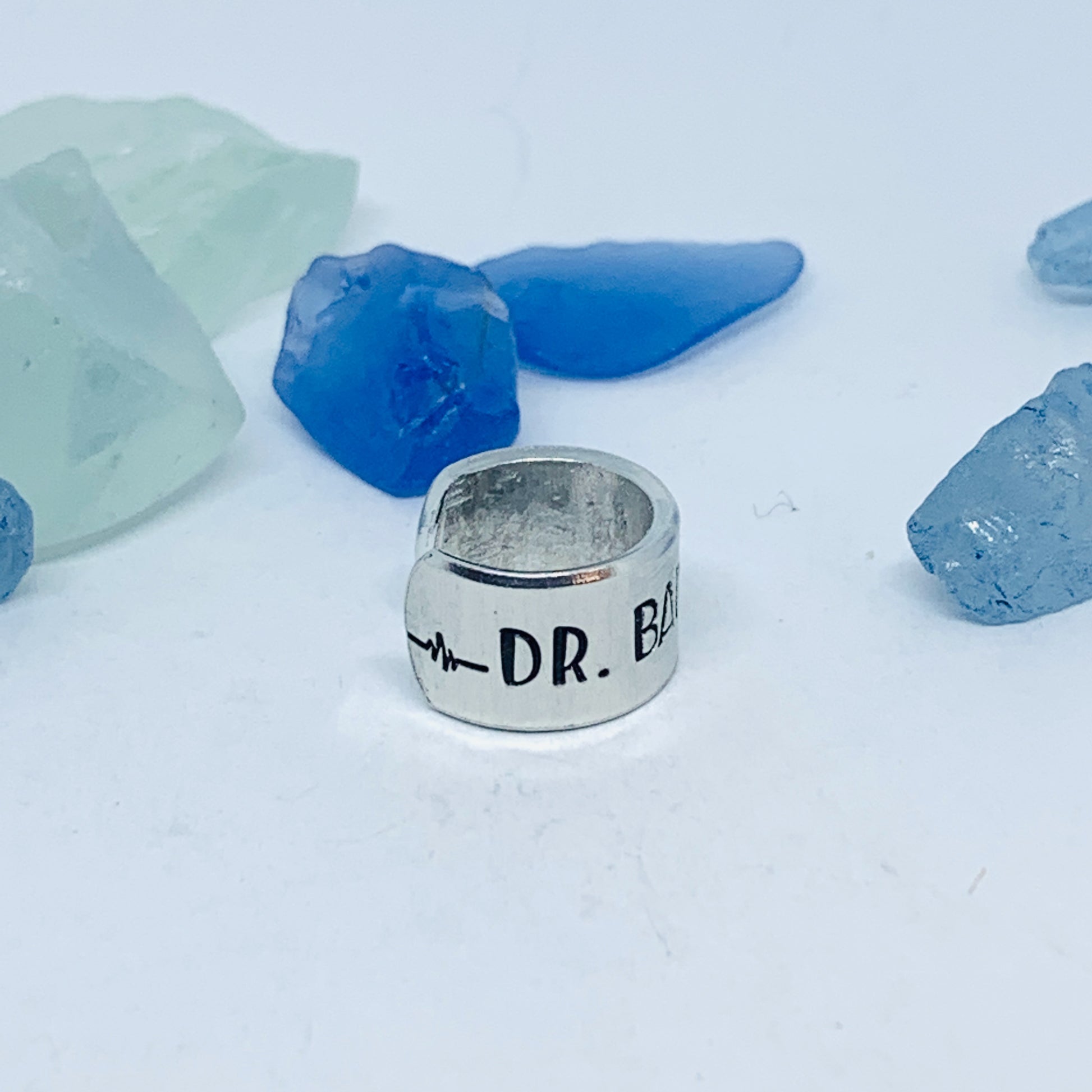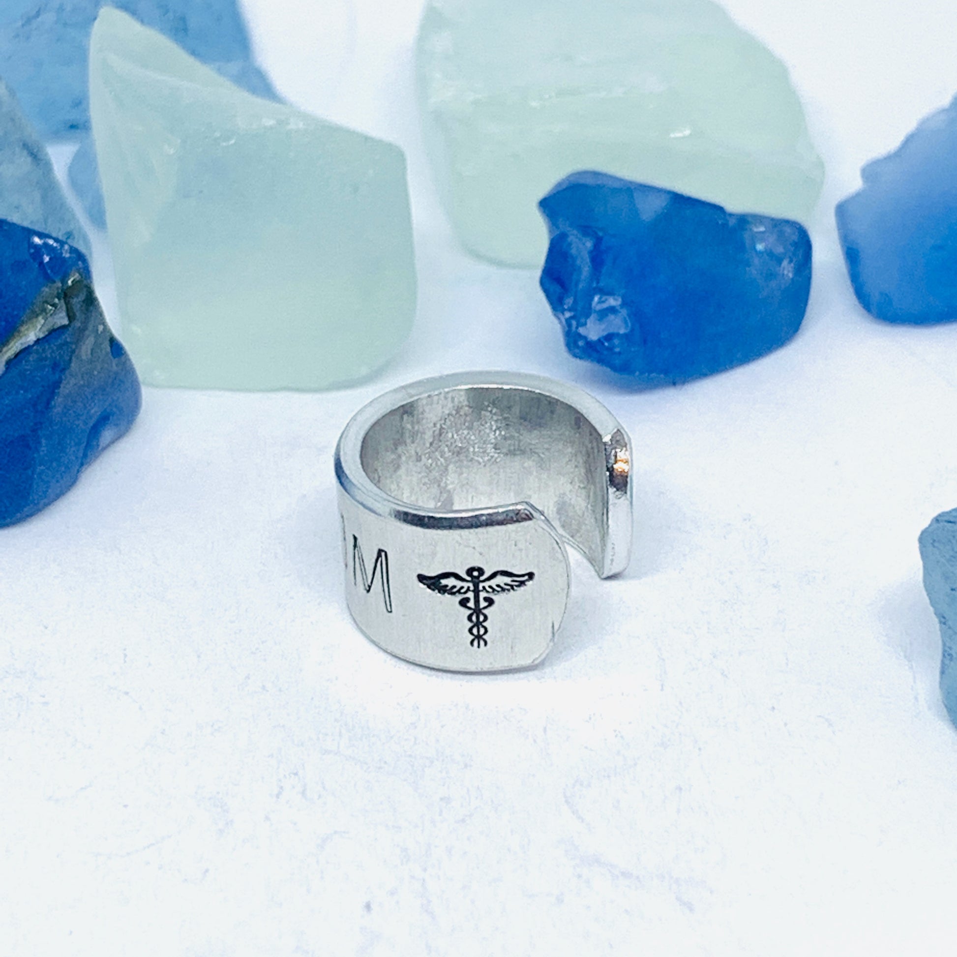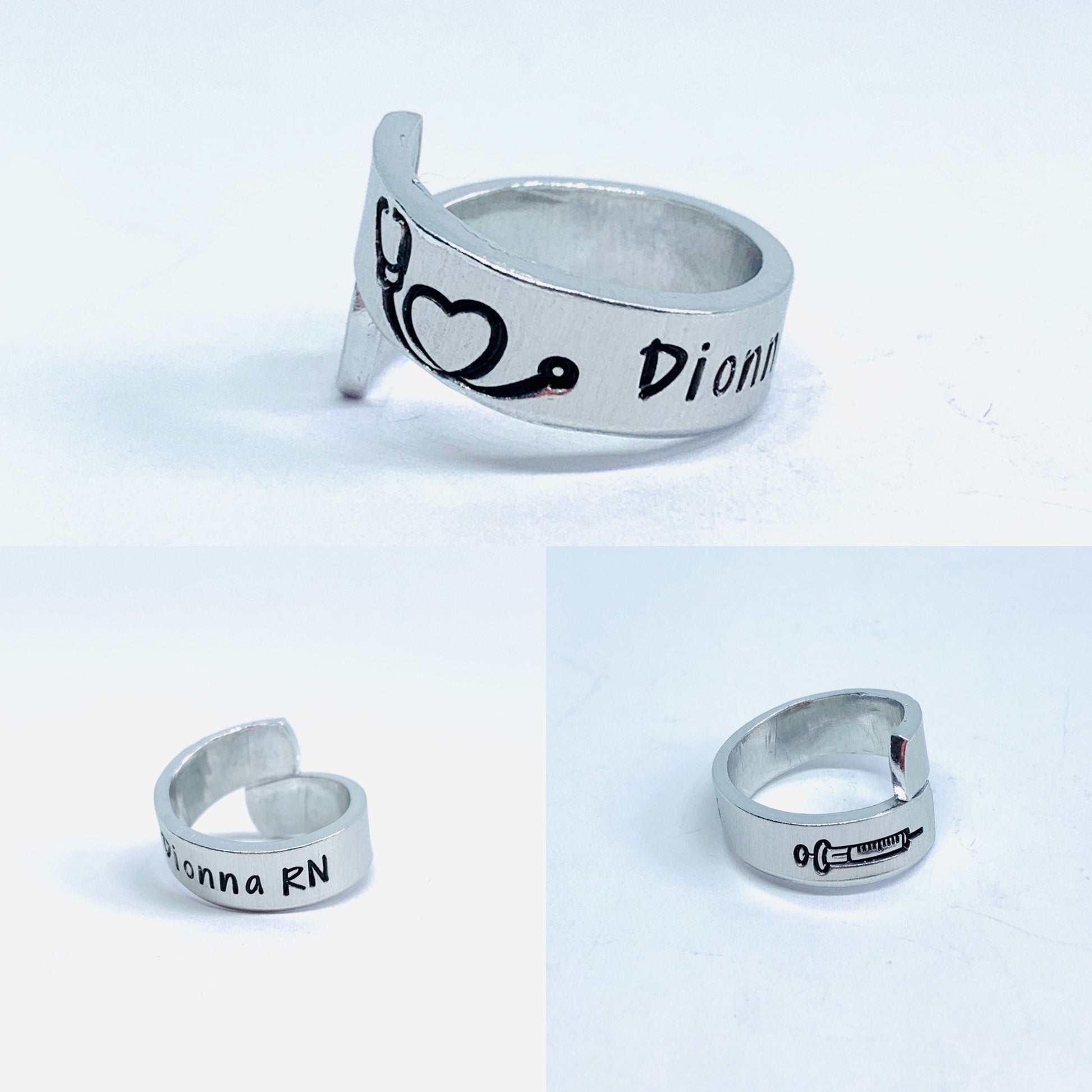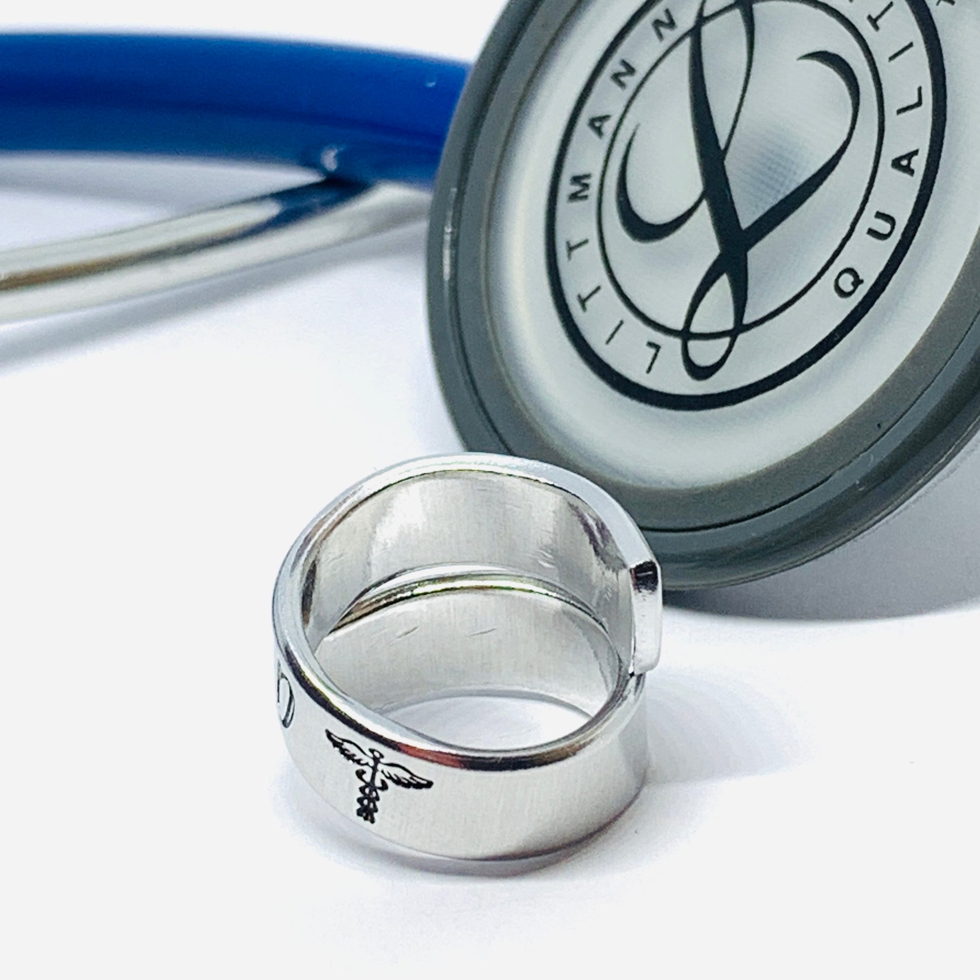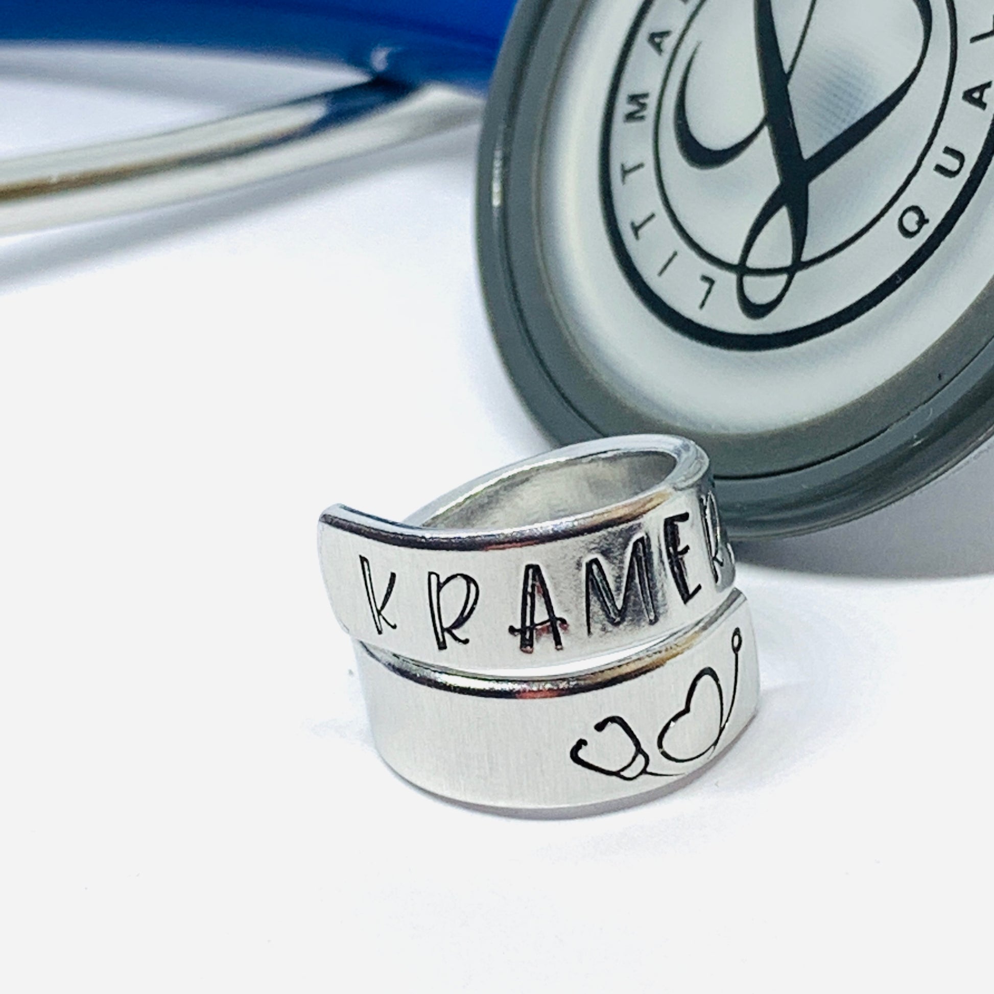 Hand Stamped Personalized Stethoscope ID Tag ID Ring - Nurses Doctors Veterinarians Techs | Littman Charm | Stethoscope Identification