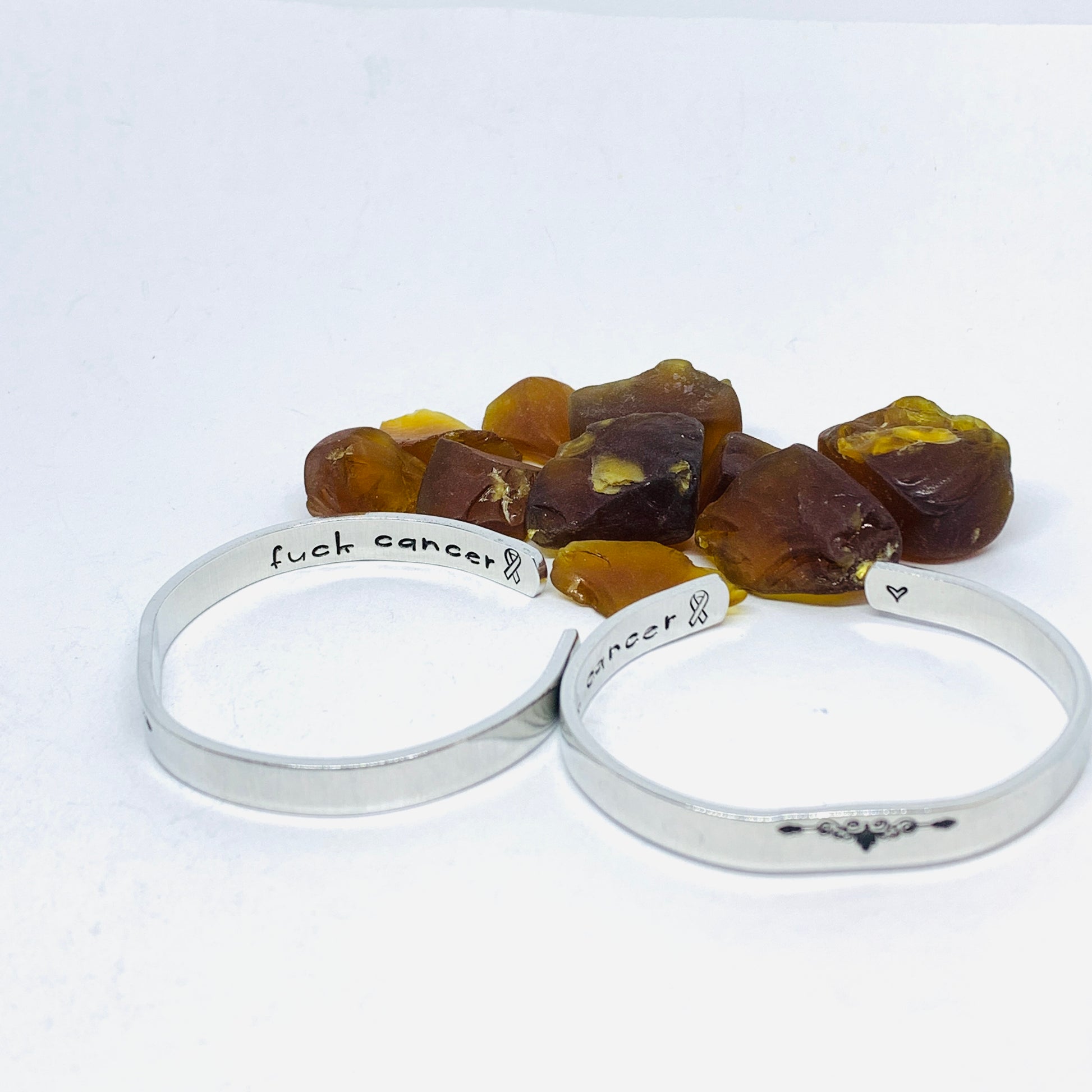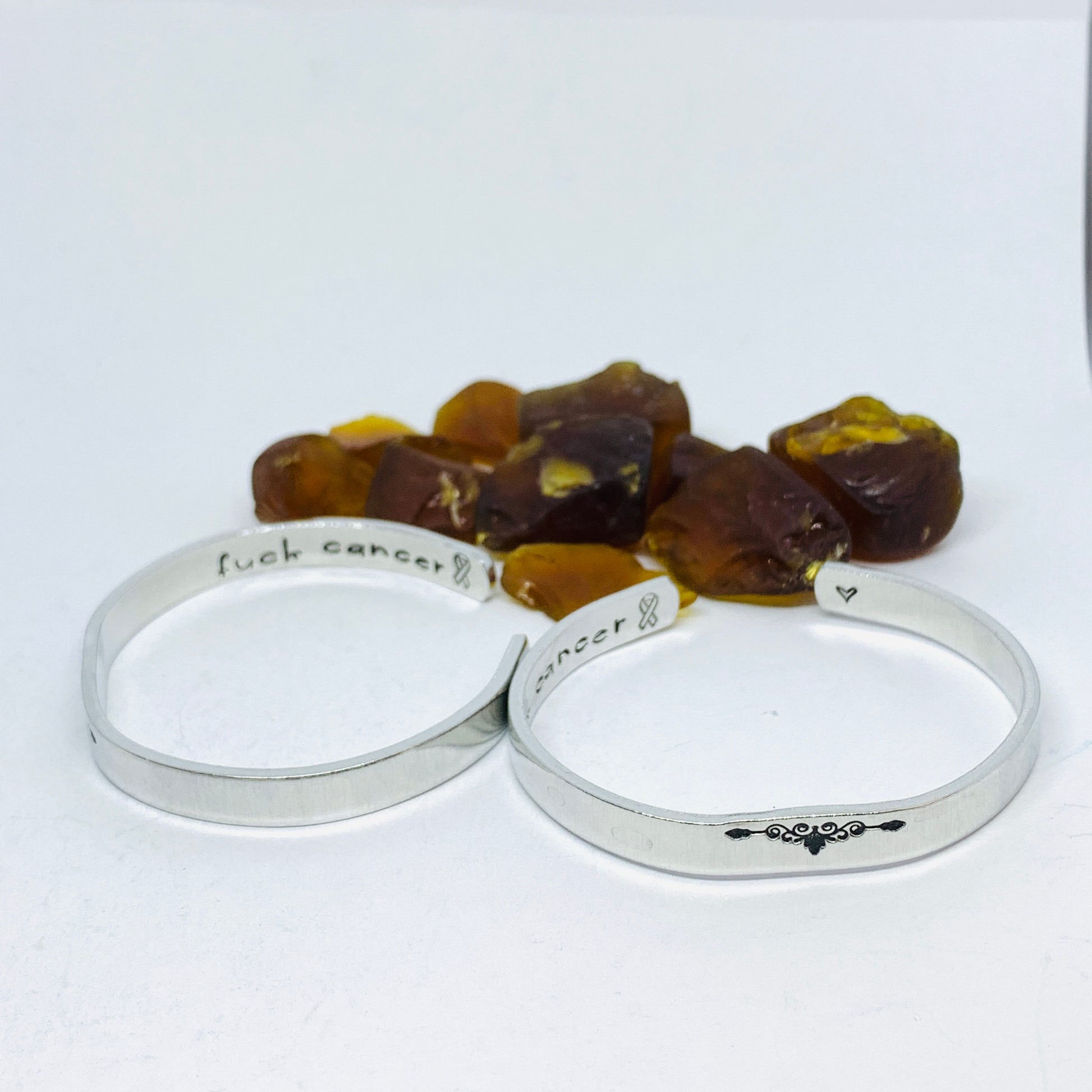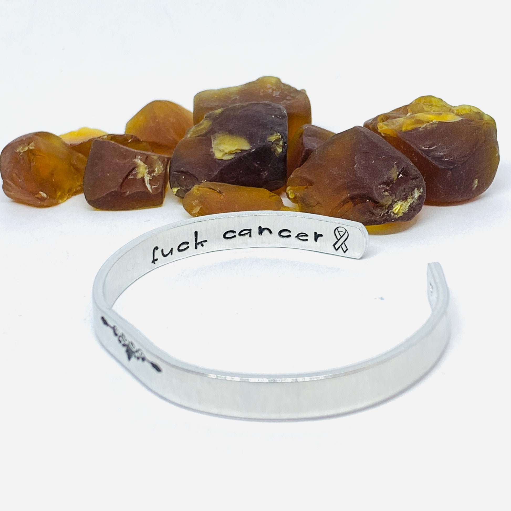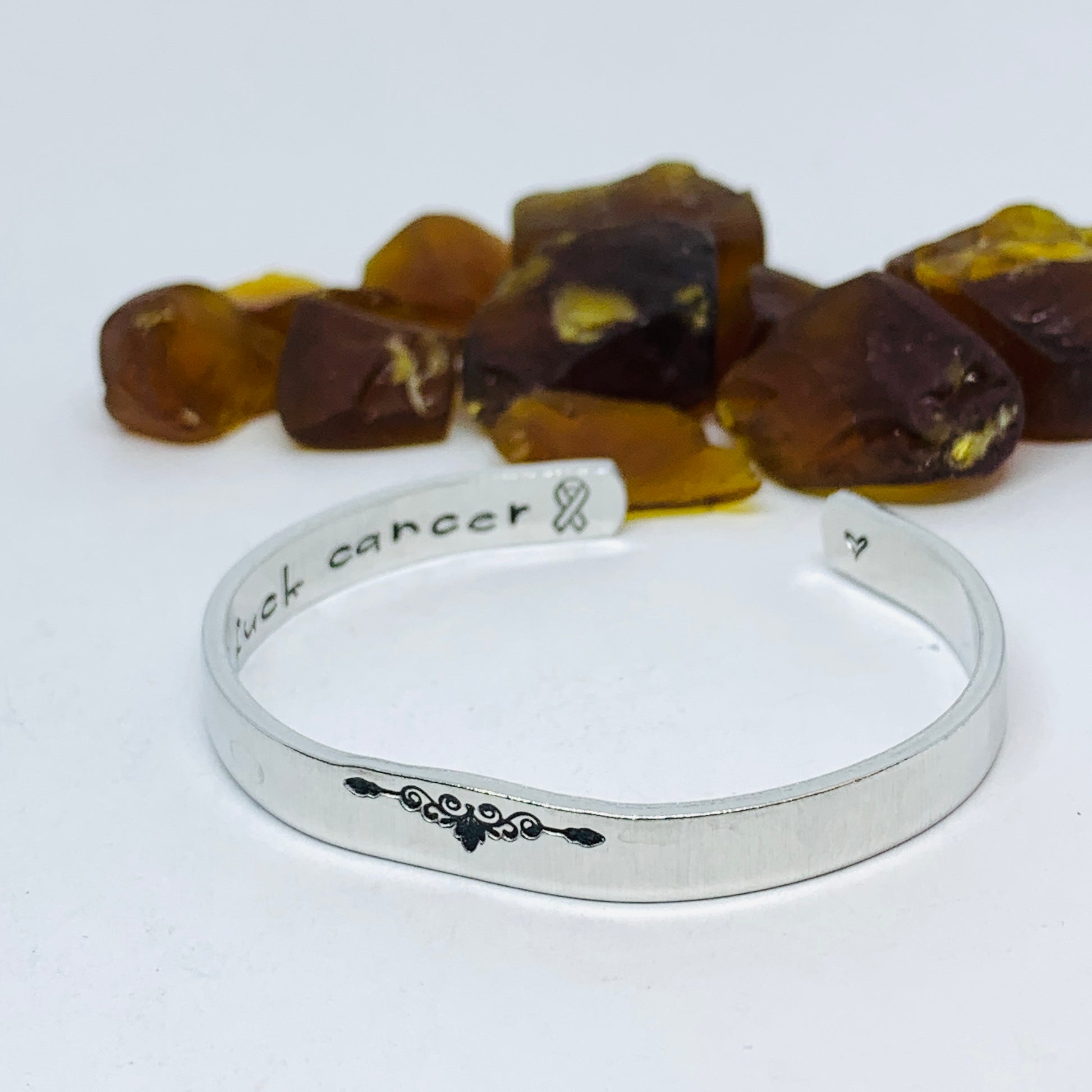 Hidden Message - Hand Stamped Cuff Bracelet | Fuck Cancer