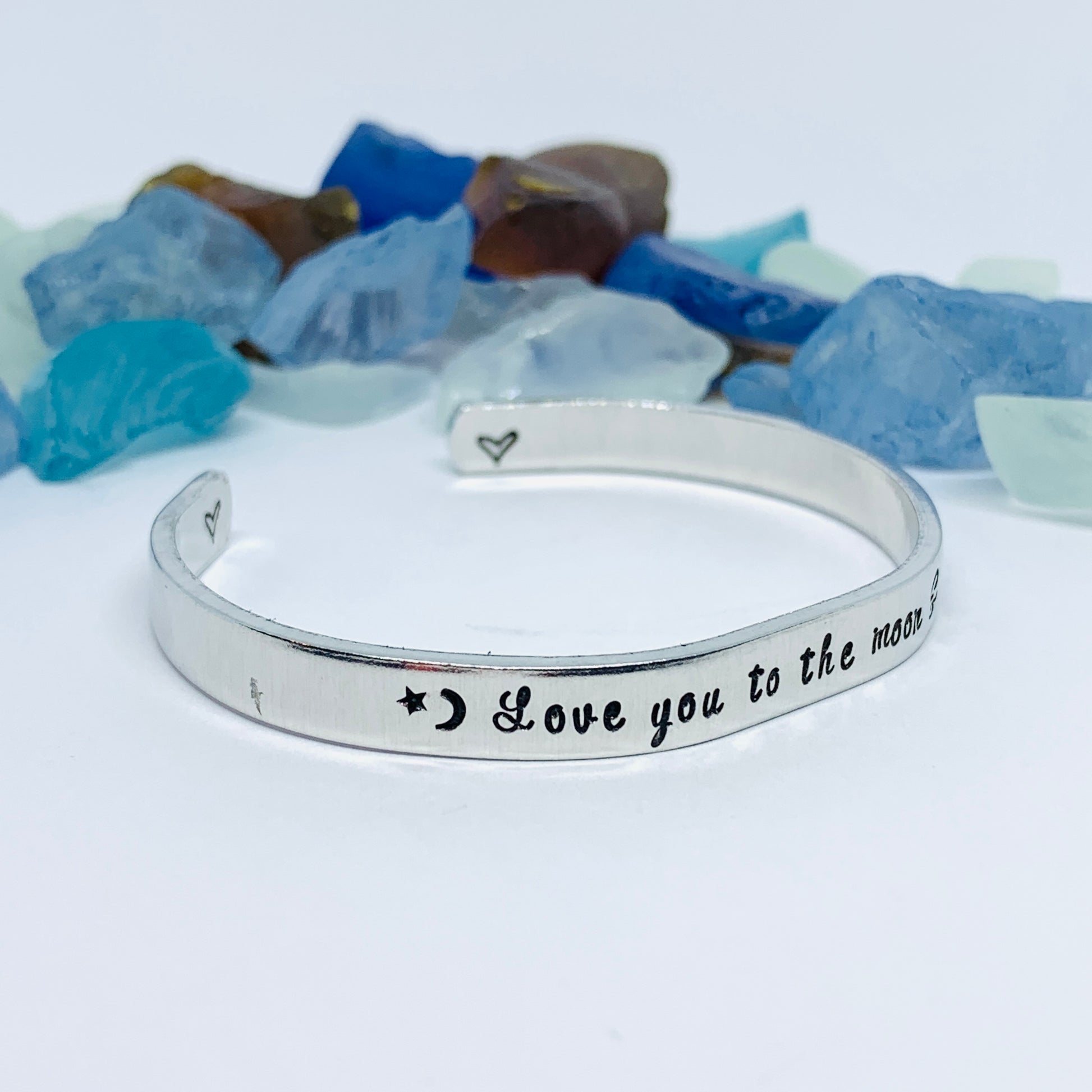 Love you to the moon & back - Hand Stamped Metal Cuff Bracelet | Love Cuff | Gift for Her | Love Script Bracelet | Quote Bracelet