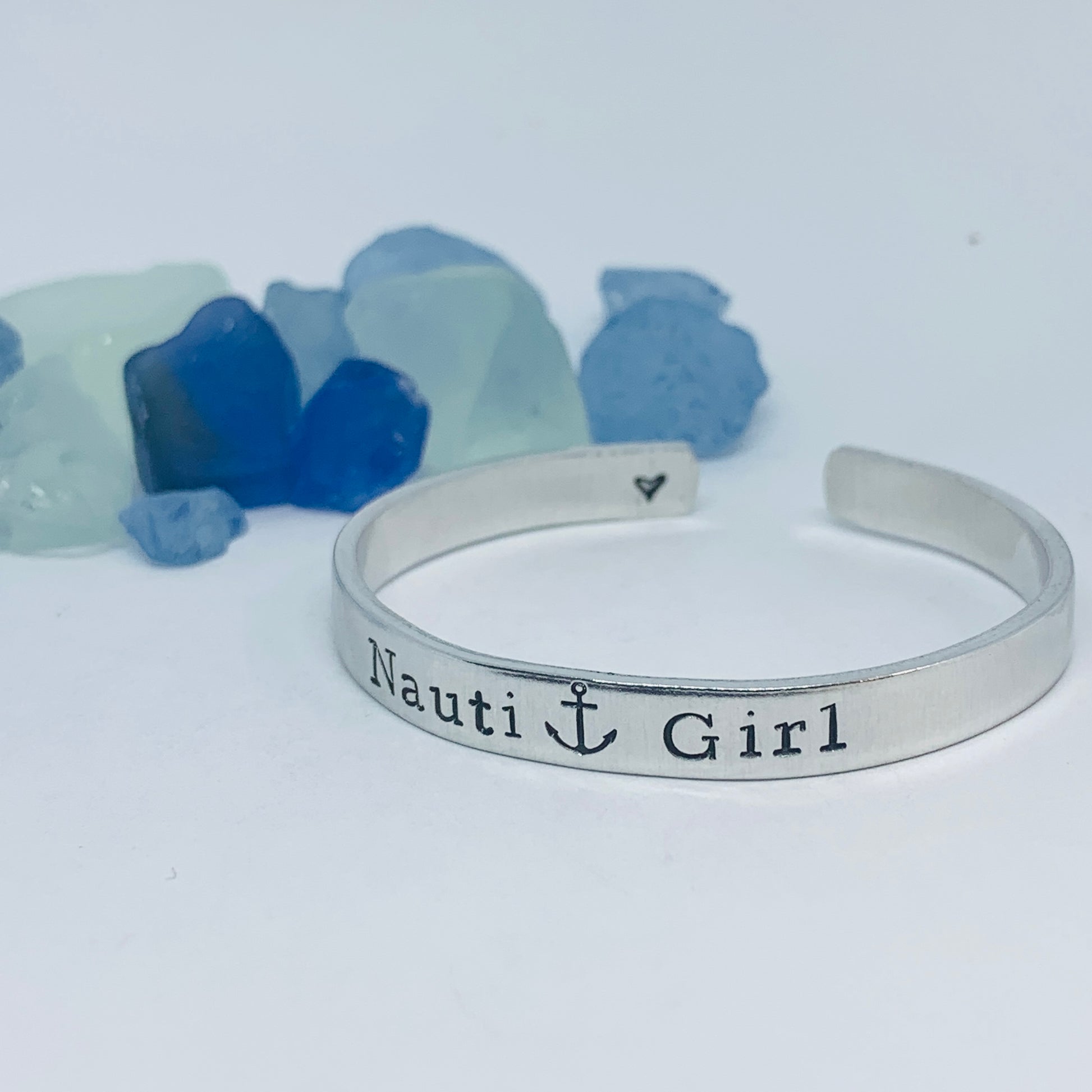 Nauti Girl Hand Stamped Metal Cuff Bracelet | Nautical Jewelry | Anchor