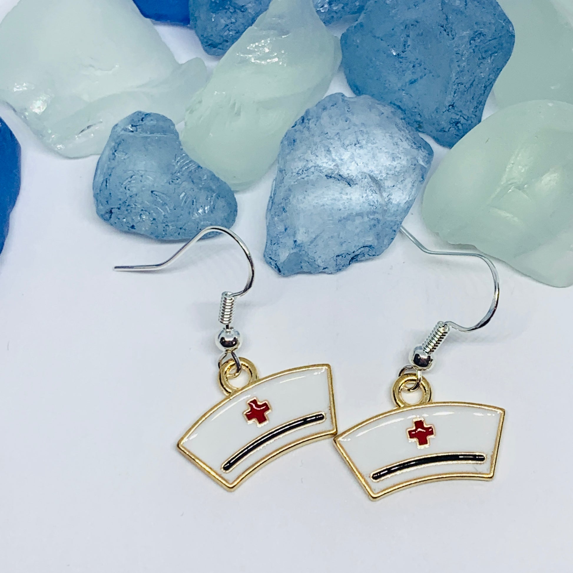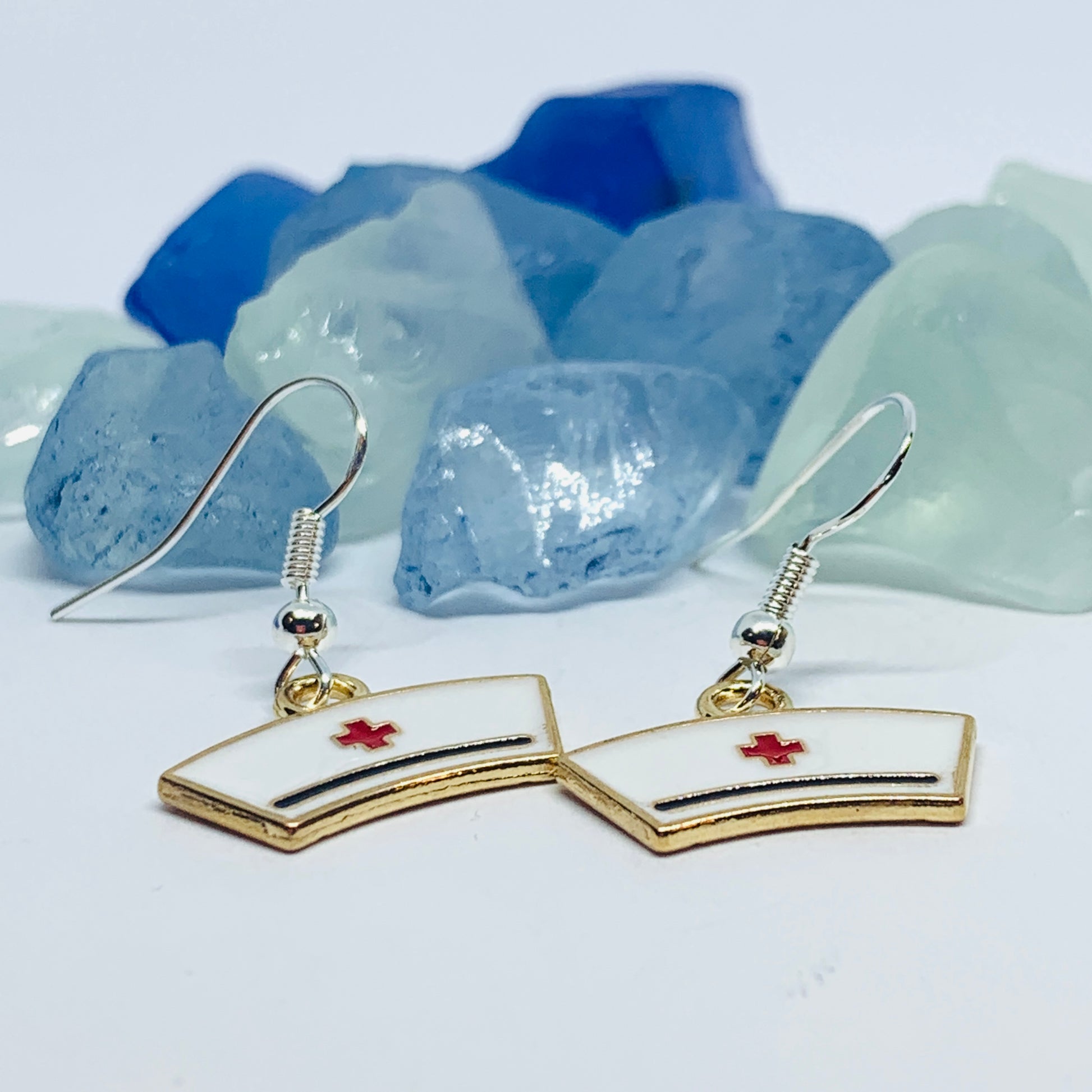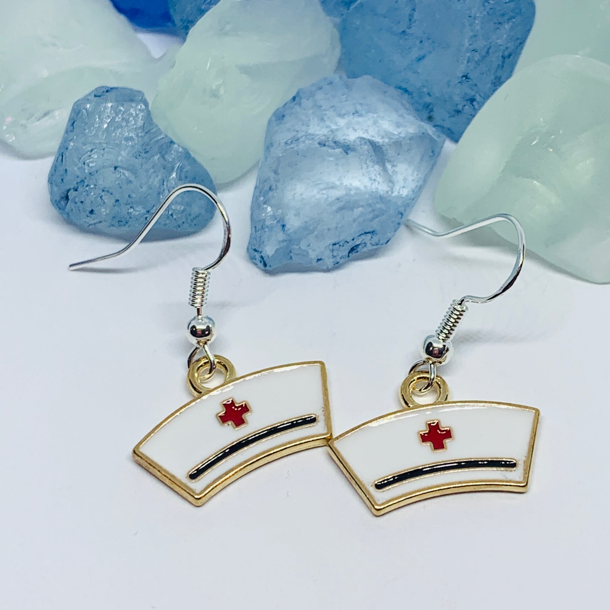 Nurse Cap Enamel Earrings with Silver Wires and Backs | Healthcare Hero Earrings | Gifts for Her | Nurse Earrings