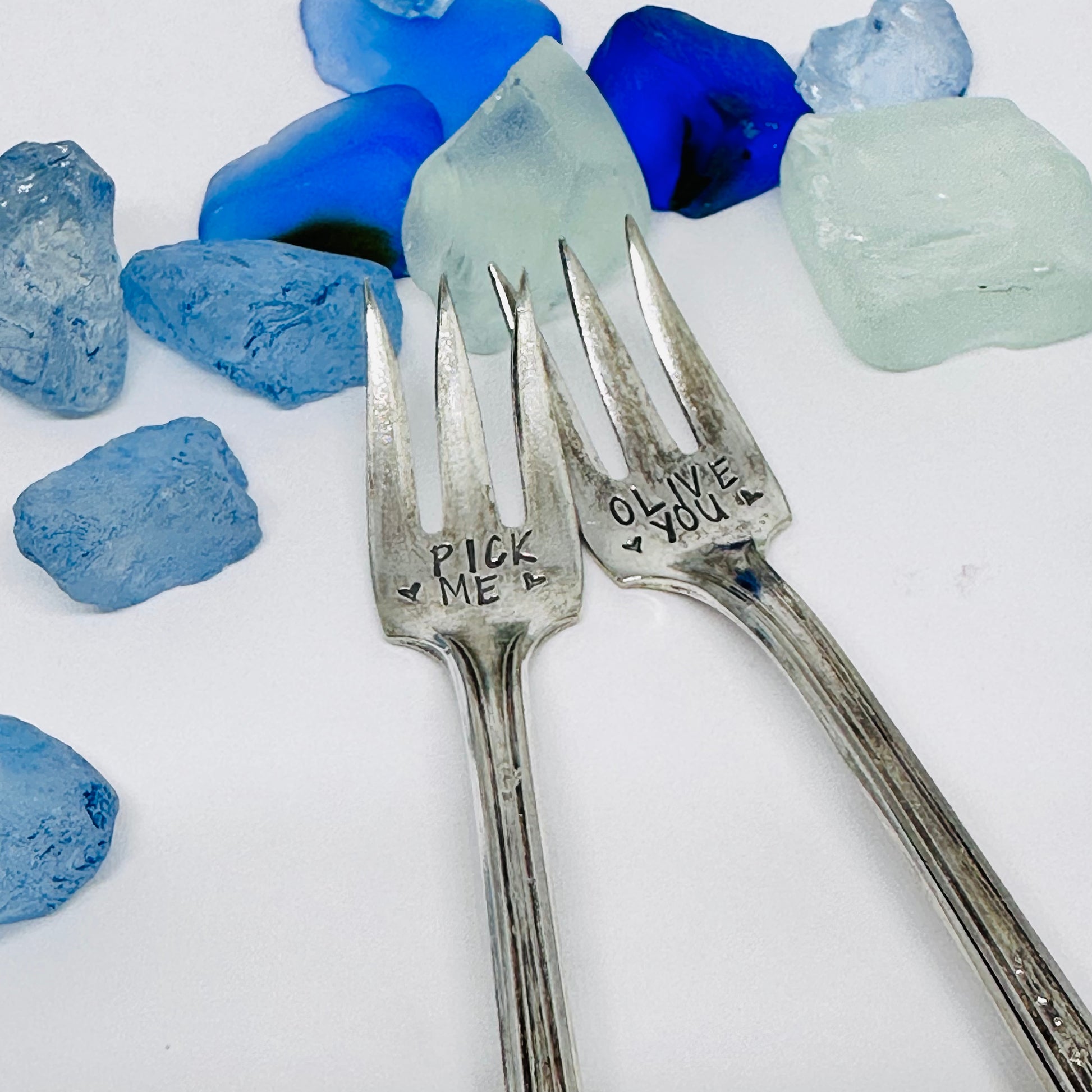 Olive Pickle Vintage Hand Stamped Silverware Fork | Olive You | Pick Me | I Pick You | Antique