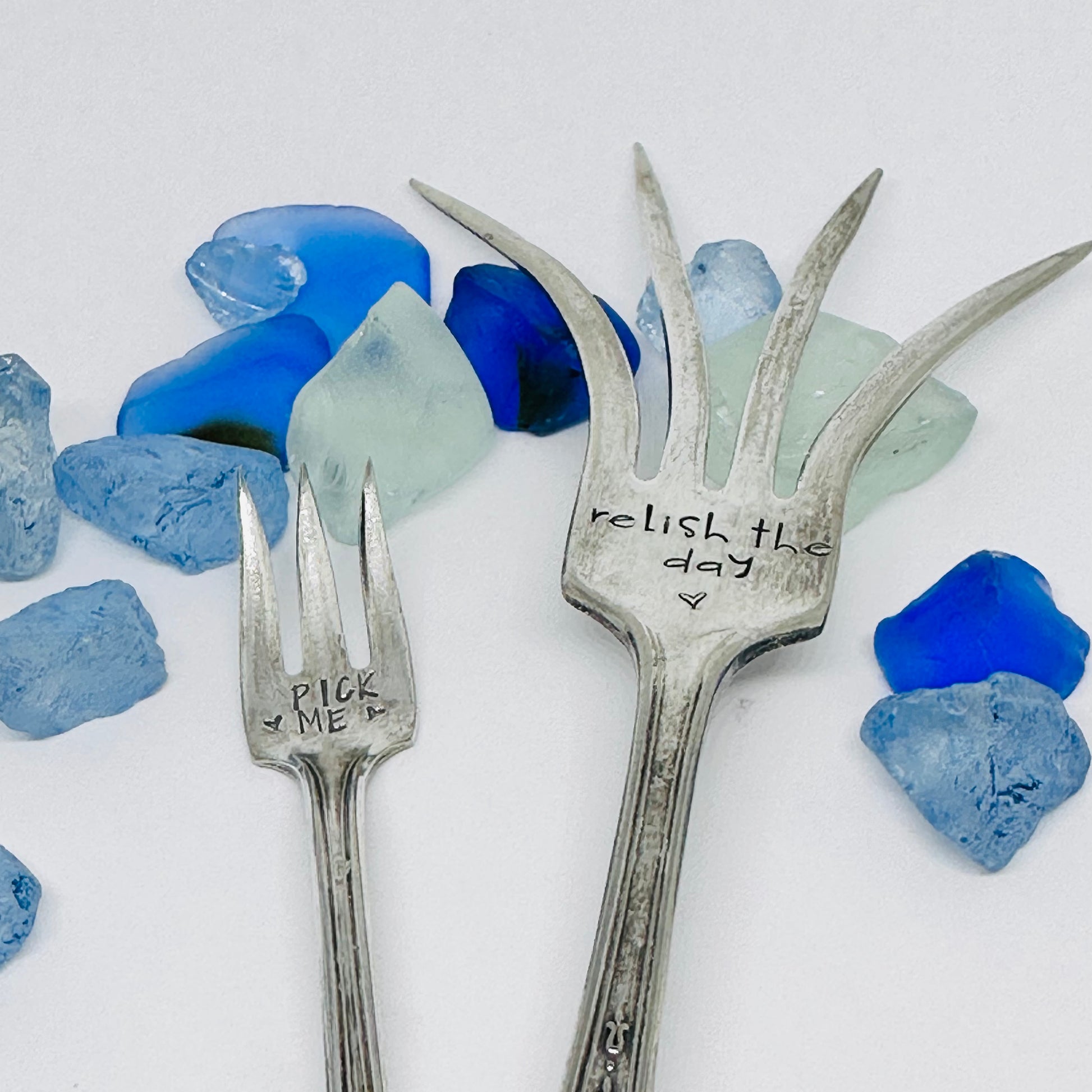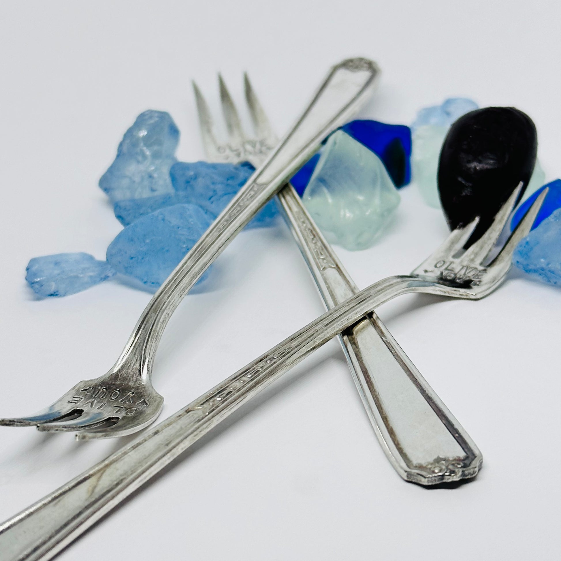 This listing is for one vintage silverware olive/pickle fork stamped with your choice of design as indicated. No two forks will be the same - let my inventory and creativity choose the perfect one!