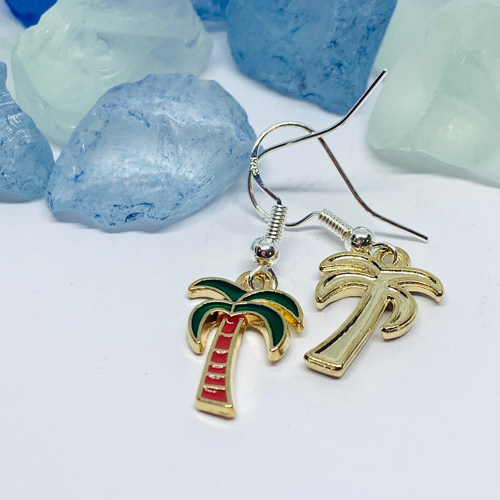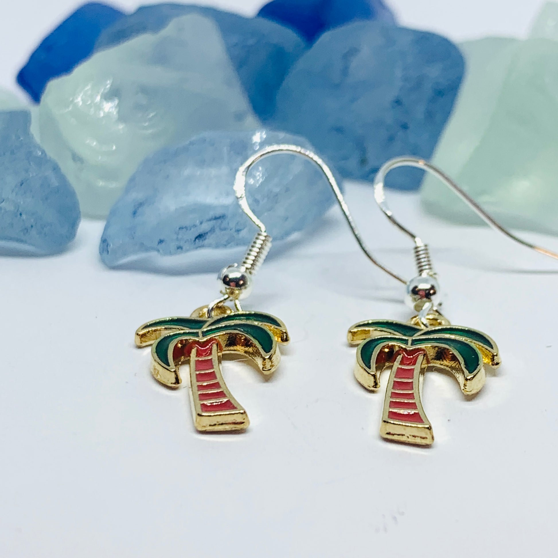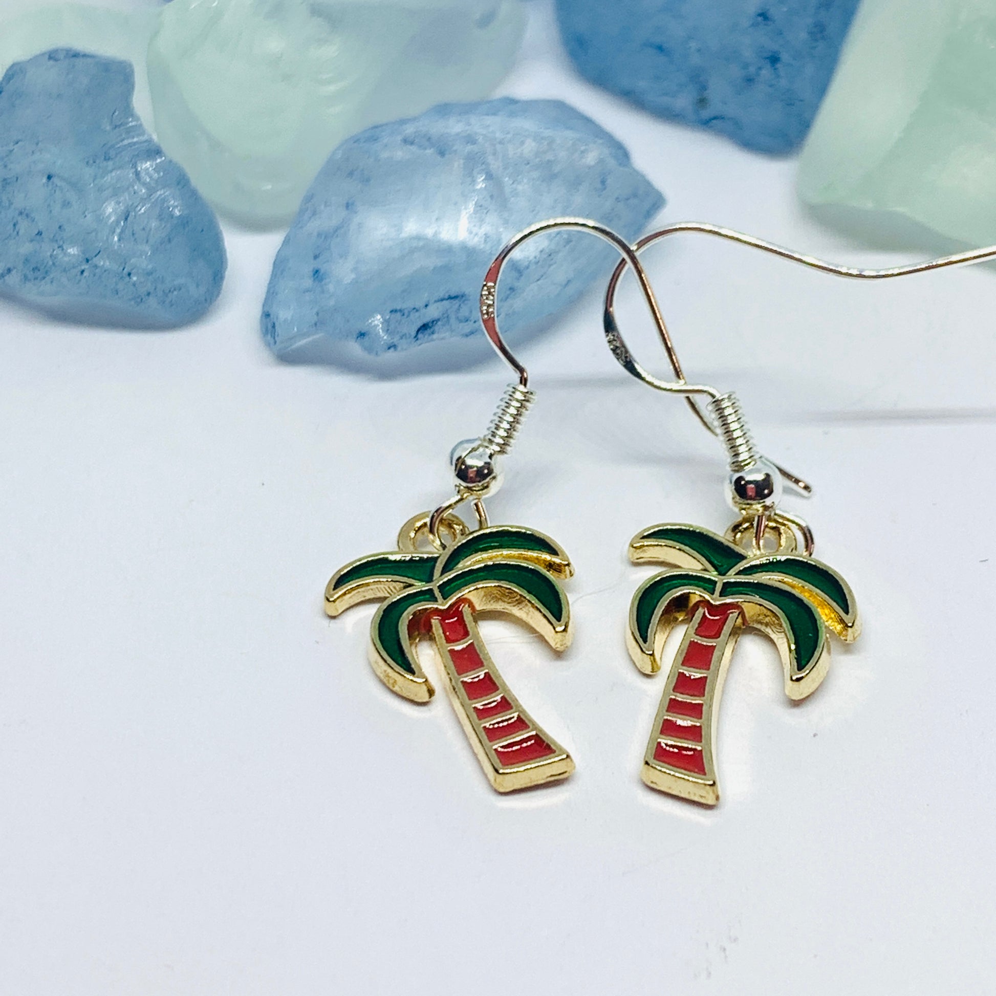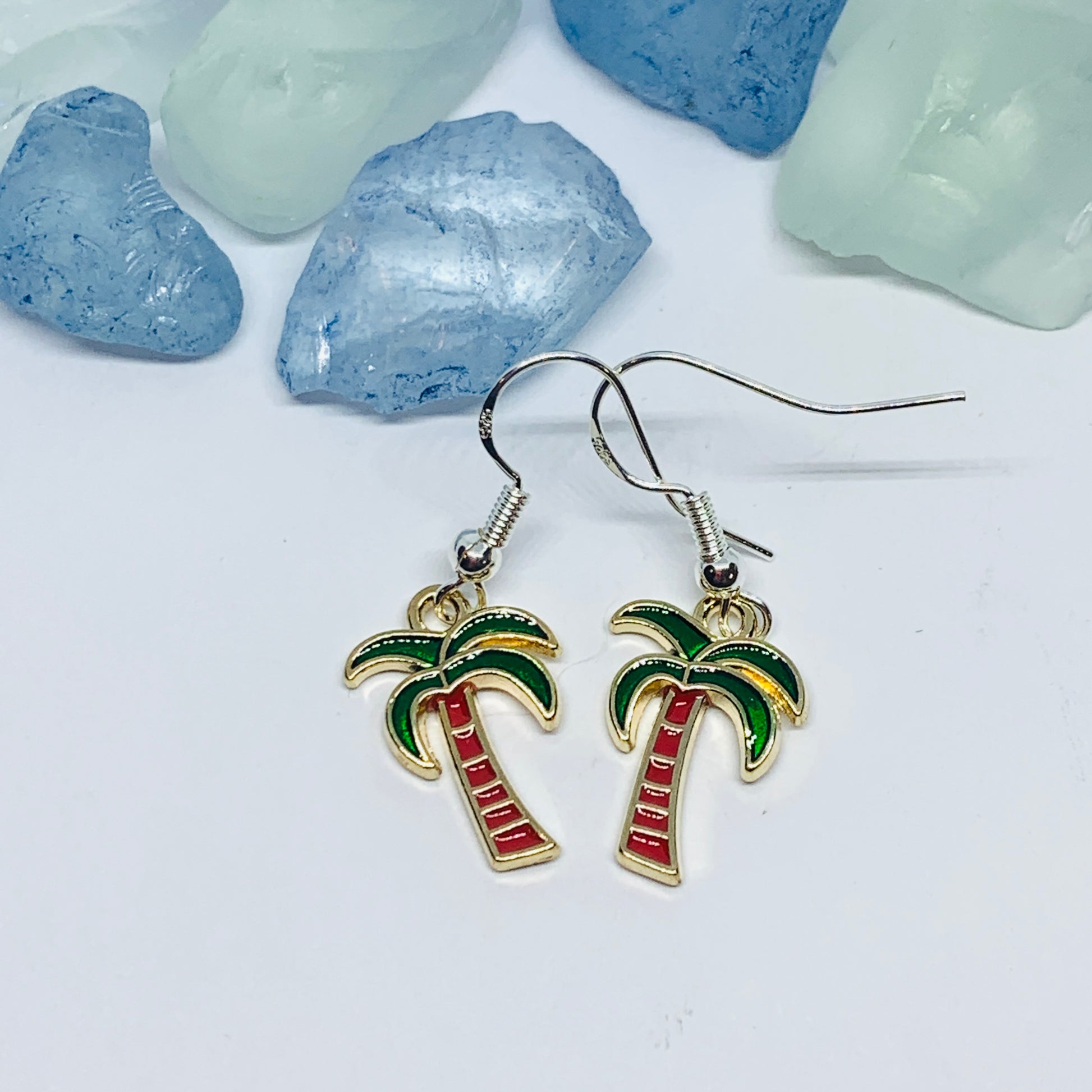 Palm Trees Enamel Earrings with Silver Wires and Backs | Tropical Earrings | Gifts for Her | Tree Earrings