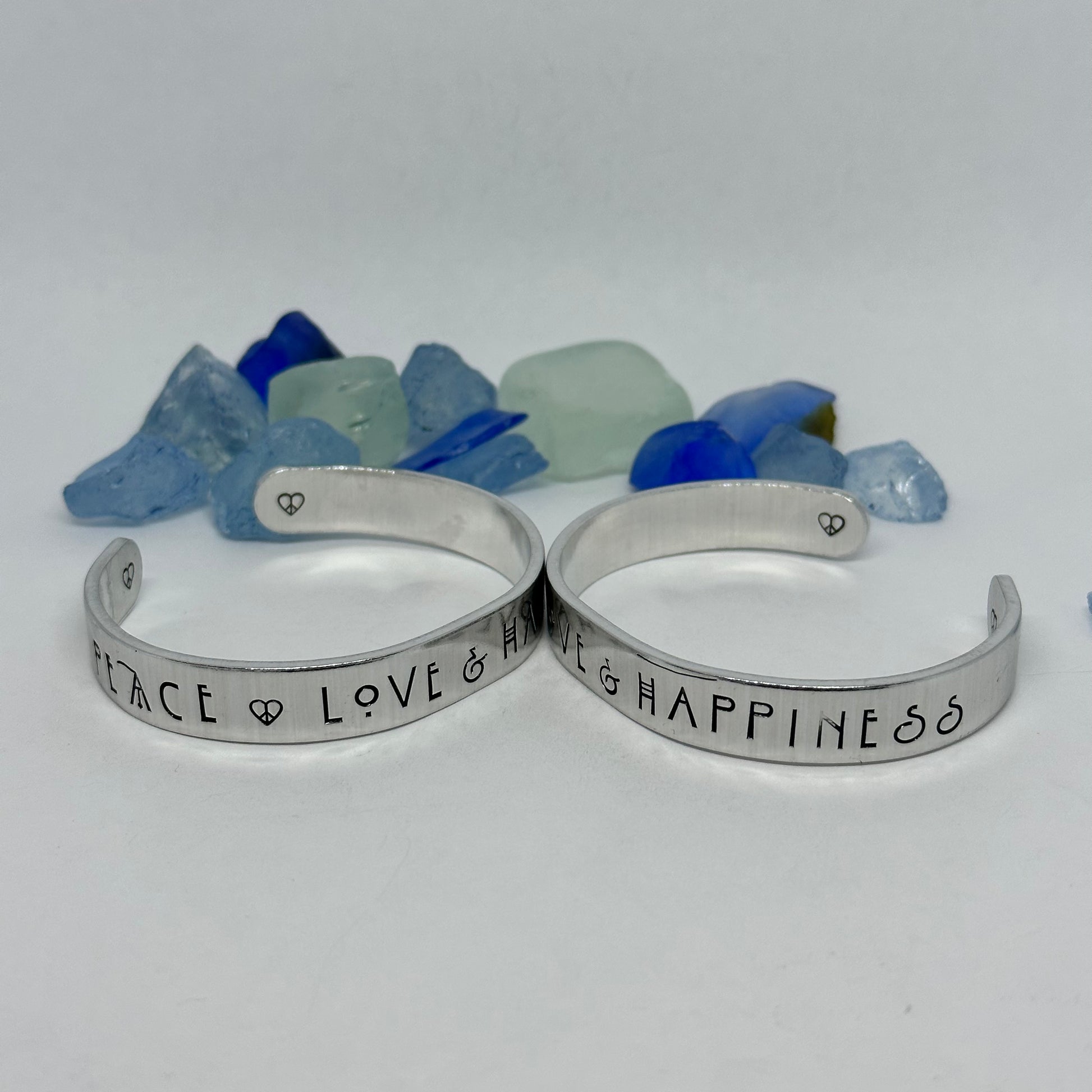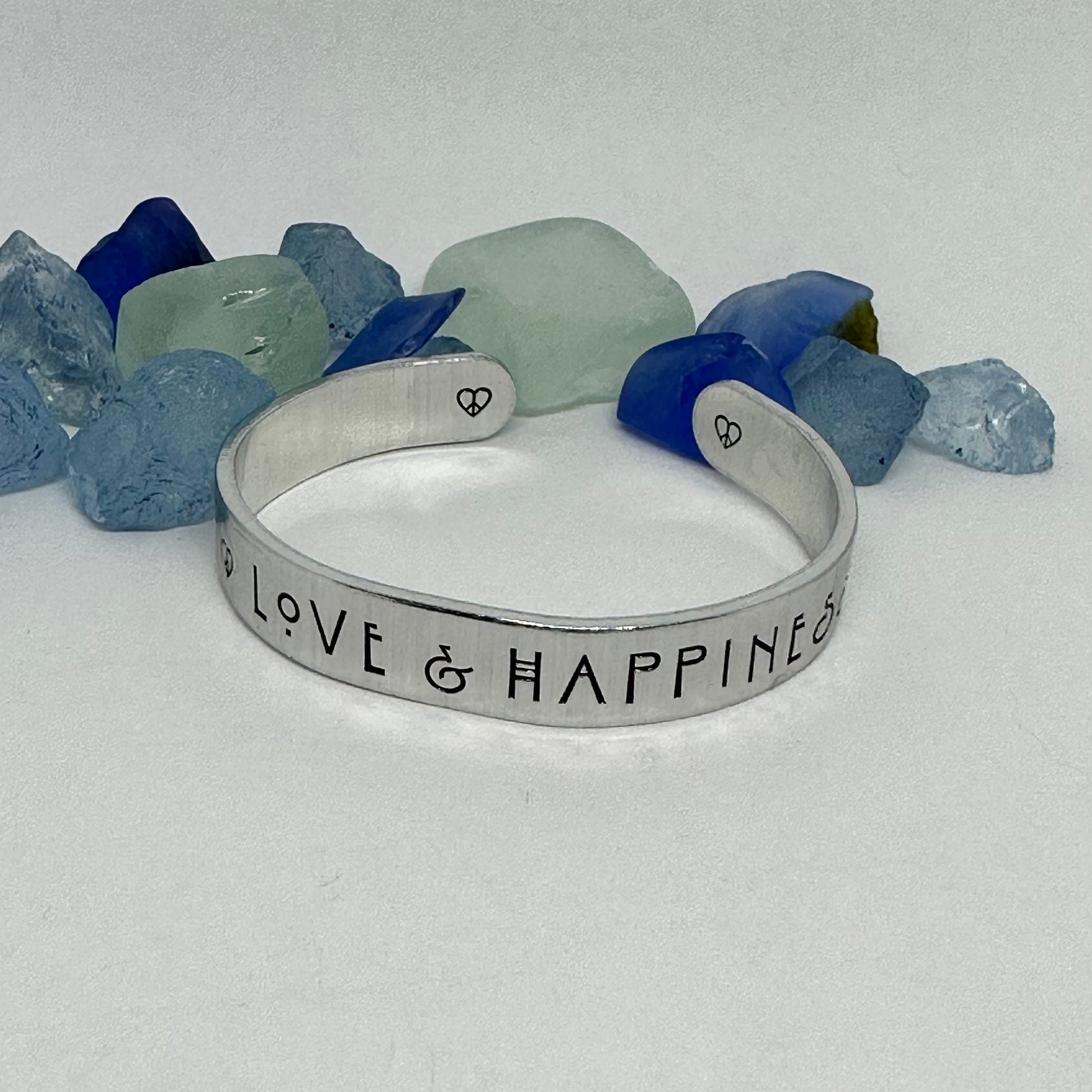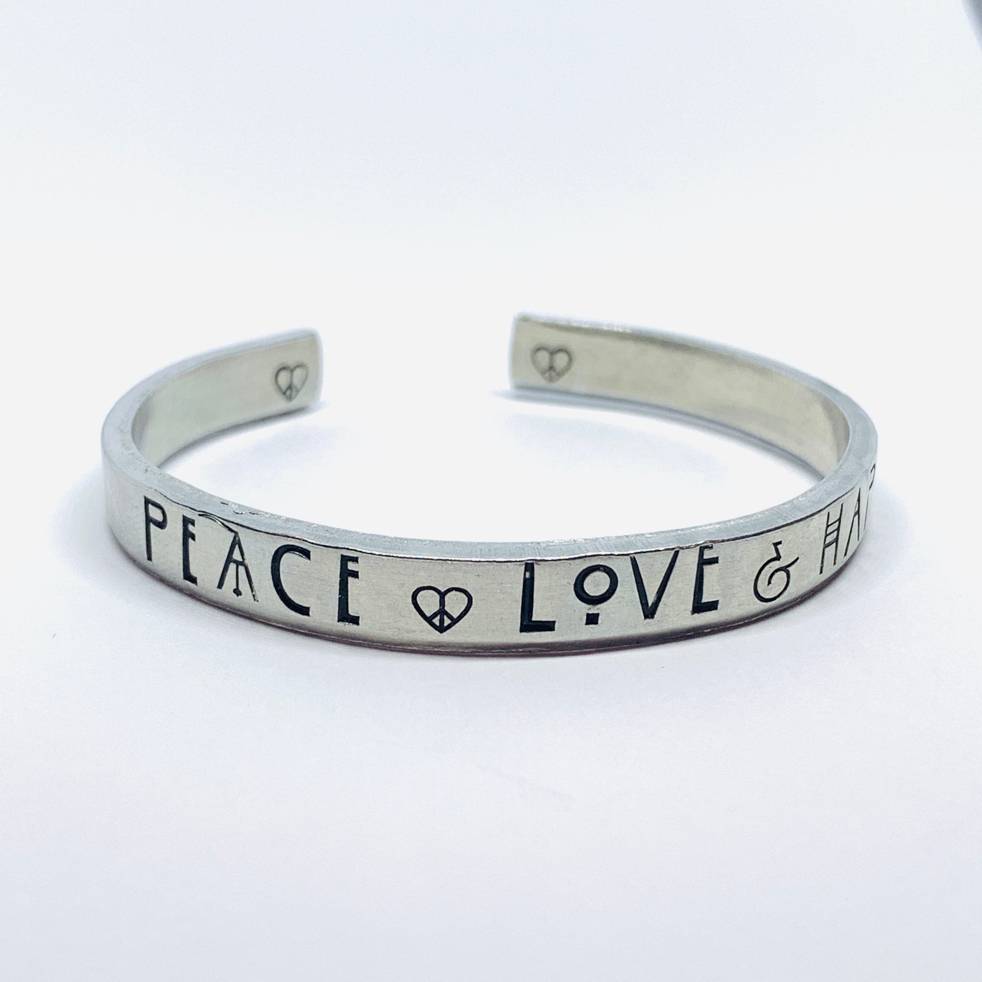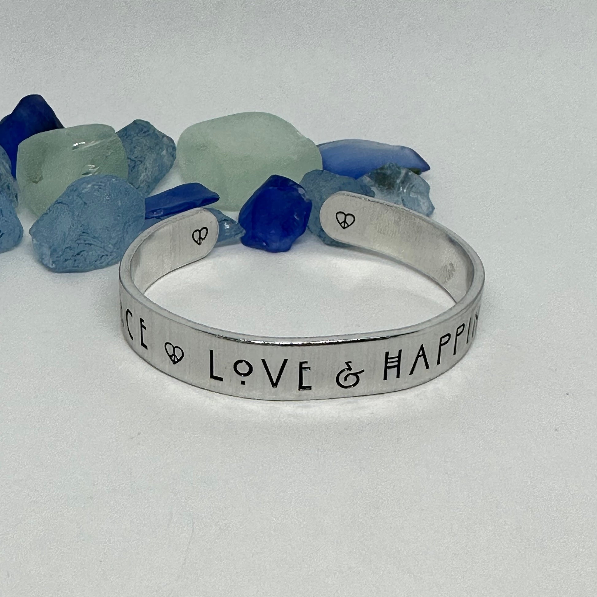 Peace Love & Happiness - Hand Stamped Cuff Bracelet