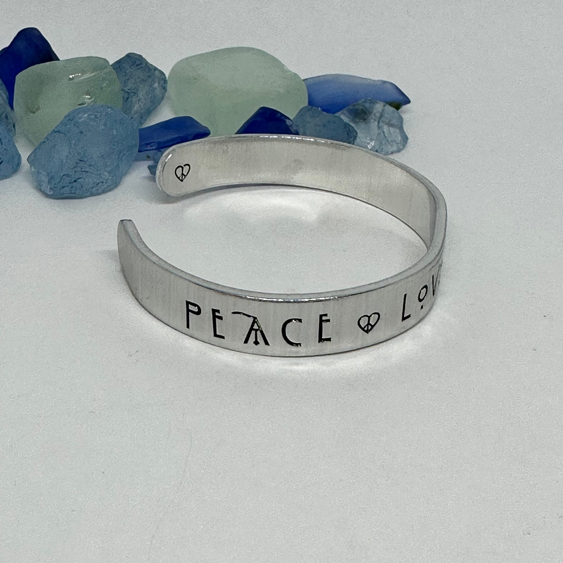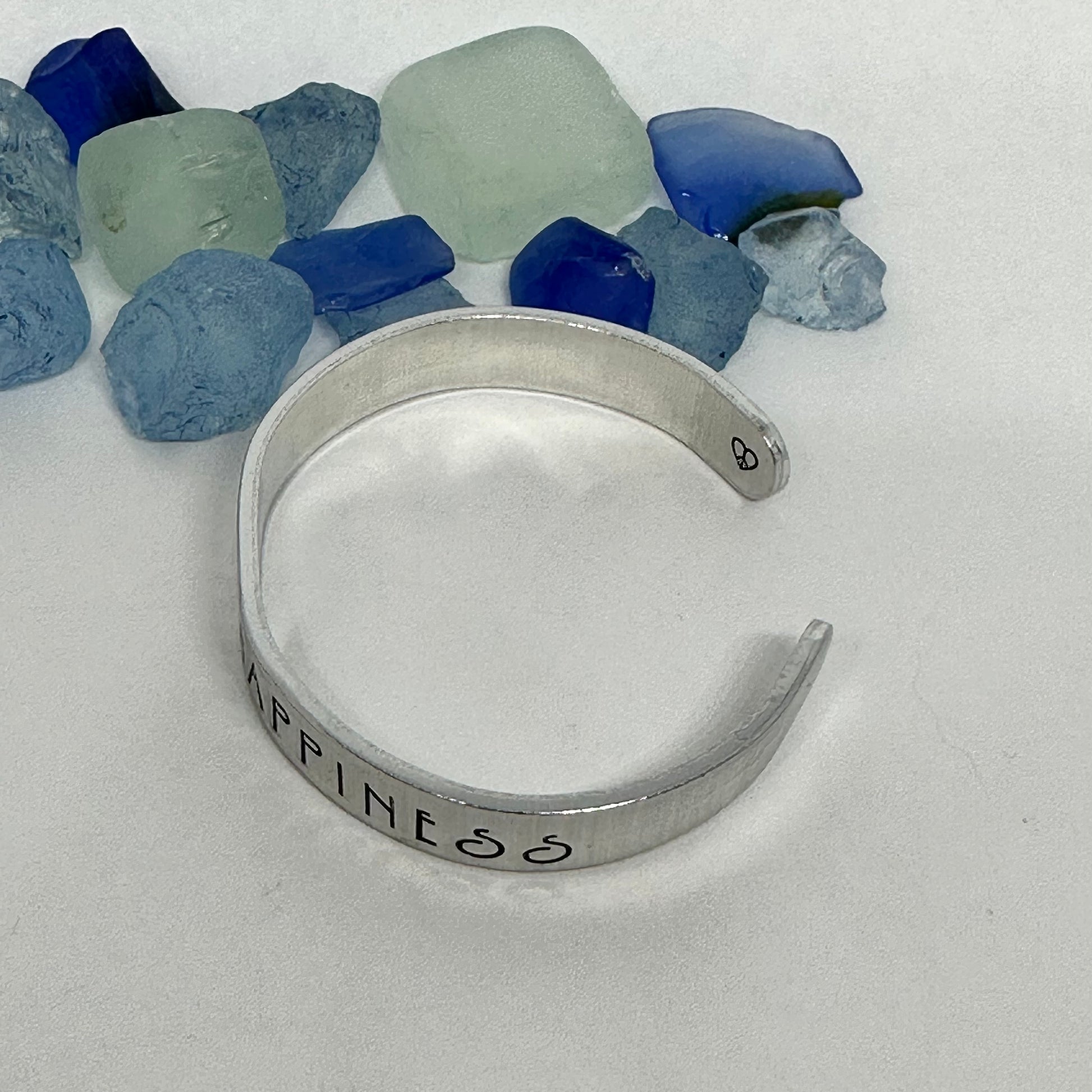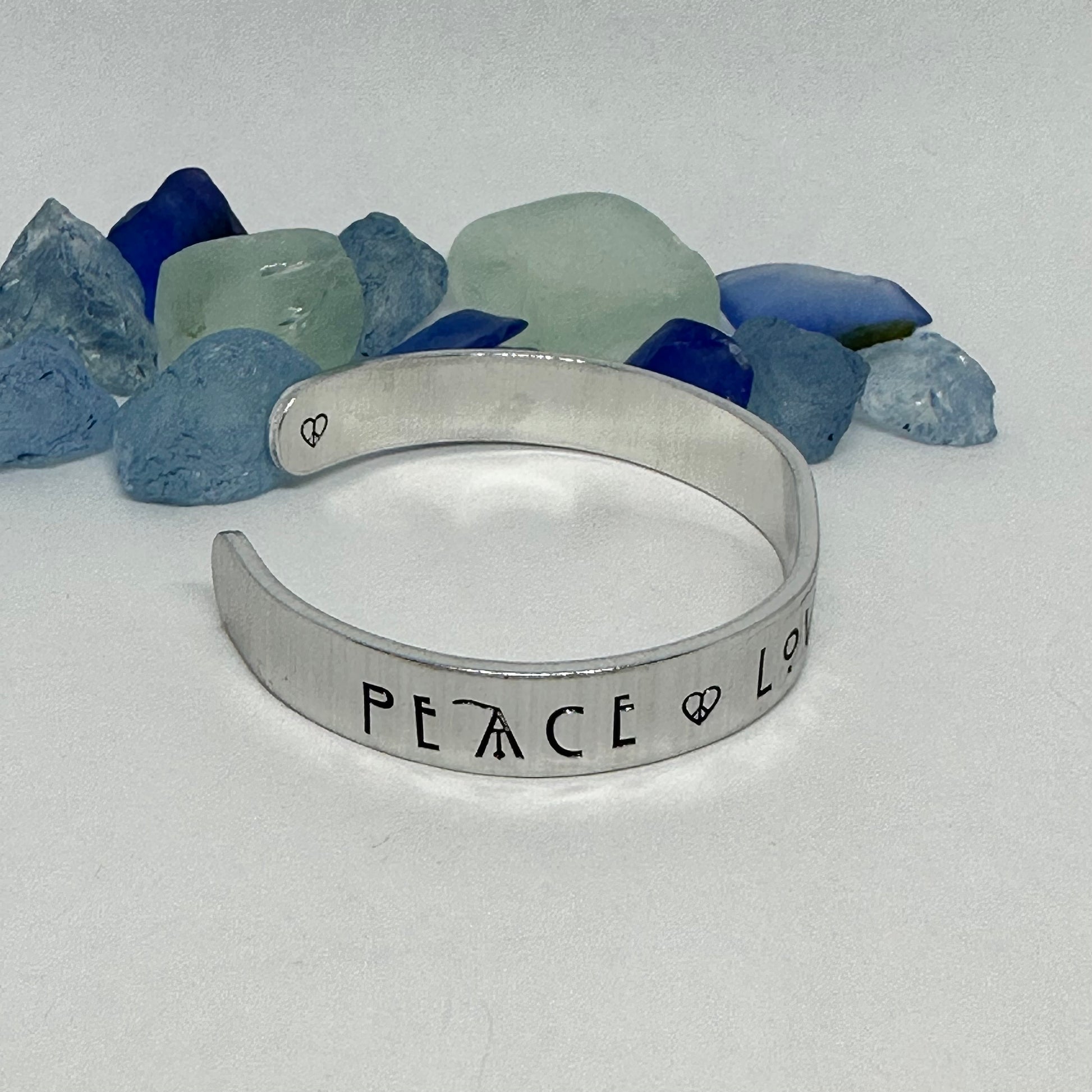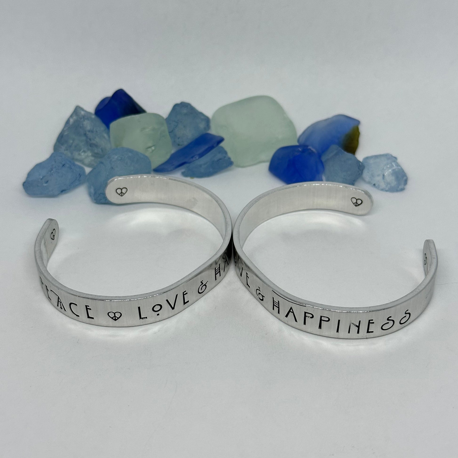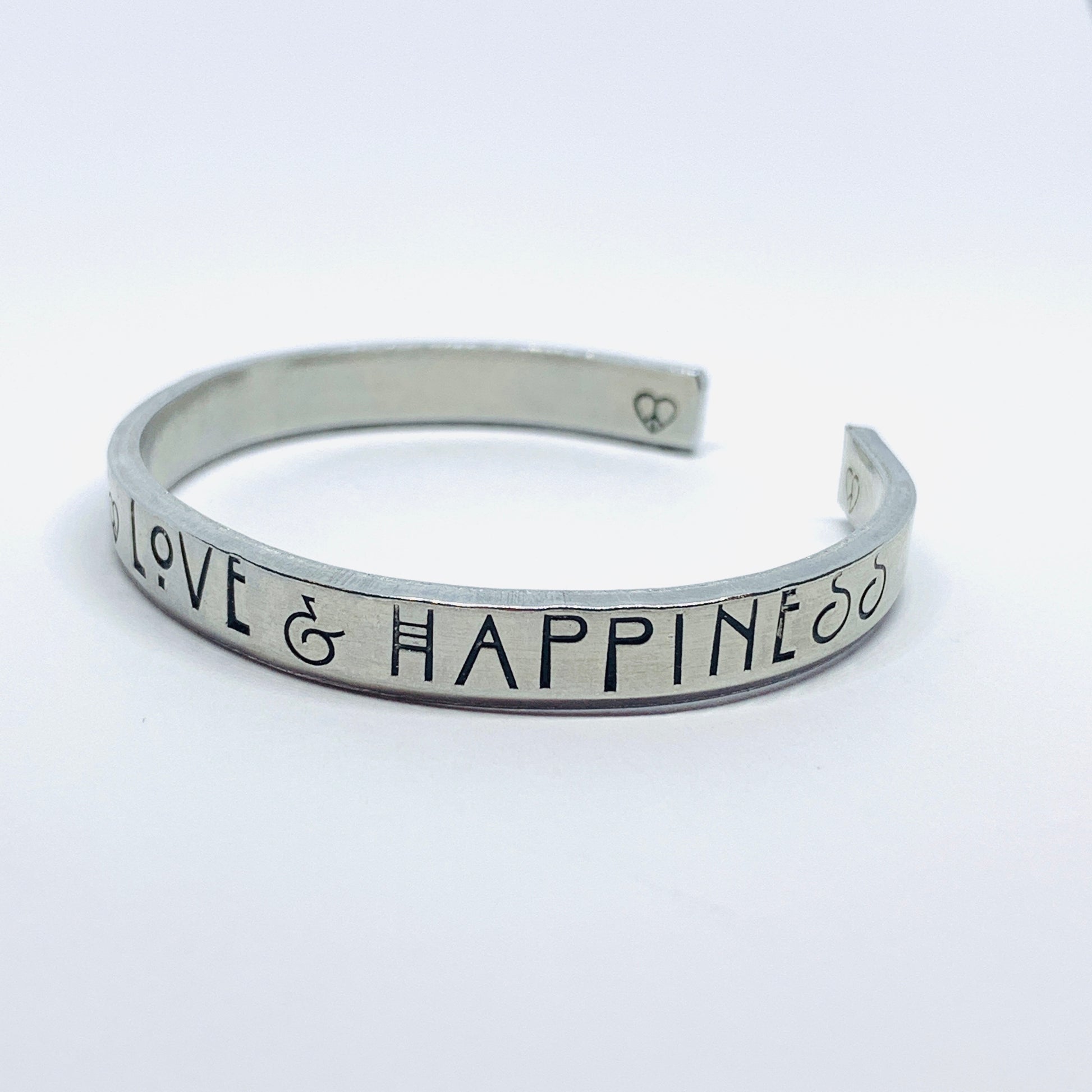 Peace Love & Happiness - Hand Stamped Cuff Bracelet
