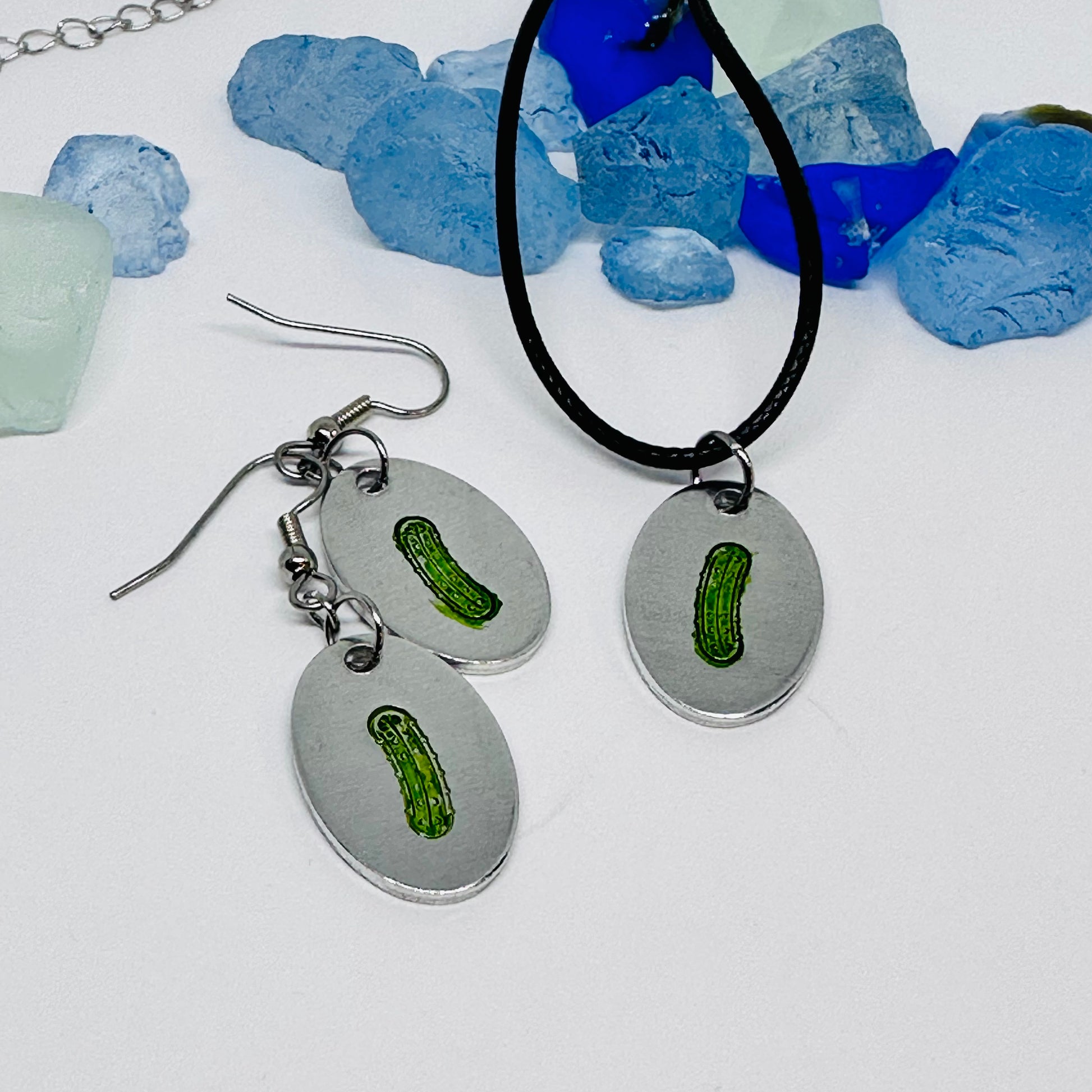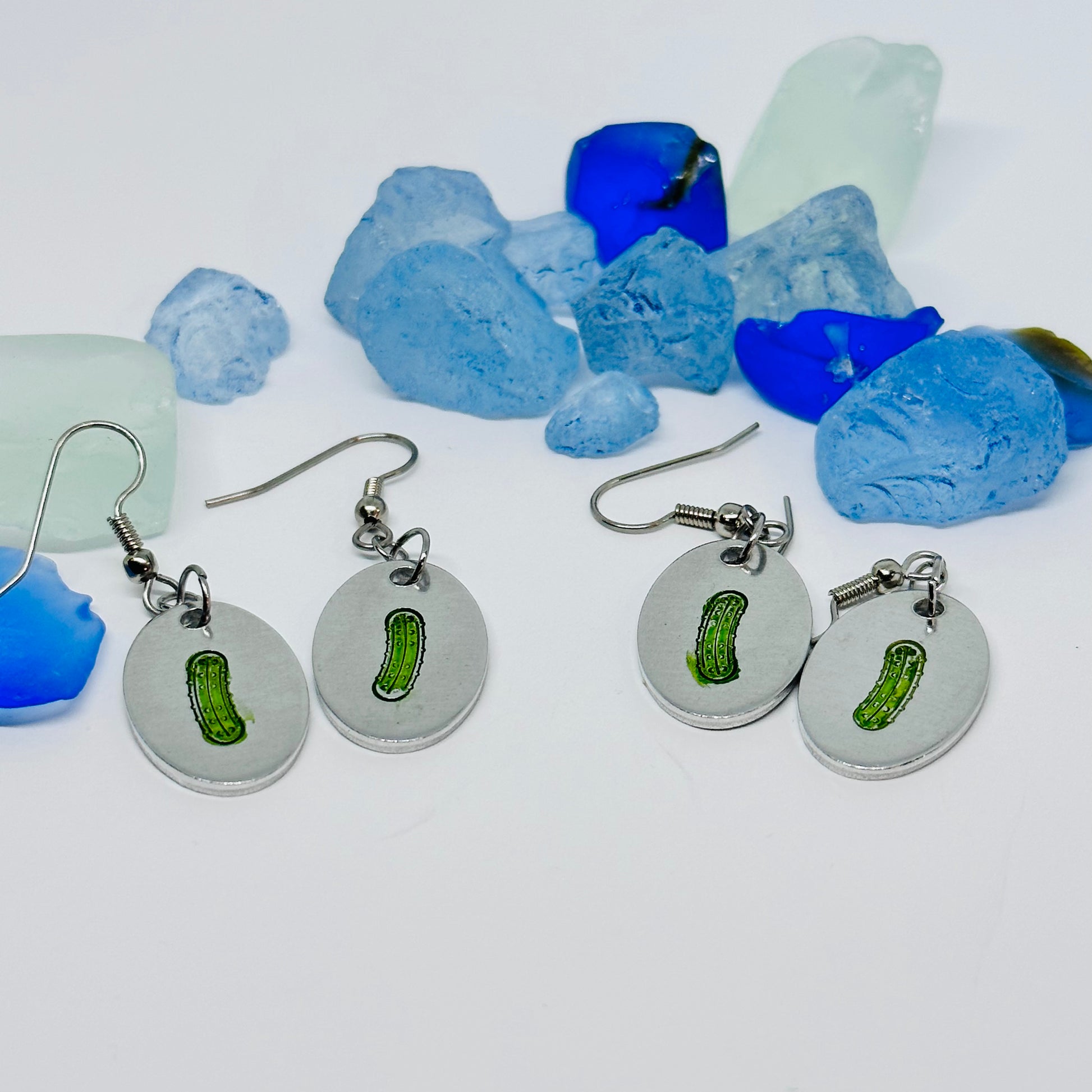 Pickles Hand Stamped & Painted Oval Drop Earrings | Green Pickles on Surgical Steel Ear Wires | Pickle Fest | Picklelicious
