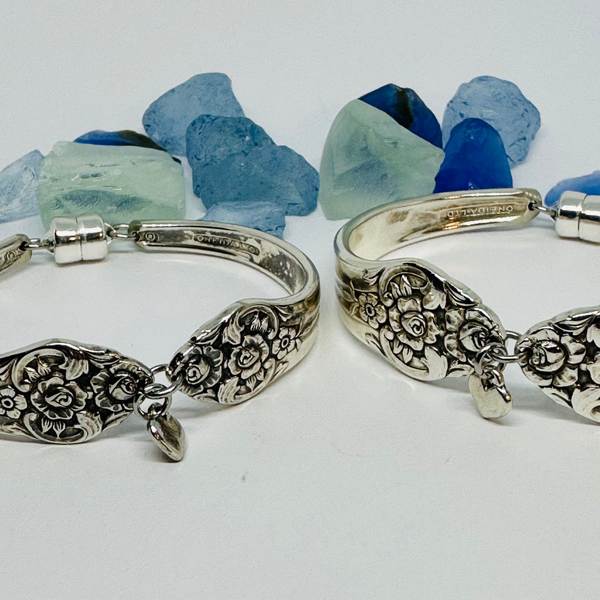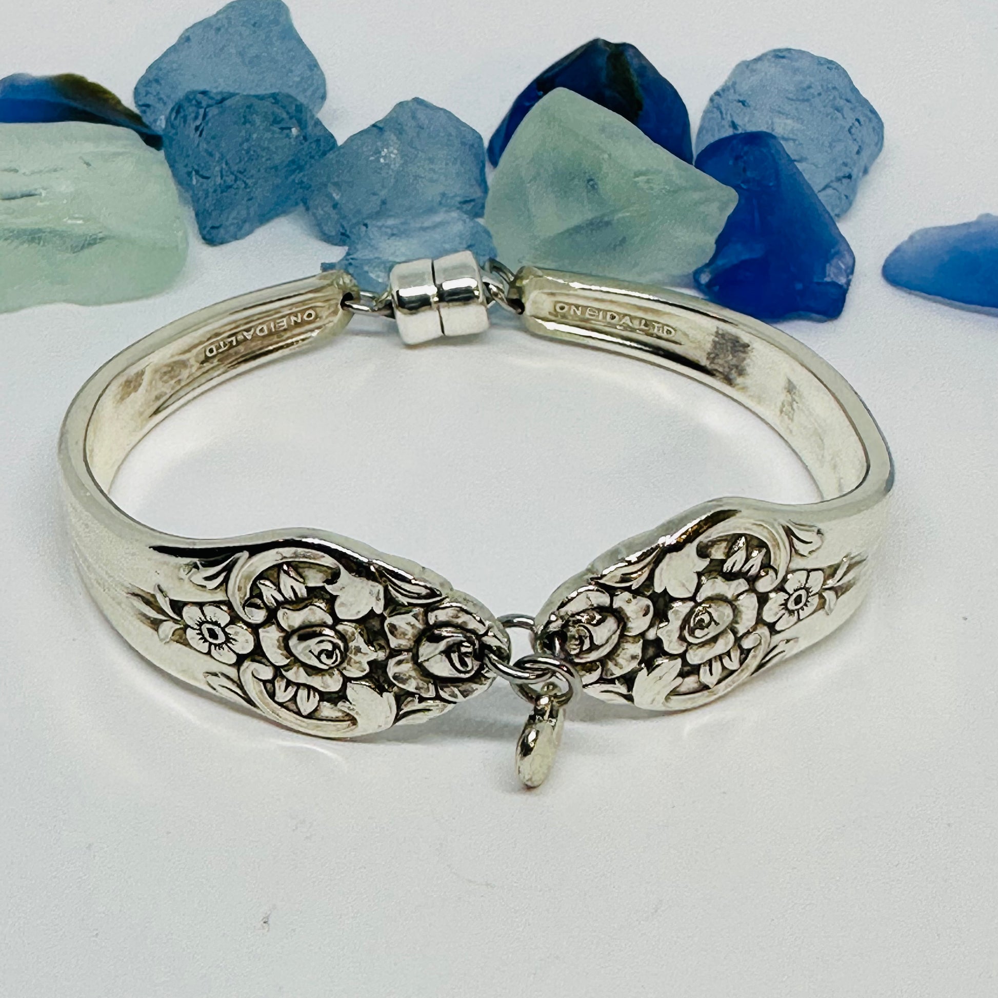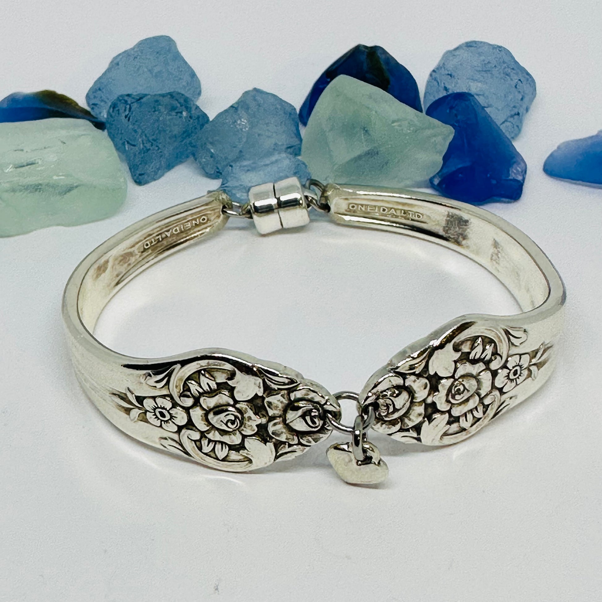 “Plantation” with Tiny Heart Charm - 1948 Spoon Bracelet | Vintage Silverware | Oneida | Up-Cycled Antique Silverware Spoon Bracelet