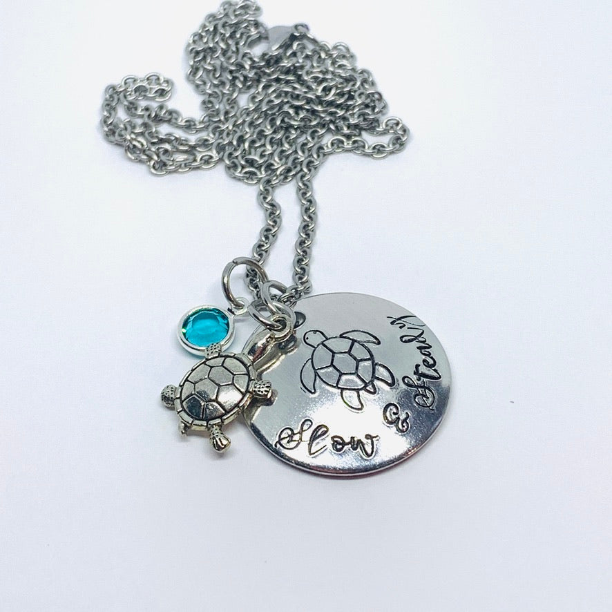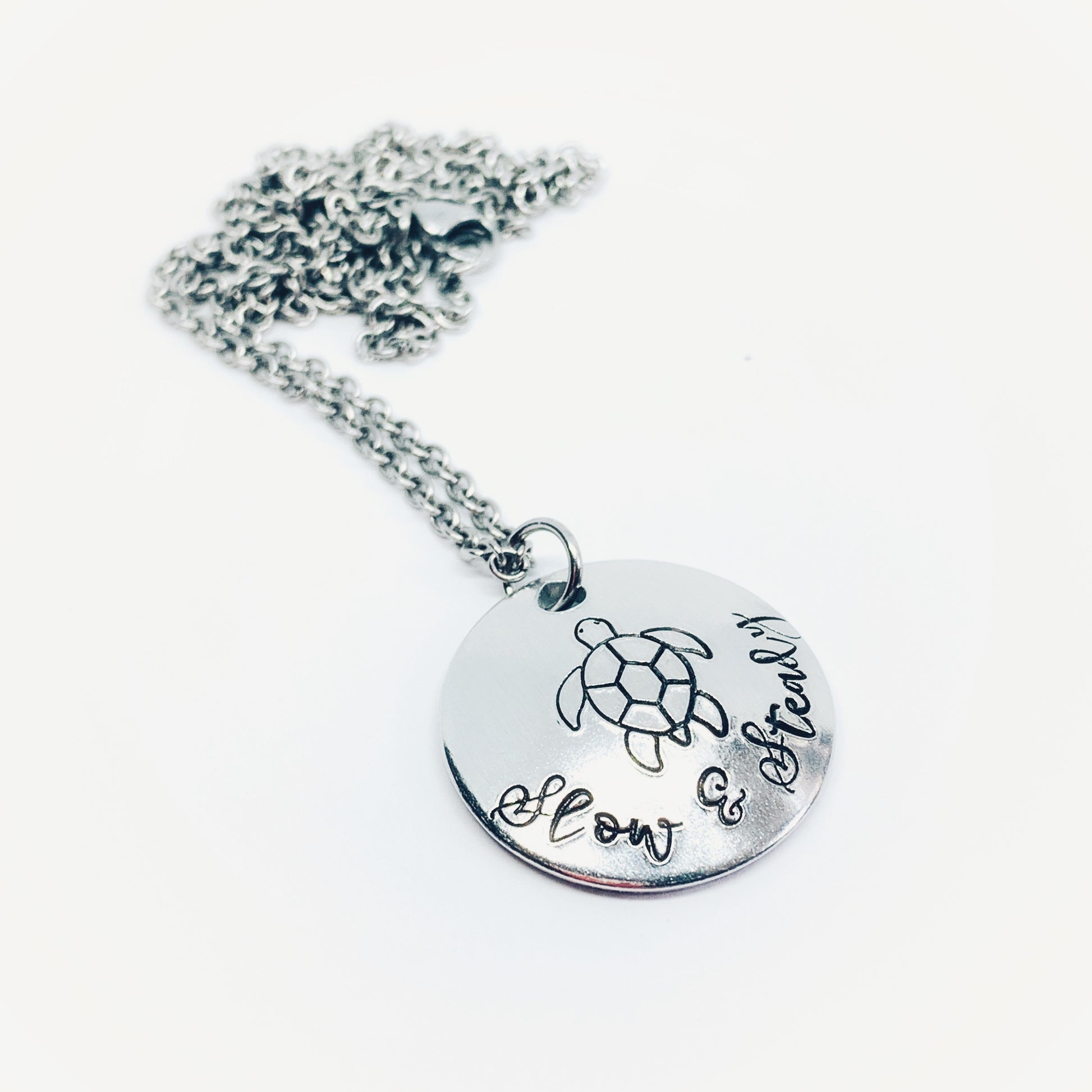Slow and steady wins the race, they say! Whether you’re on a weight loss (or gain) journey, finishing up your education, or no matter what your personal journey is, this pendant can be the constant reminder you need.