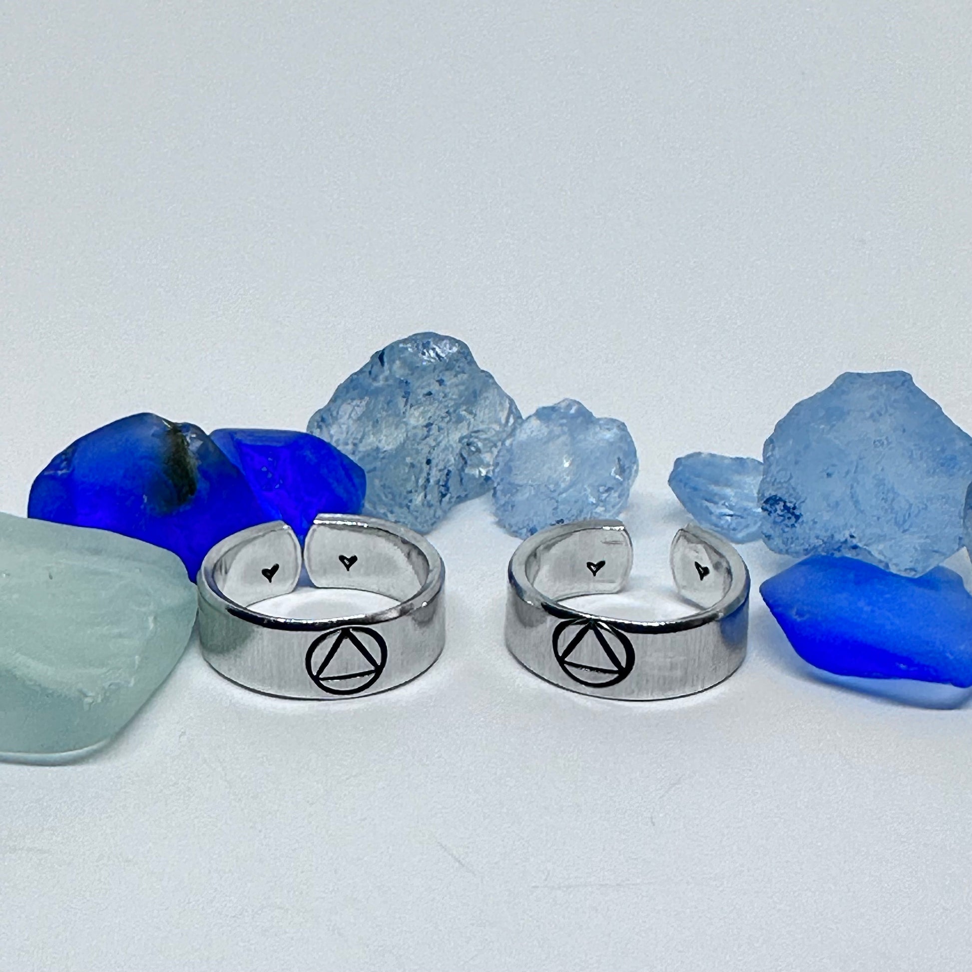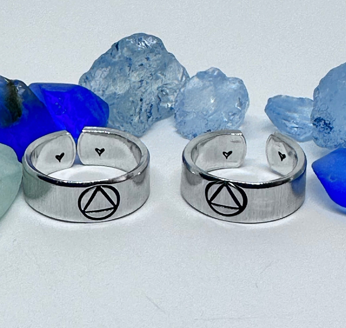 Sobriety Symbol Hand Stamped Metal Stacking Ring | Alcoholics Anonymous Abstinent Abstemious Adjustable | Circle Triangle