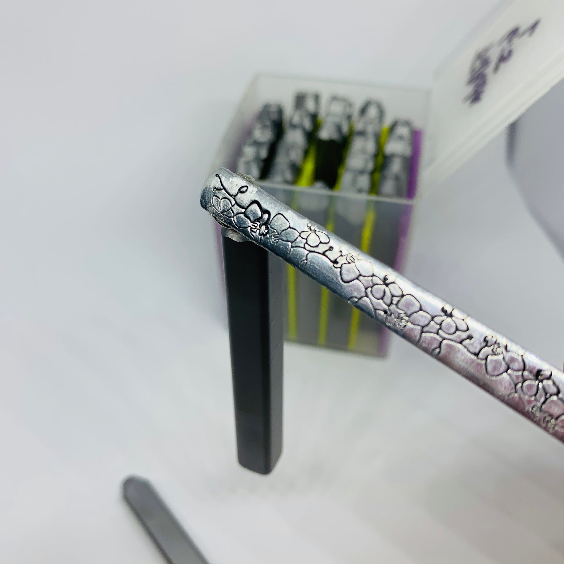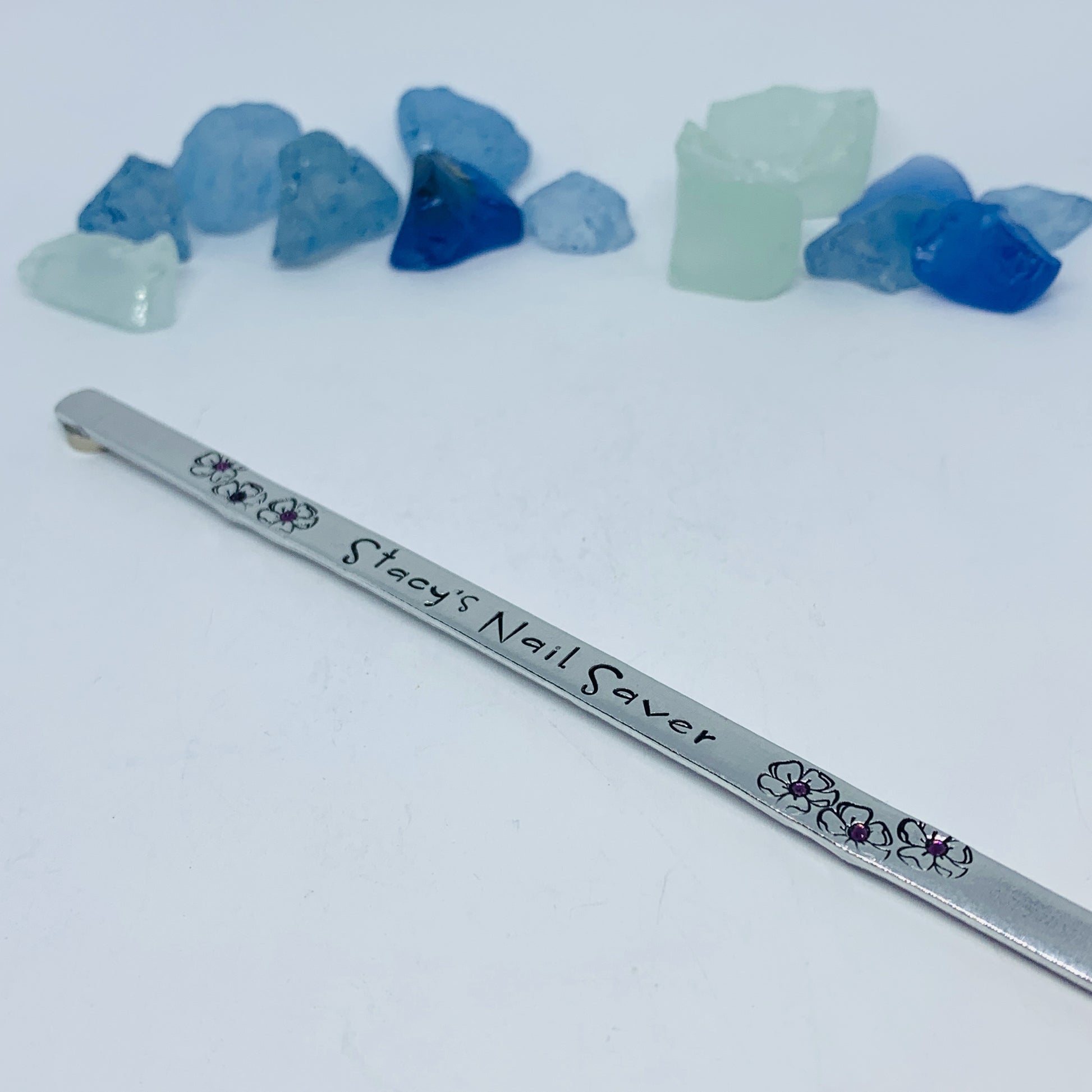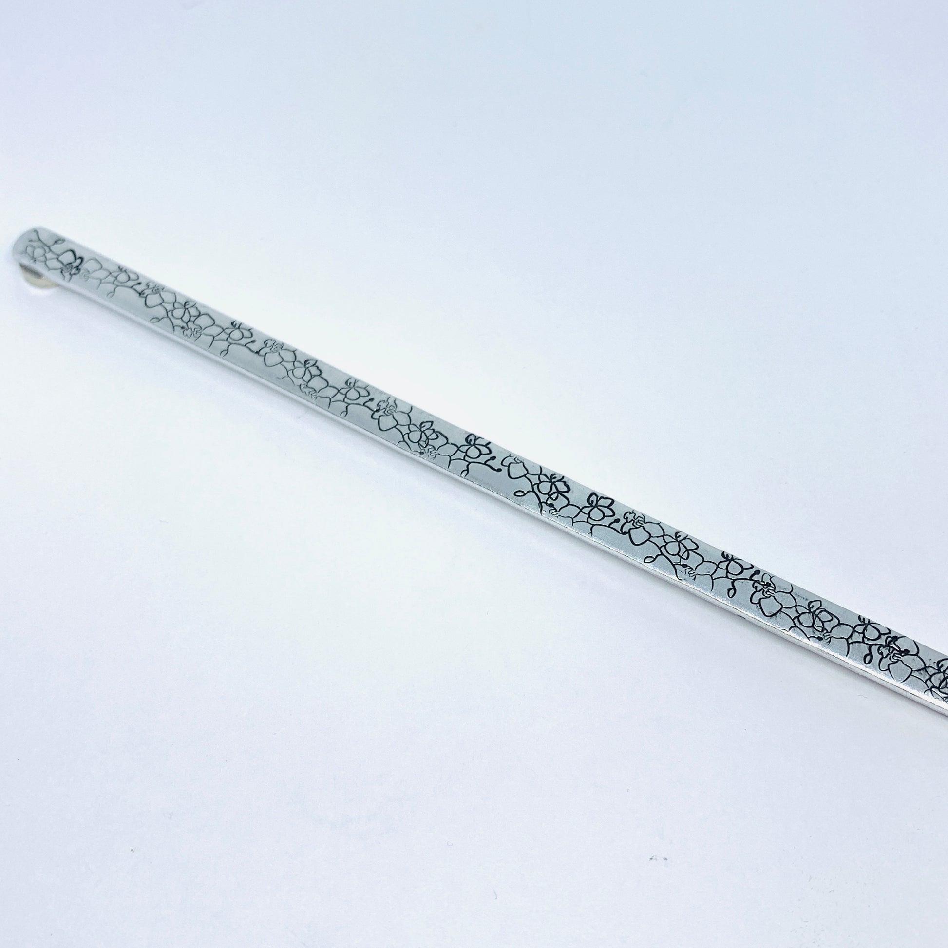 Beautifully stamped, this sample shows nicely detailed orchids along the handle. On one end on the other side is the strongest magnet you can find out there!