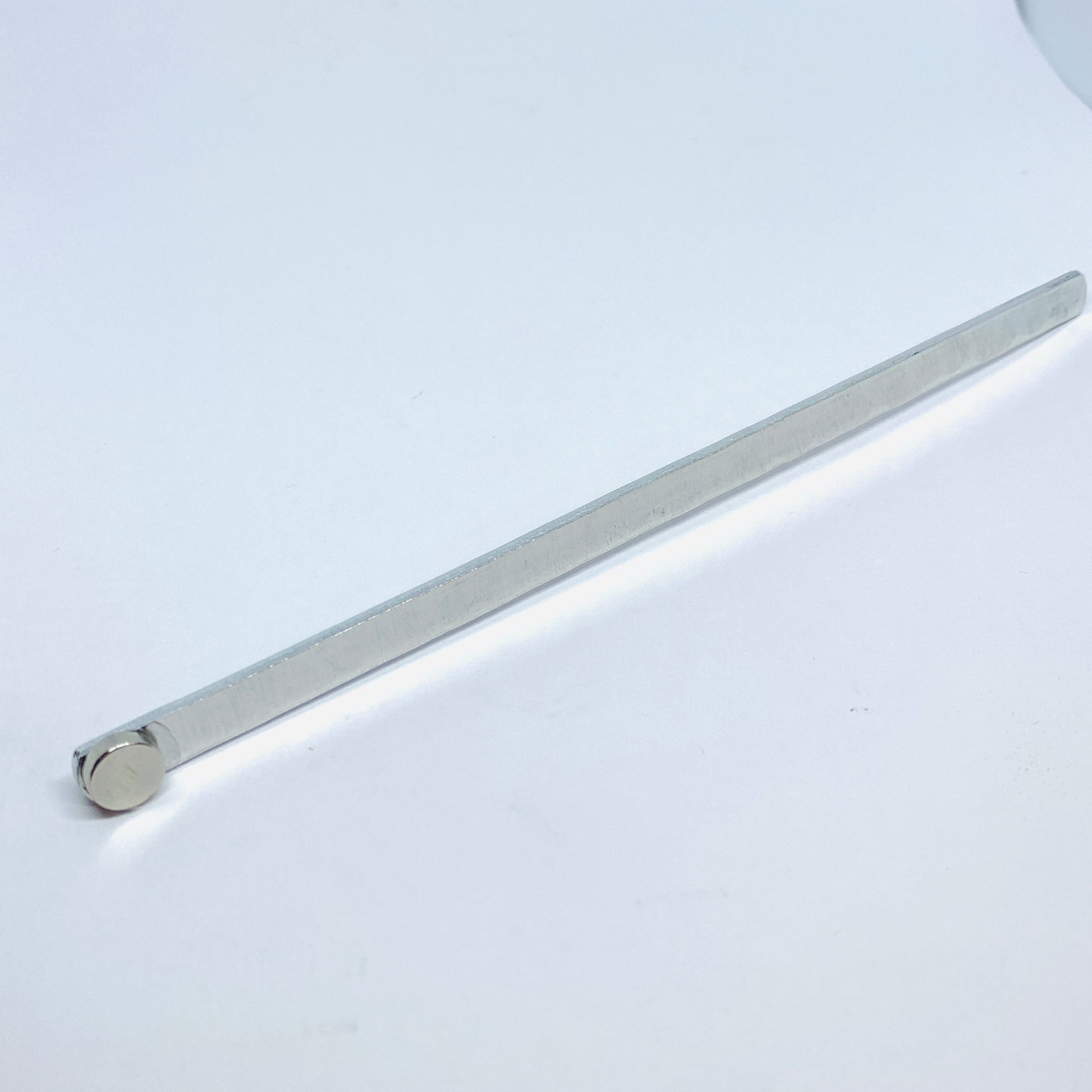 Each character and design is individually hand stamped by me in my studio in New Jersey. Each letter is hand aligned and punched into the metal, so the placement of the wording and designs will vary slightly from piece to piece. After stamping, I darken the impressions so they stand out. To retain the contrast, it is highly recommended that the piece is not exposed to excessive moisture (bathing, swimming, exercise). Materials: 12 gauge 6”x1/4" aluminum with that super strong magnet glued on back. Strong enough to pick up lots of items at once!