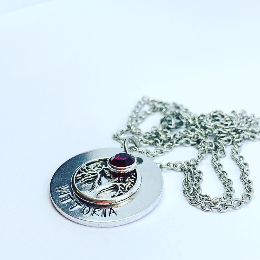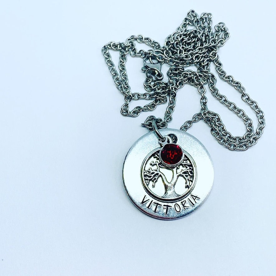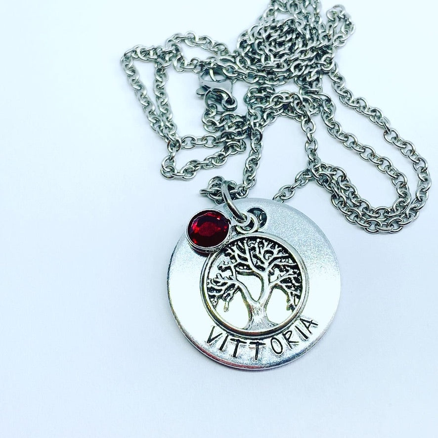 Tree of Life (Birthstone Optional) - Hand Stamped Necklace - Personalize Me!