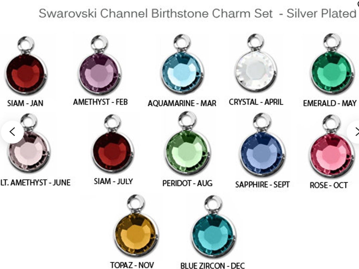 ***Swarovski channel charms - limited quantities available. Once sold out will switch to another similar channel charm.