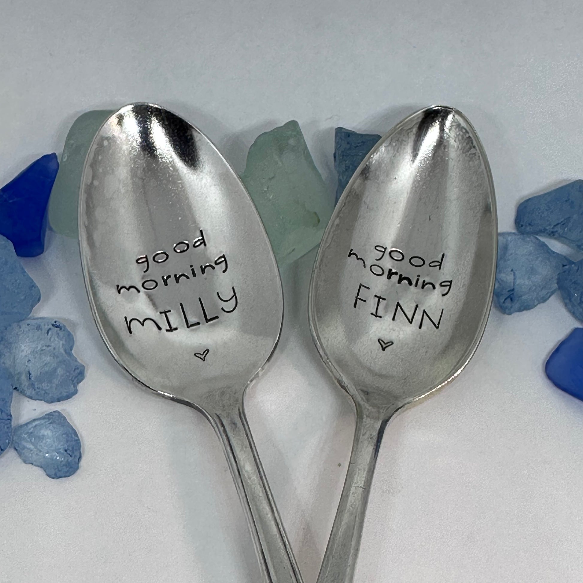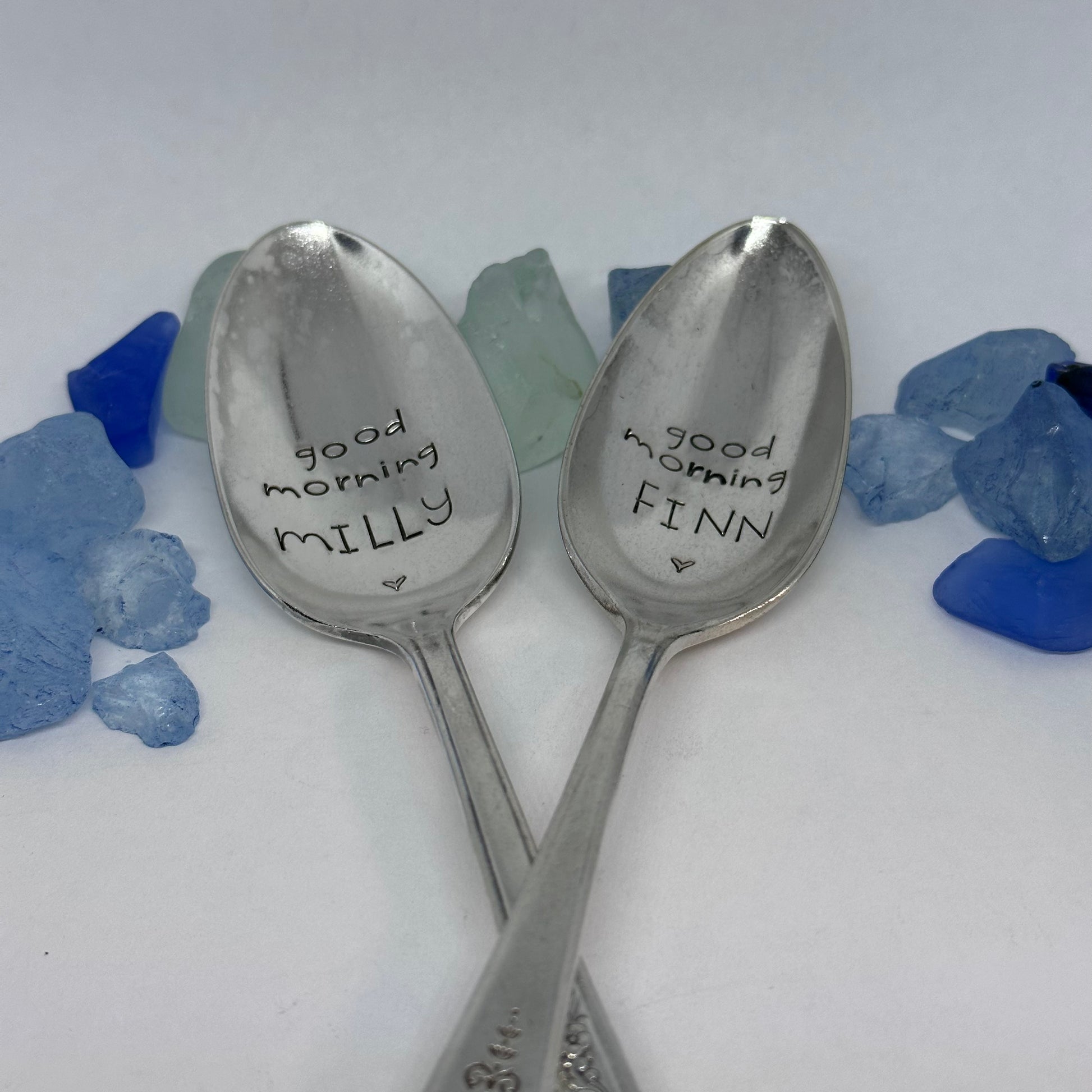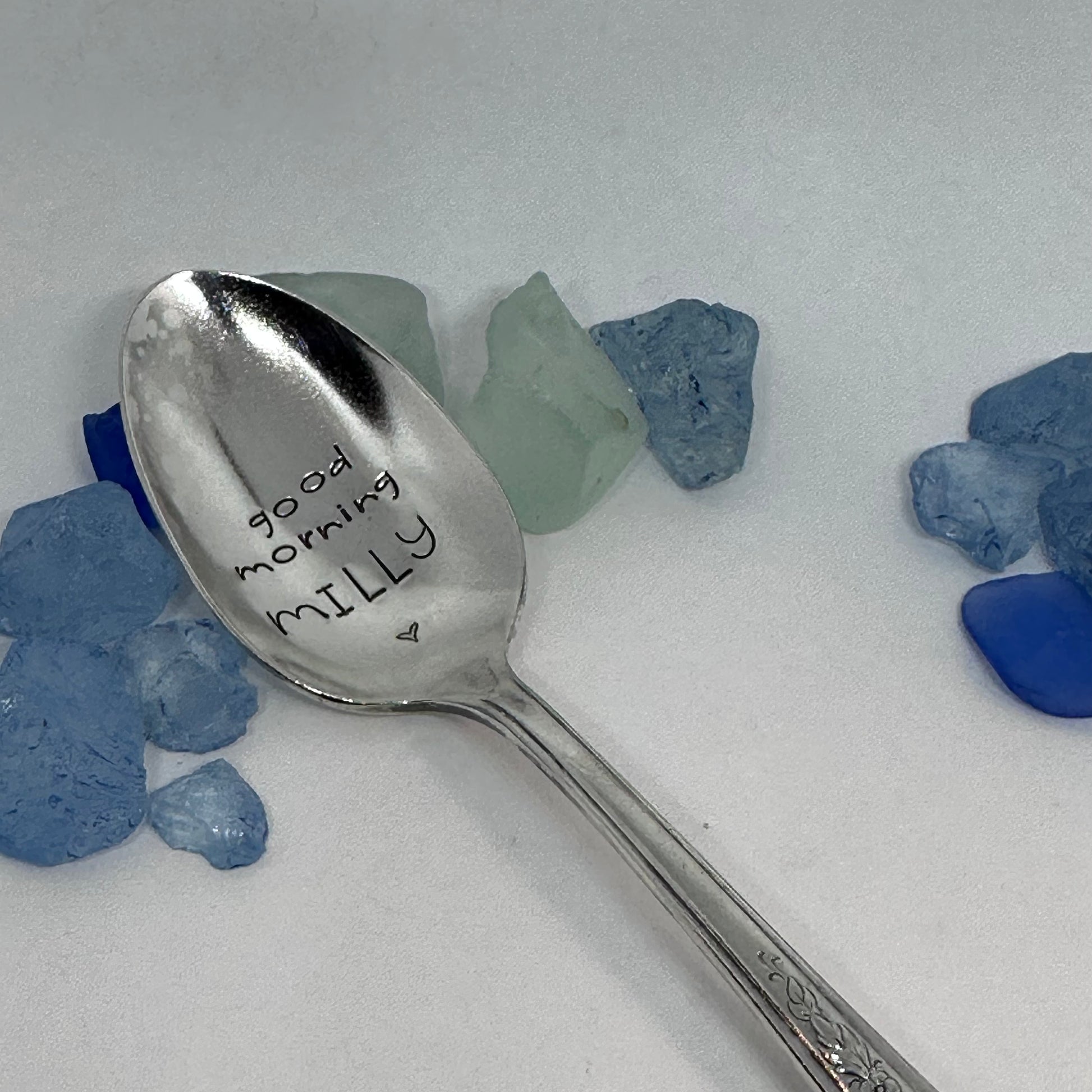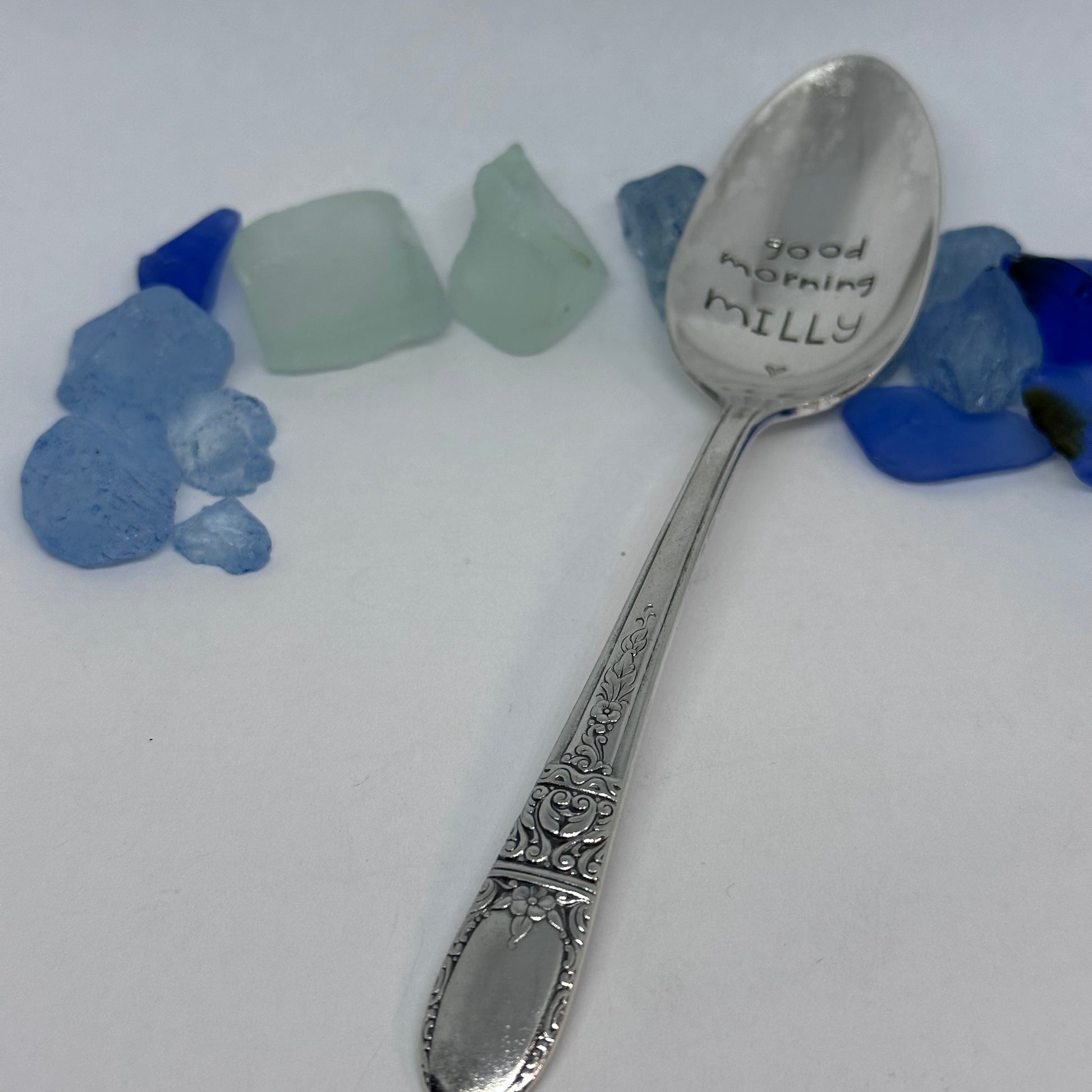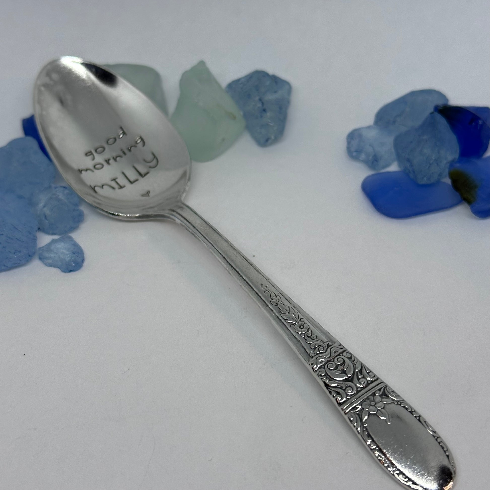 Hand stamped spoons from vintage silverware. Patterns will vary. Custom orders welcome!