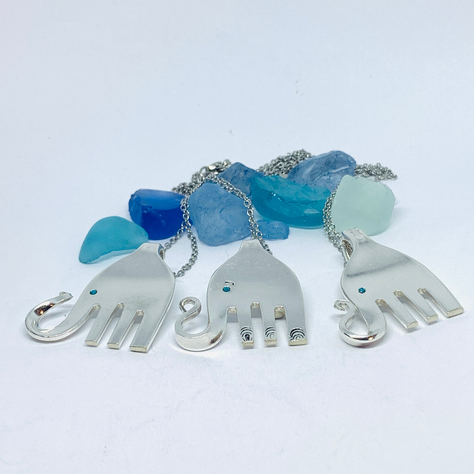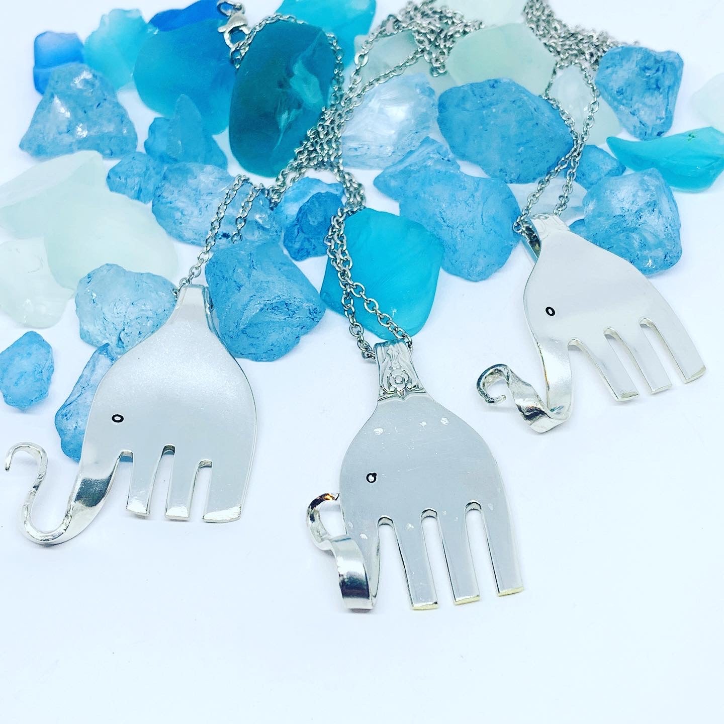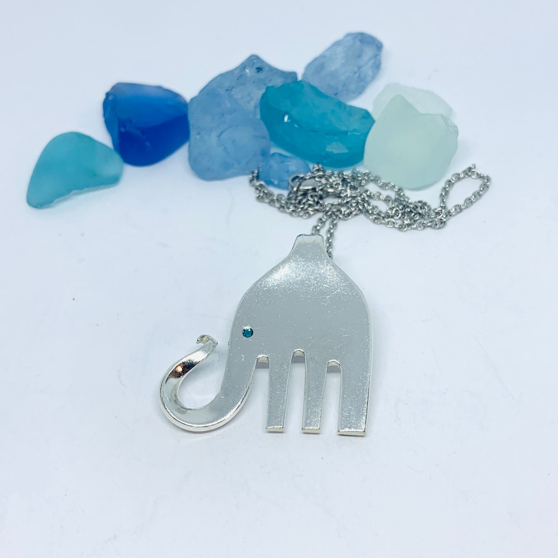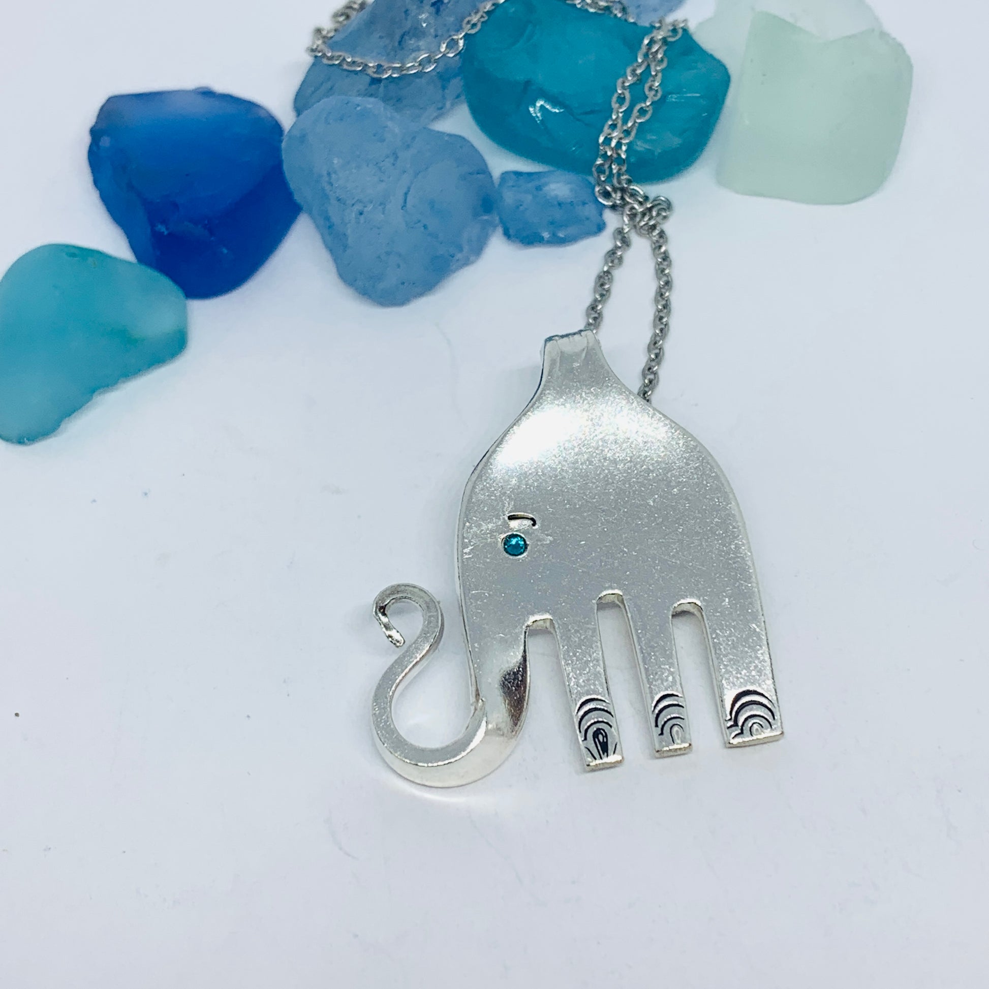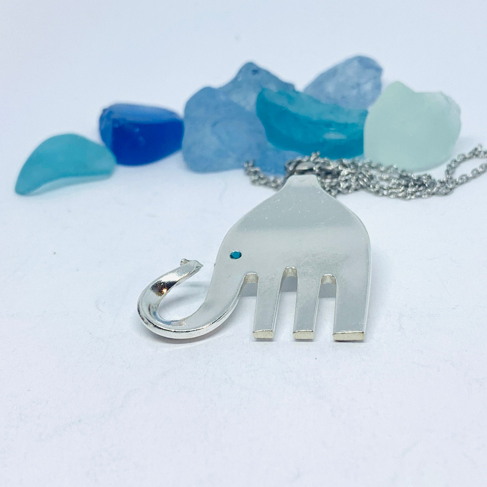 Vintage Silverware “Elefork” Fork Elephant Pendant with Chain | Vintage Silverware Jewelry | Vintage Pendant
