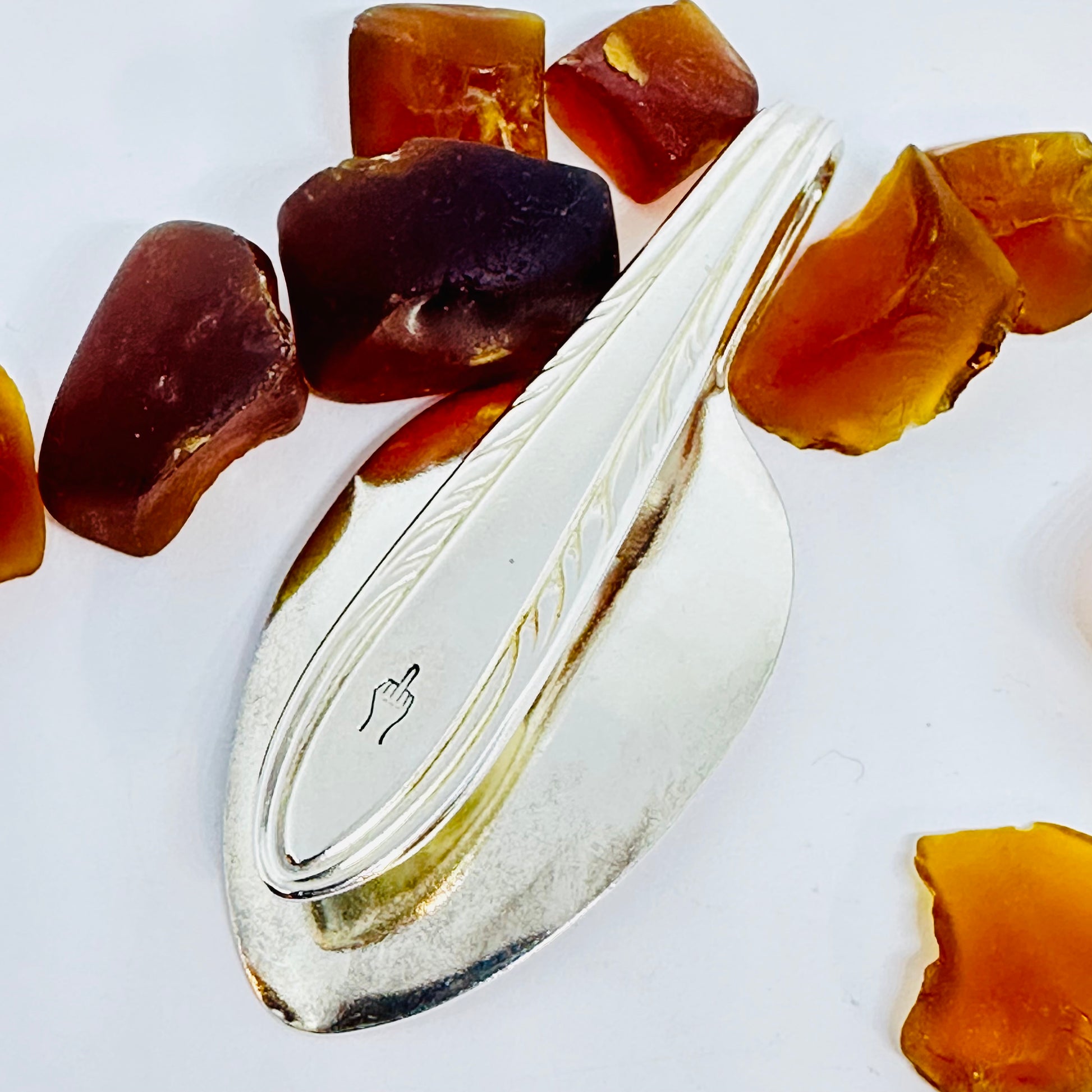 Vintage silverware spoon bookmark features hand stamped adult-natured sayings. Being vintage in nature you will see signs of wear on all of these pieces. I think it just adds to the charm! Allow me to choose from the silverware patterns I have on hand. You choose the saying! Designs will vary.