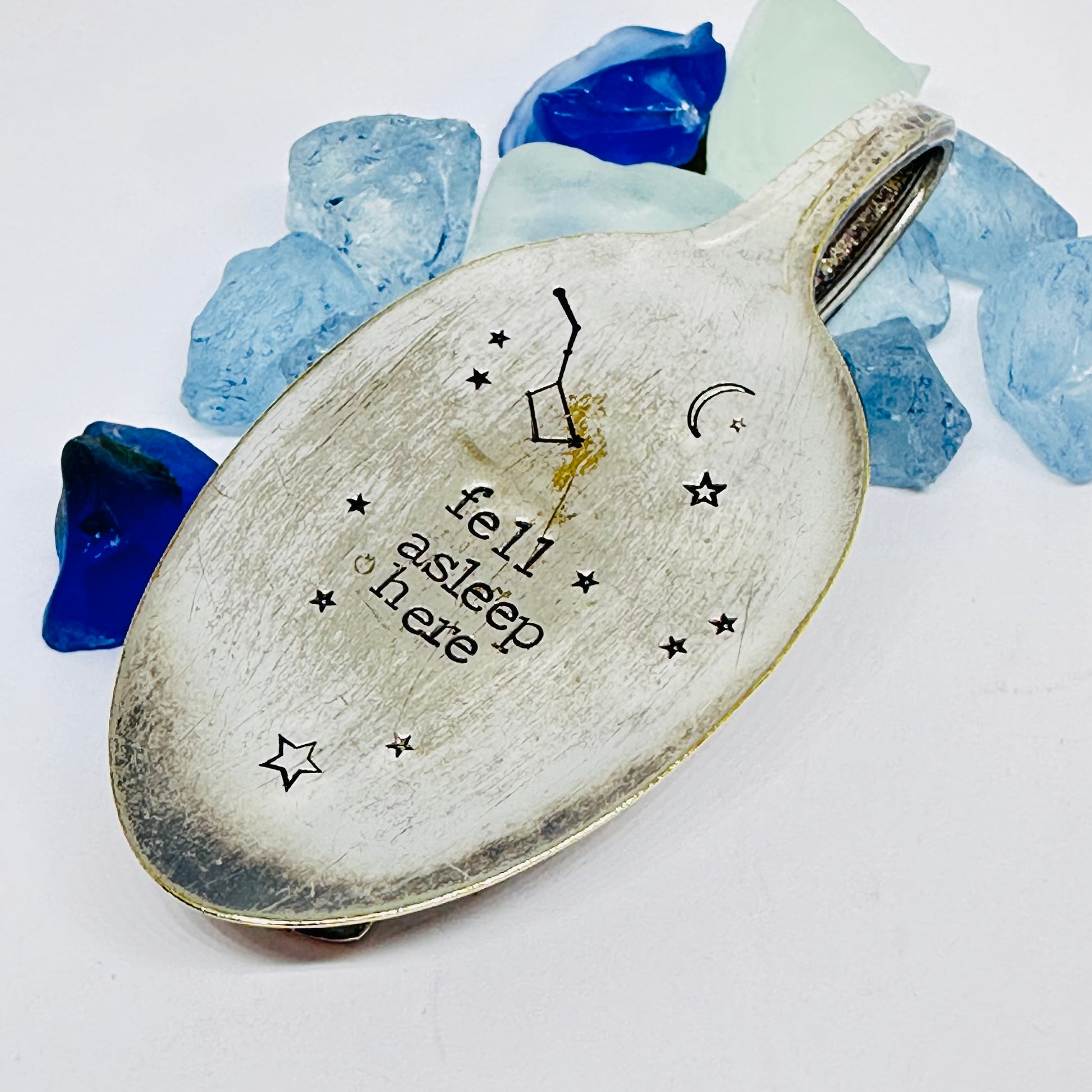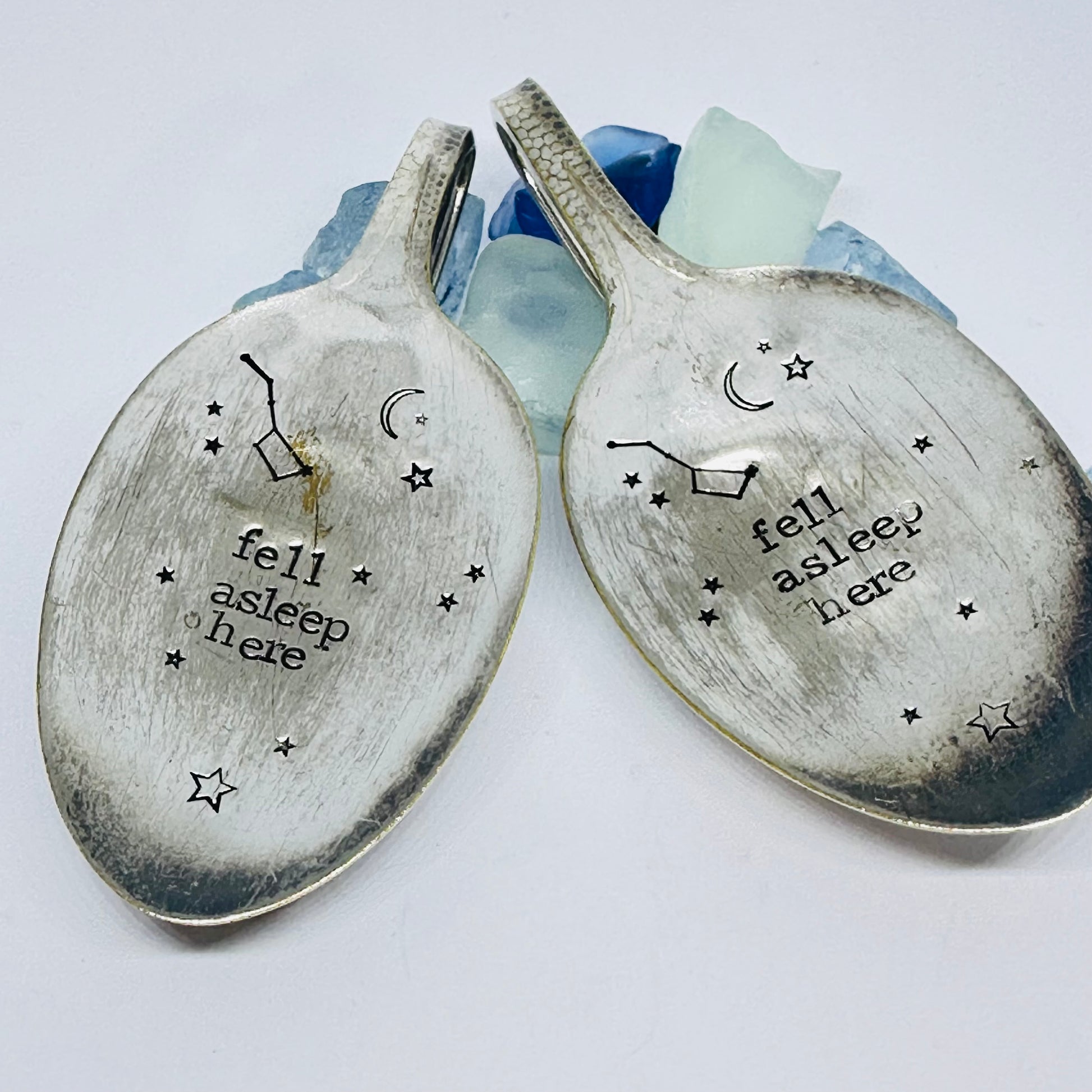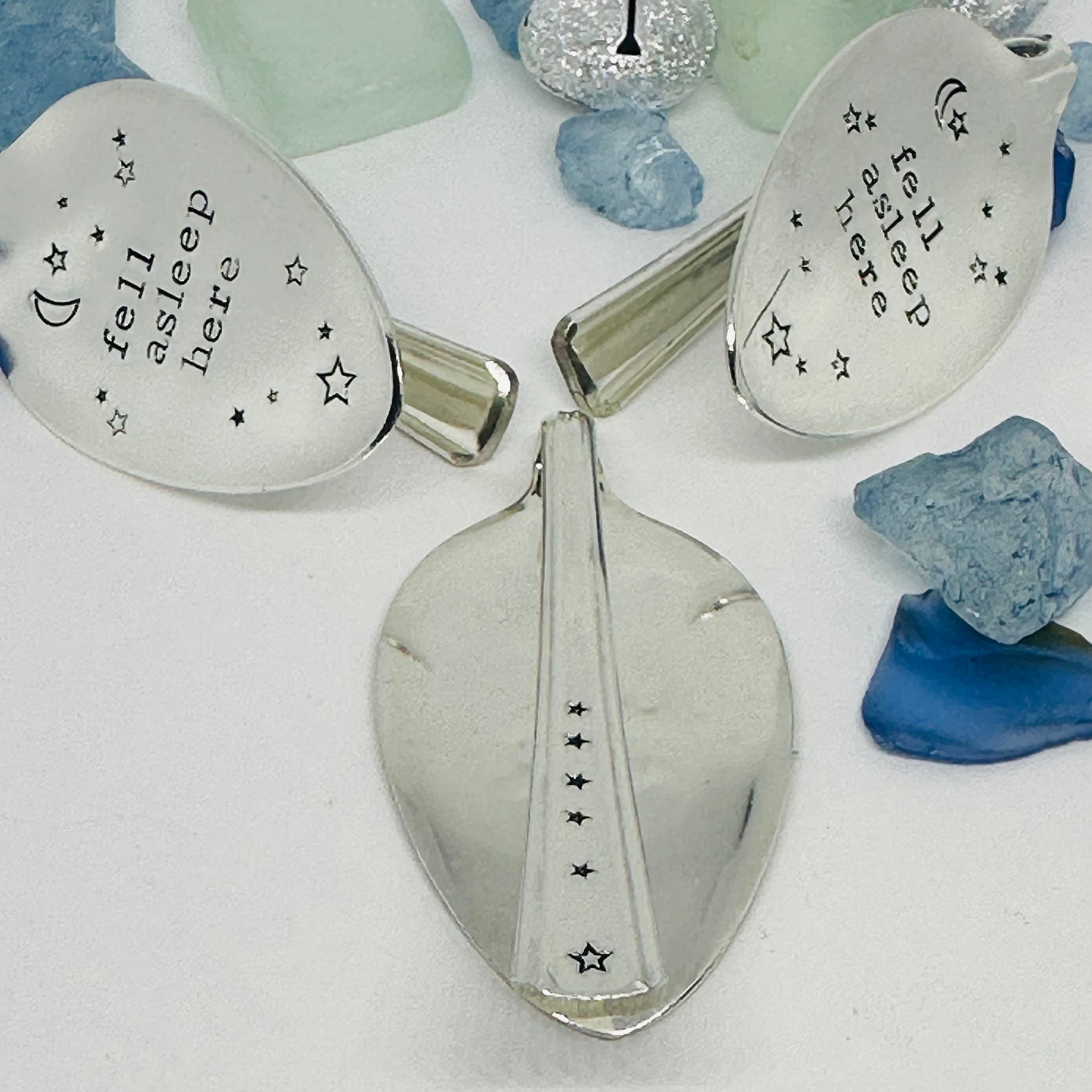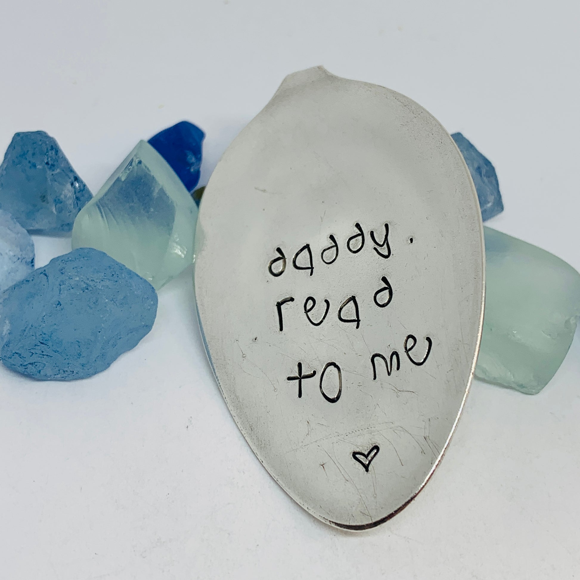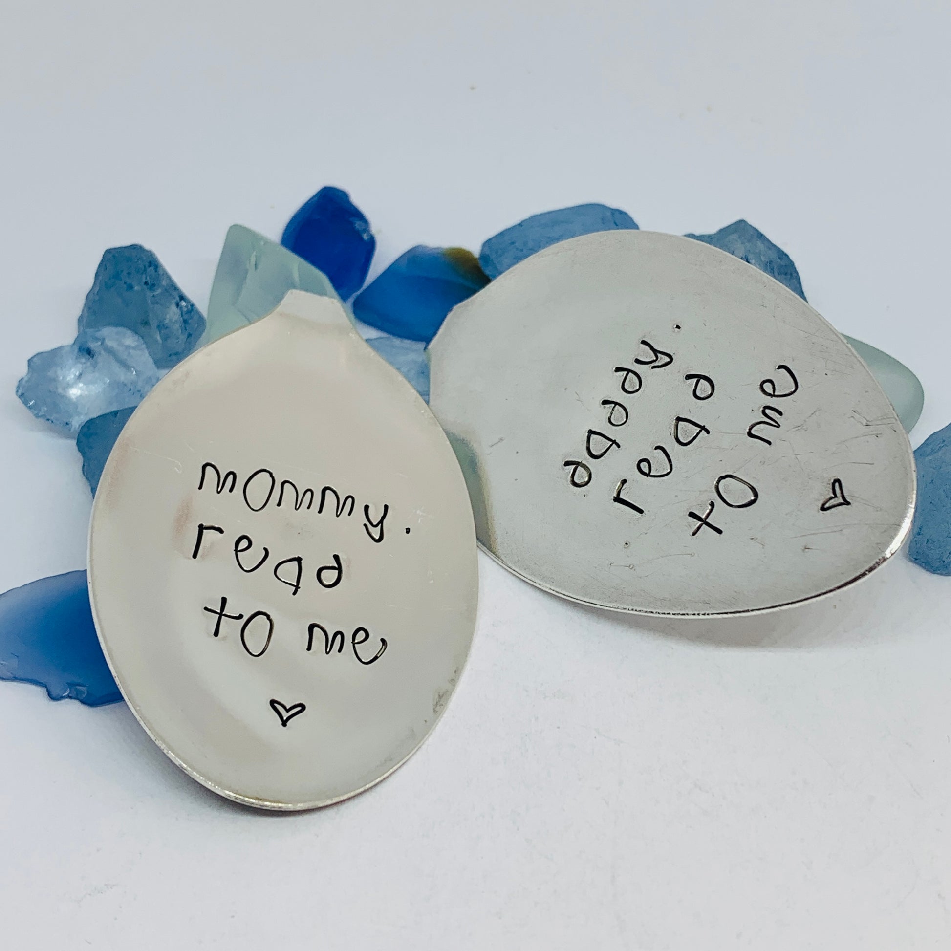 Vintage silverware spoon bookmark features hand stamped sayings. A great way to encourage reading for kids of all ages! Being vintage in nature you will see signs of wear on all of these pieces. I think it just adds to the charm! Allow me to choose from the patterns I have on hand. You choose the saying! Each will vary slightly from the images here.