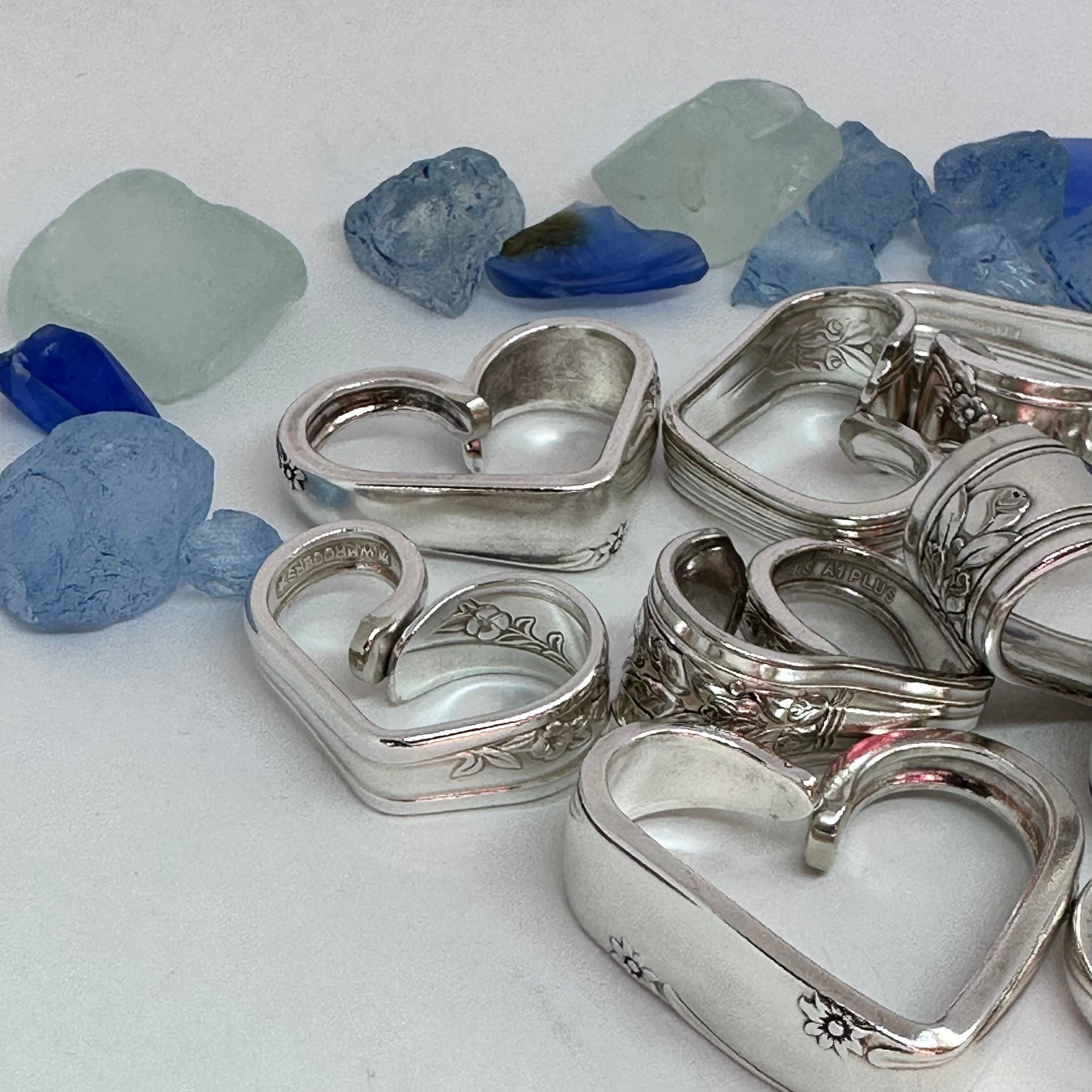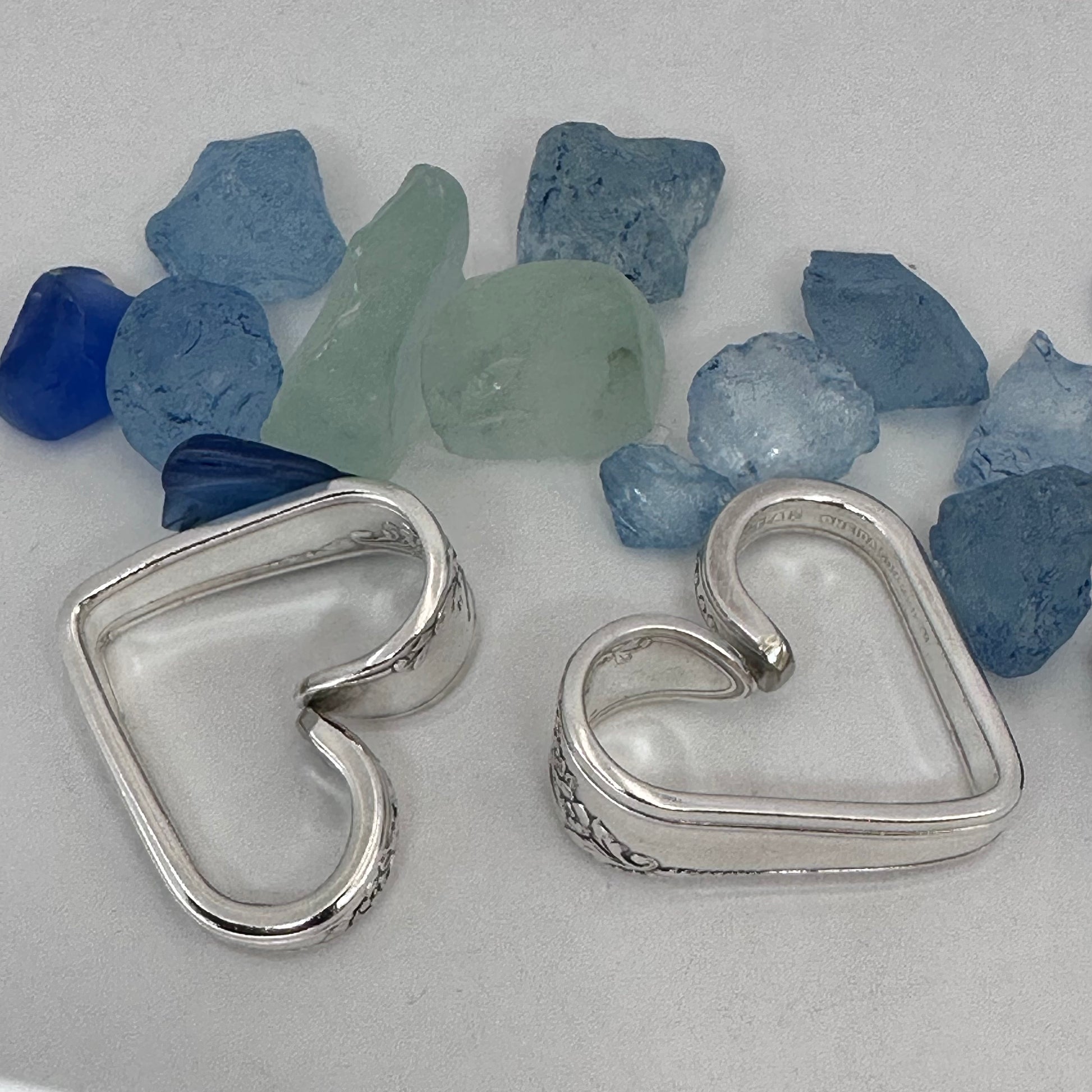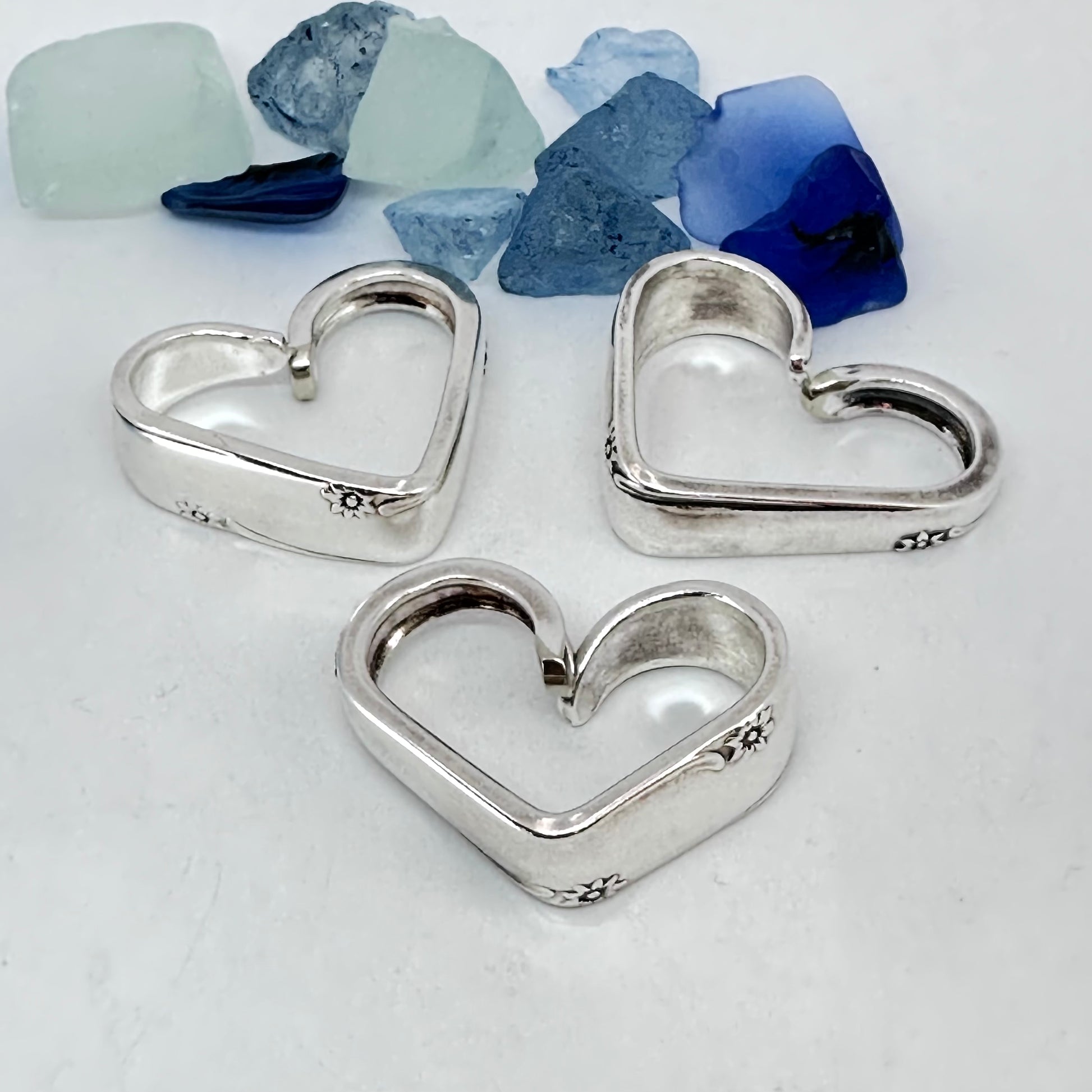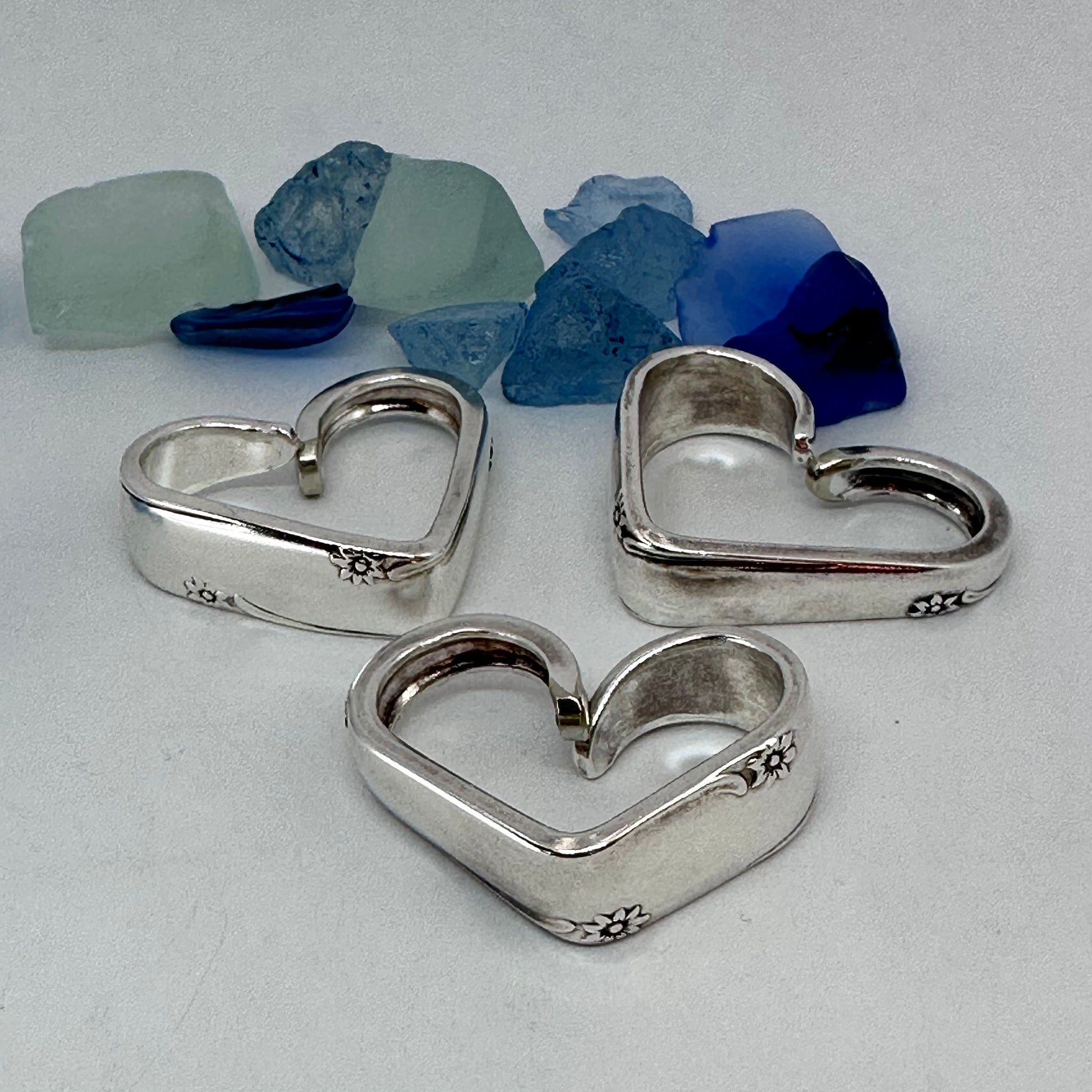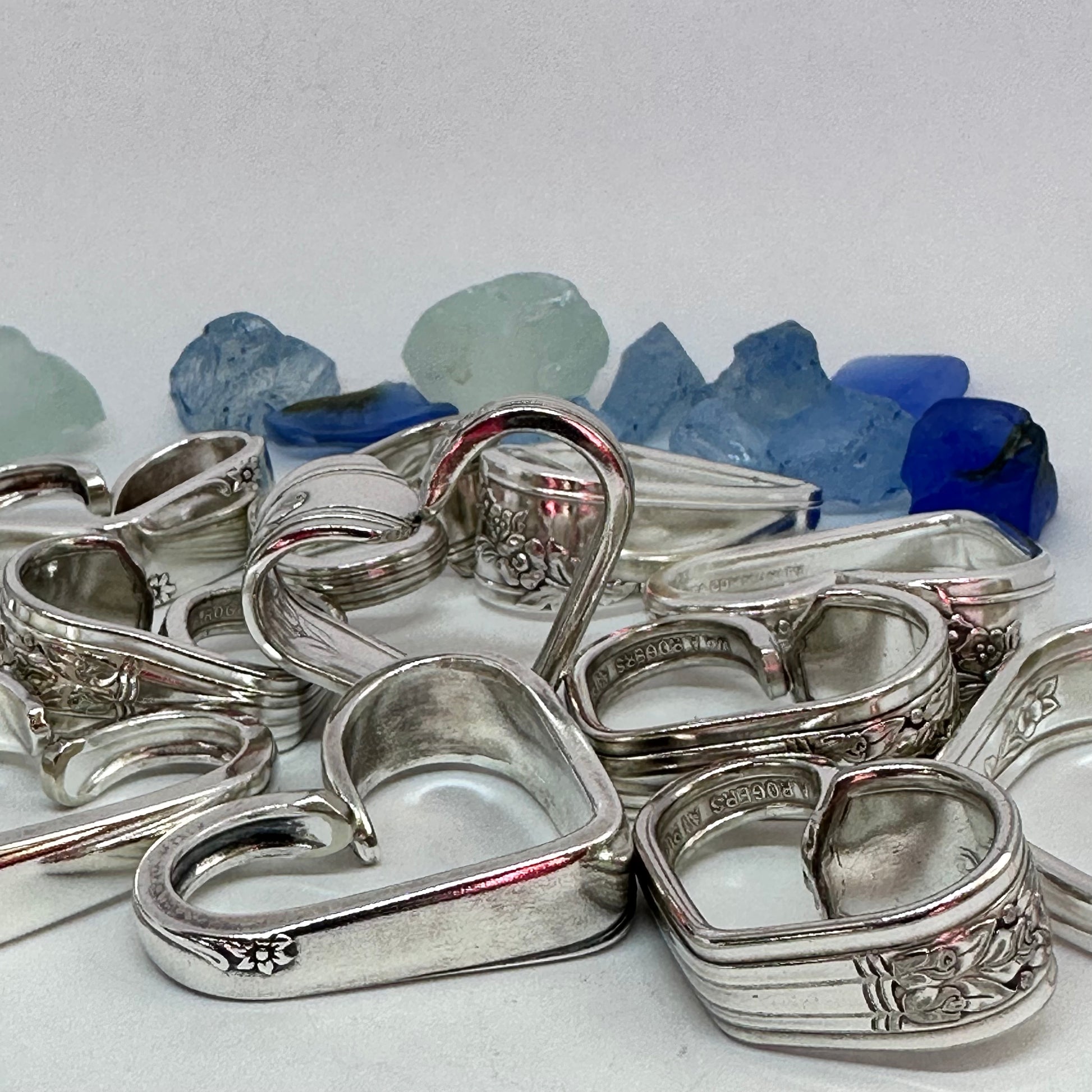 Vintage silverware spoon handles bent into heart shapes. Allow me to choose from the silverware patterns I have on hand. Each will be a one of a kind! Some with more “character” or are a bit more “unique” than others. If you have a preference, please let me know via message or a note at checkout - one that’s more “perfect” - or one that has more character, and might be a little irregular.