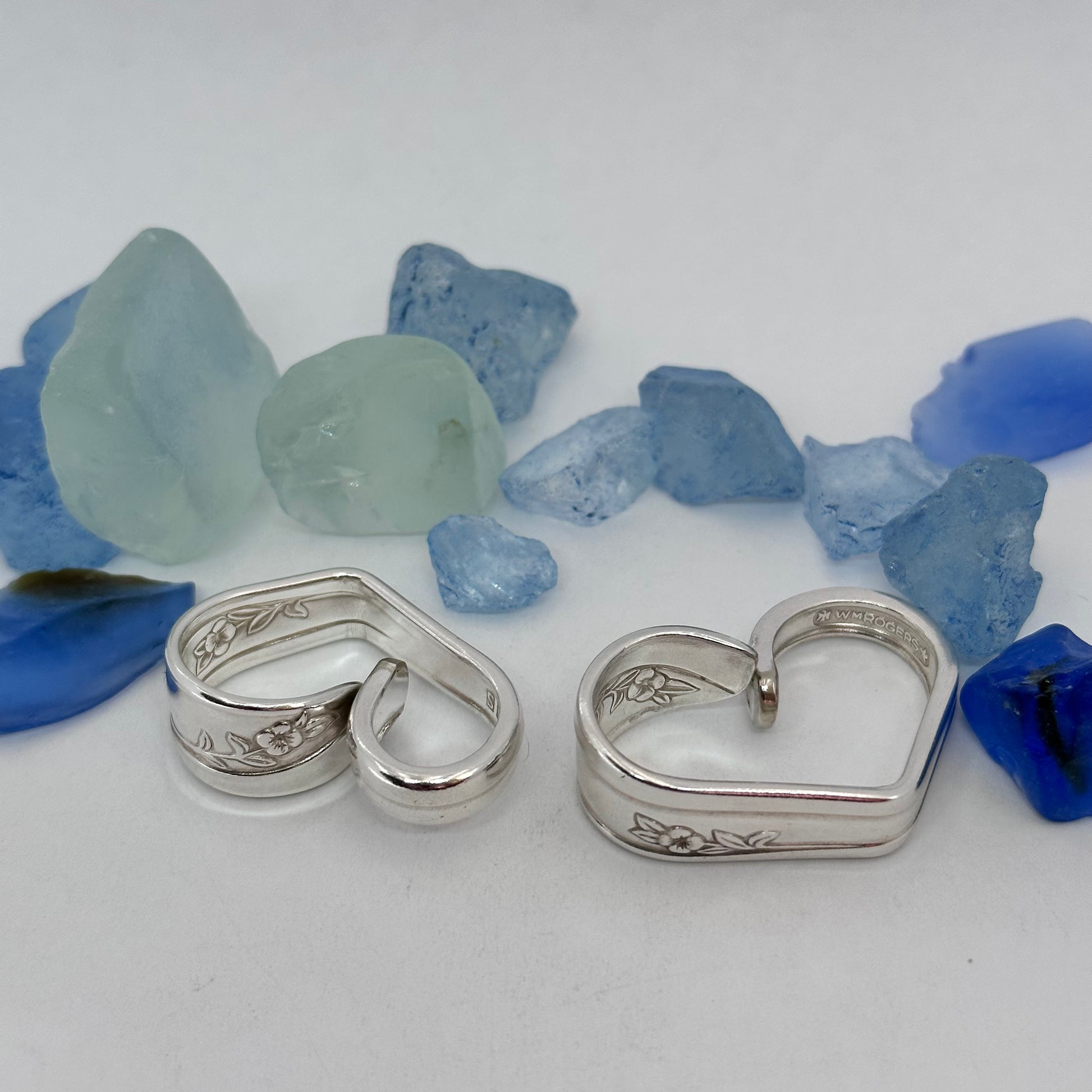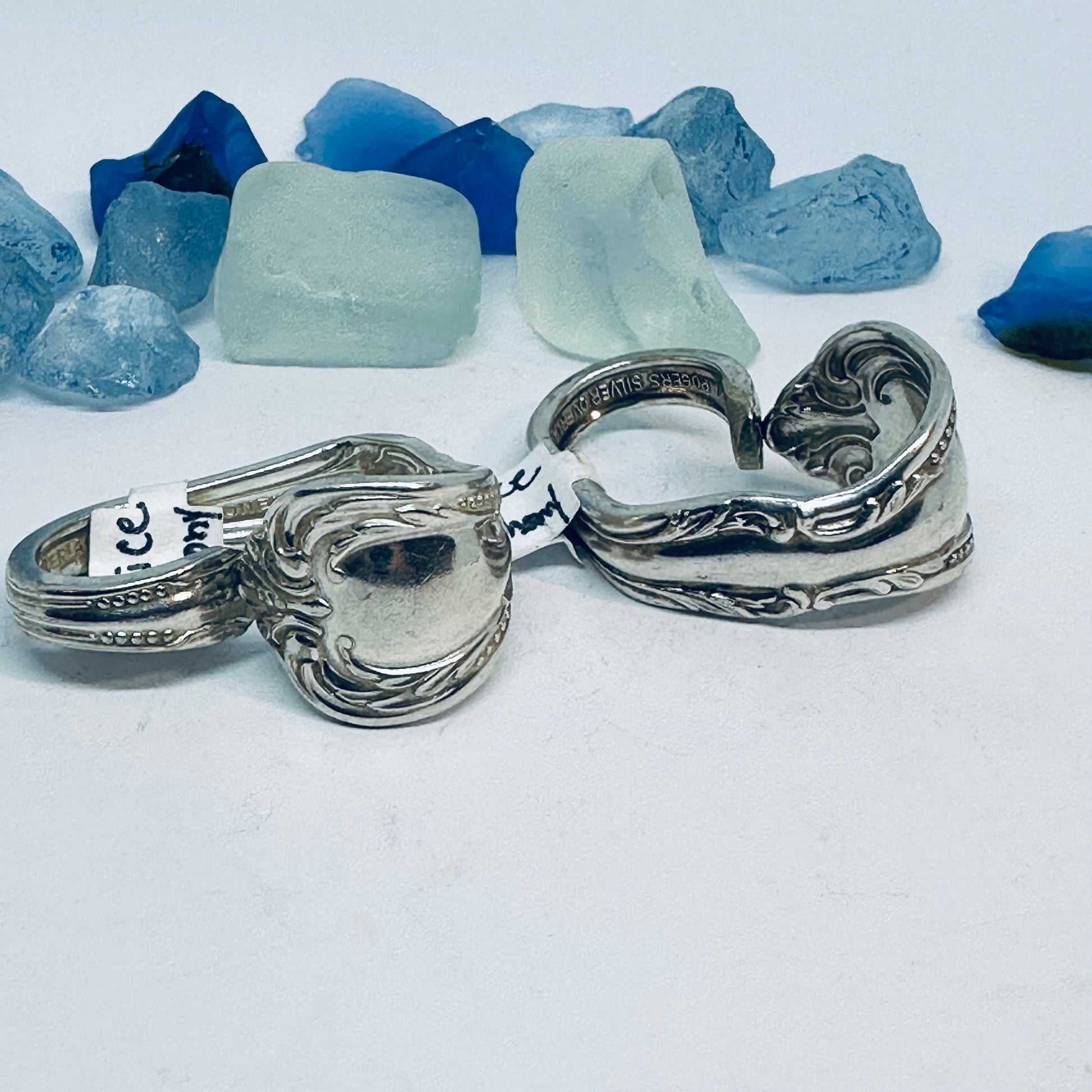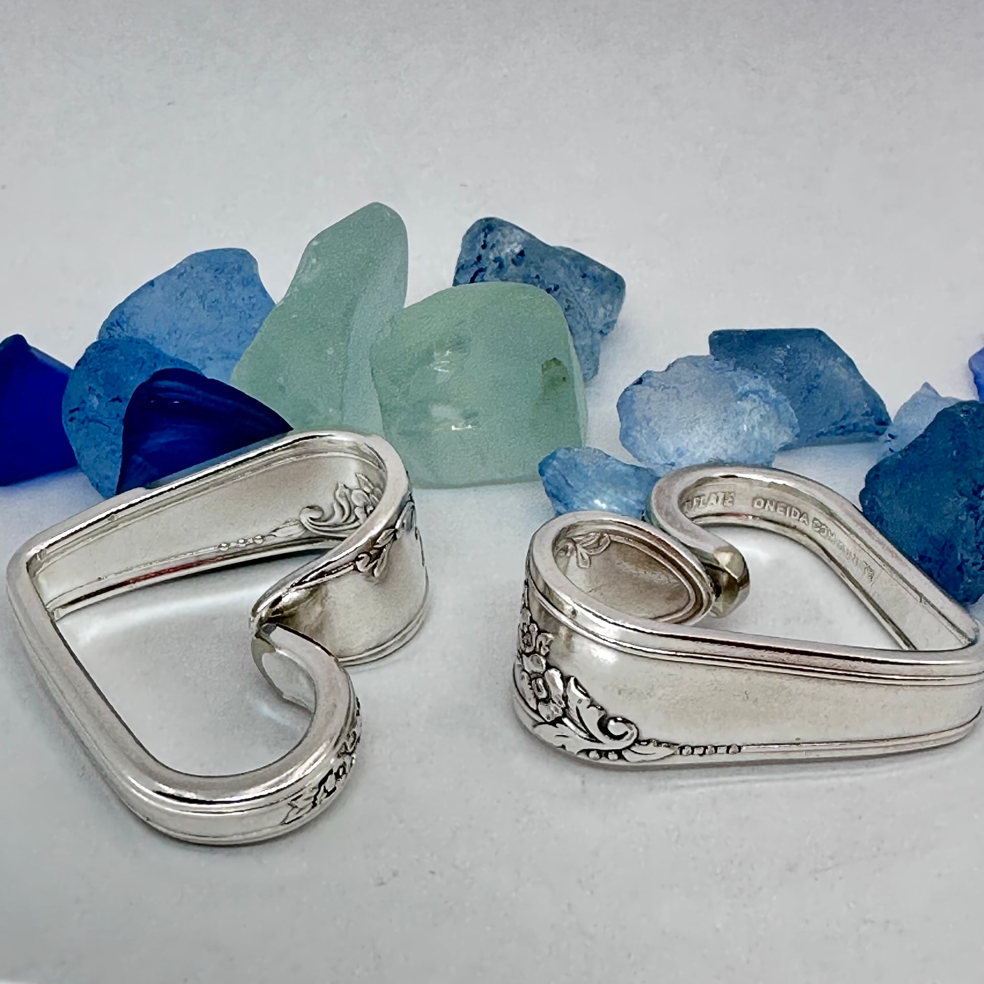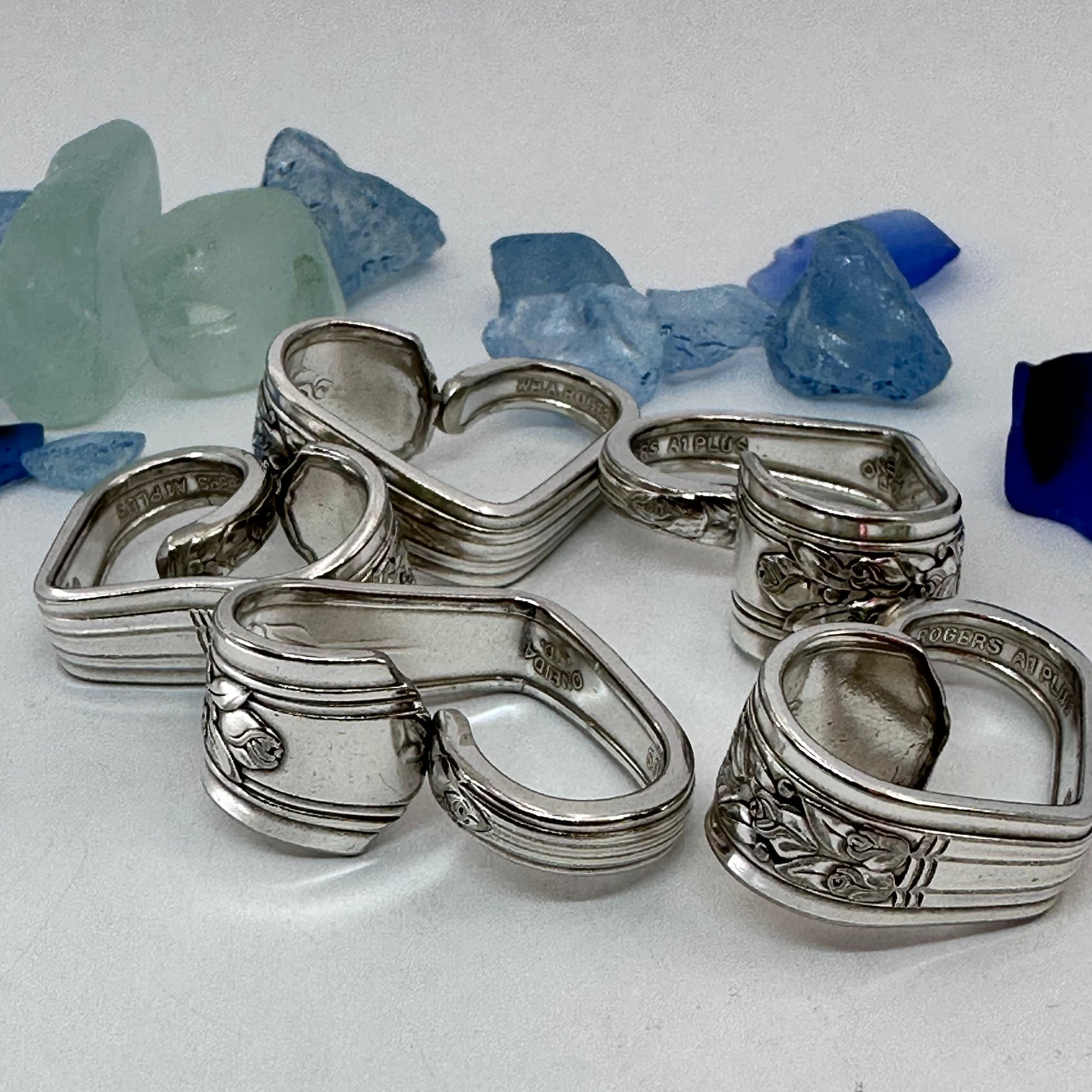 Vintage silverware spoon handles bent into heart shapes. Allow me to choose from the silverware patterns I have on hand. Each will be a one of a kind! Some with more “character” or are a bit more “unique” than others. If you have a preference, please let me know via message or a note at checkout - one that’s more “perfect” - or one that has more character, and might be a little irregular.