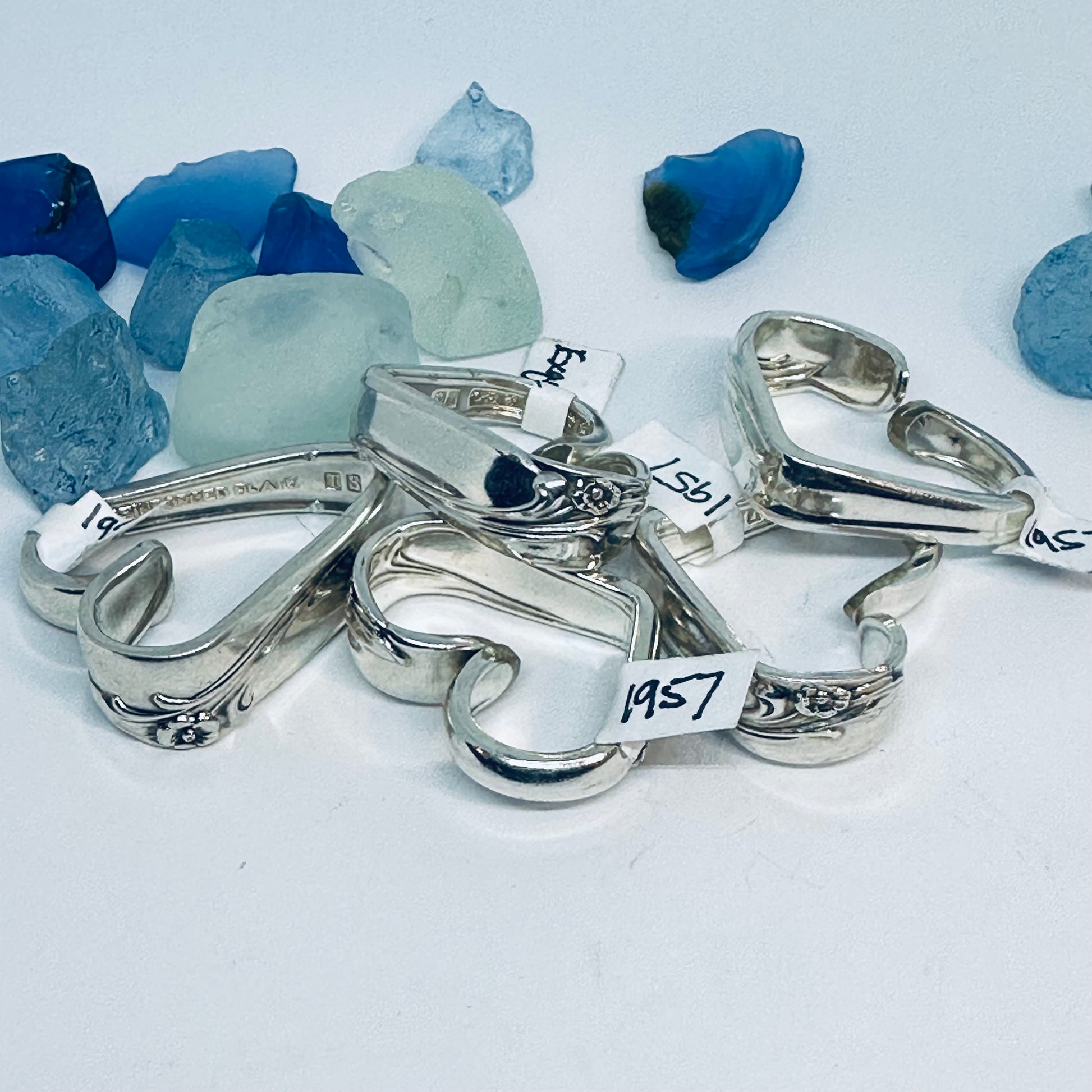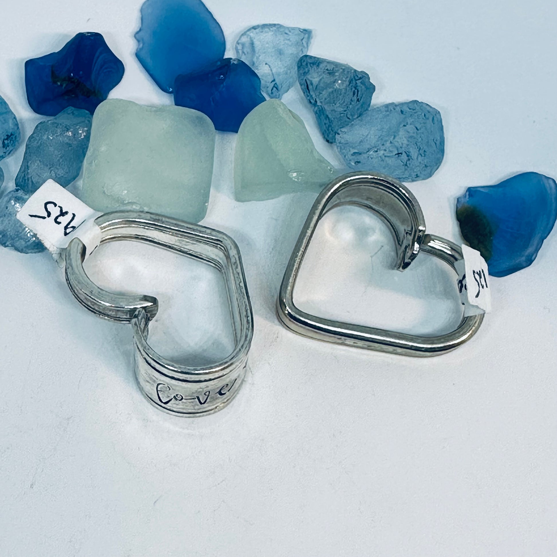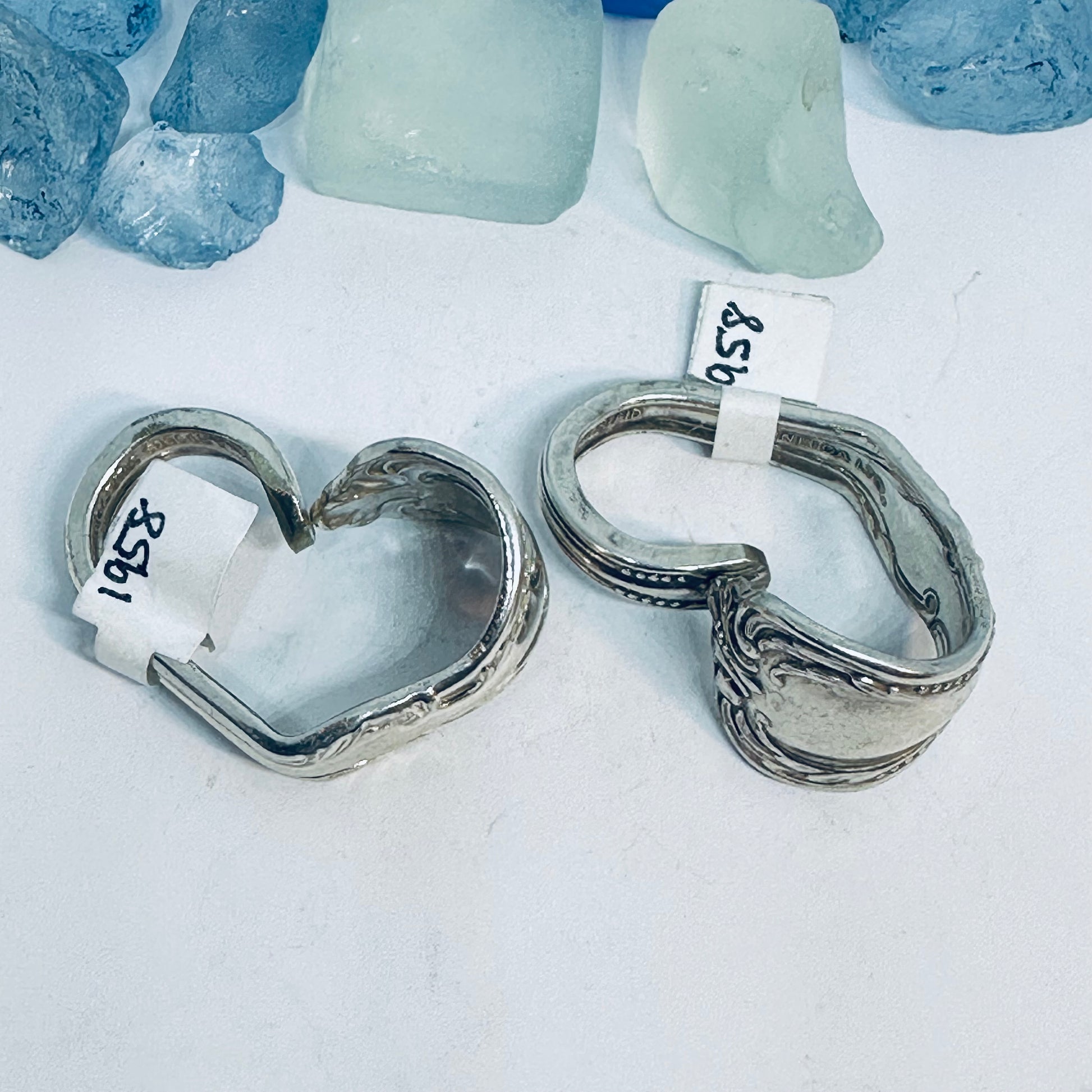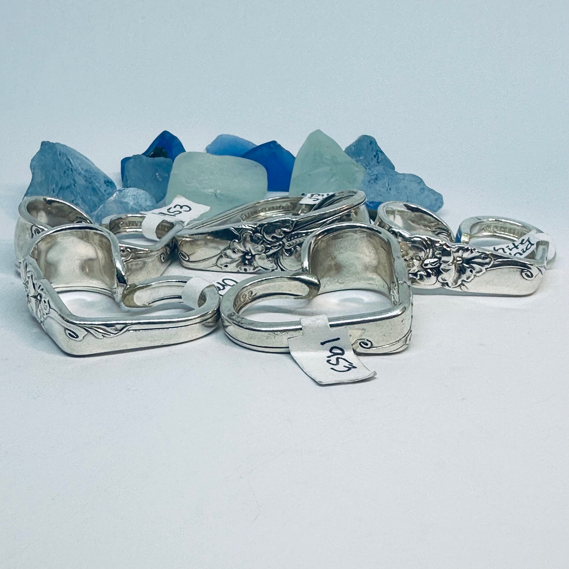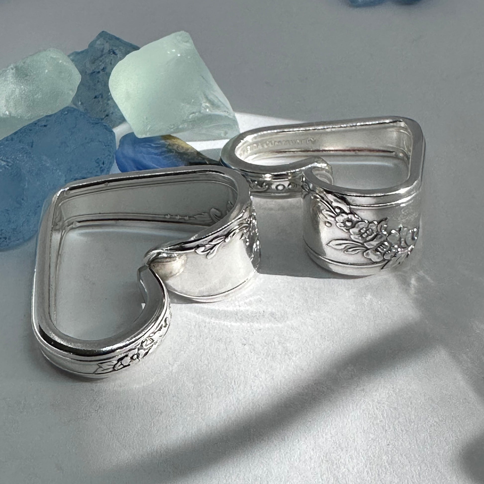 Vintage silverware spoon handles bent into heart shapes. Allow me to choose from the silverware patterns I have on hand. Each will be a one of a kind! Some with more “character” or are a bit more “unique” than others. If you have a preference, please let me know via message or a note at checkout - one that’s more “perfect” - or one that has more character, and might be a little irregular.